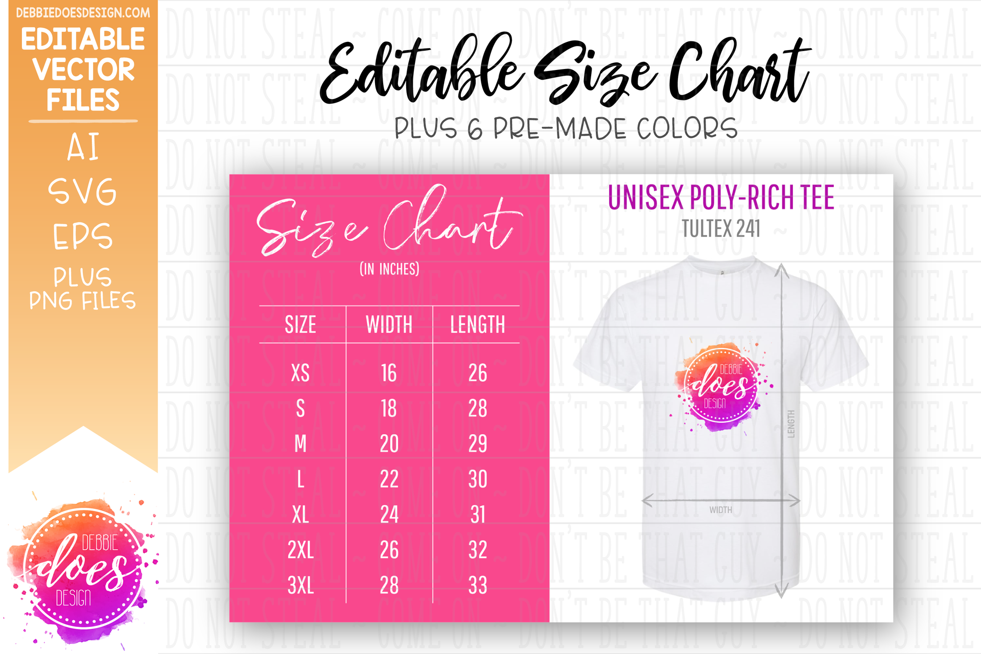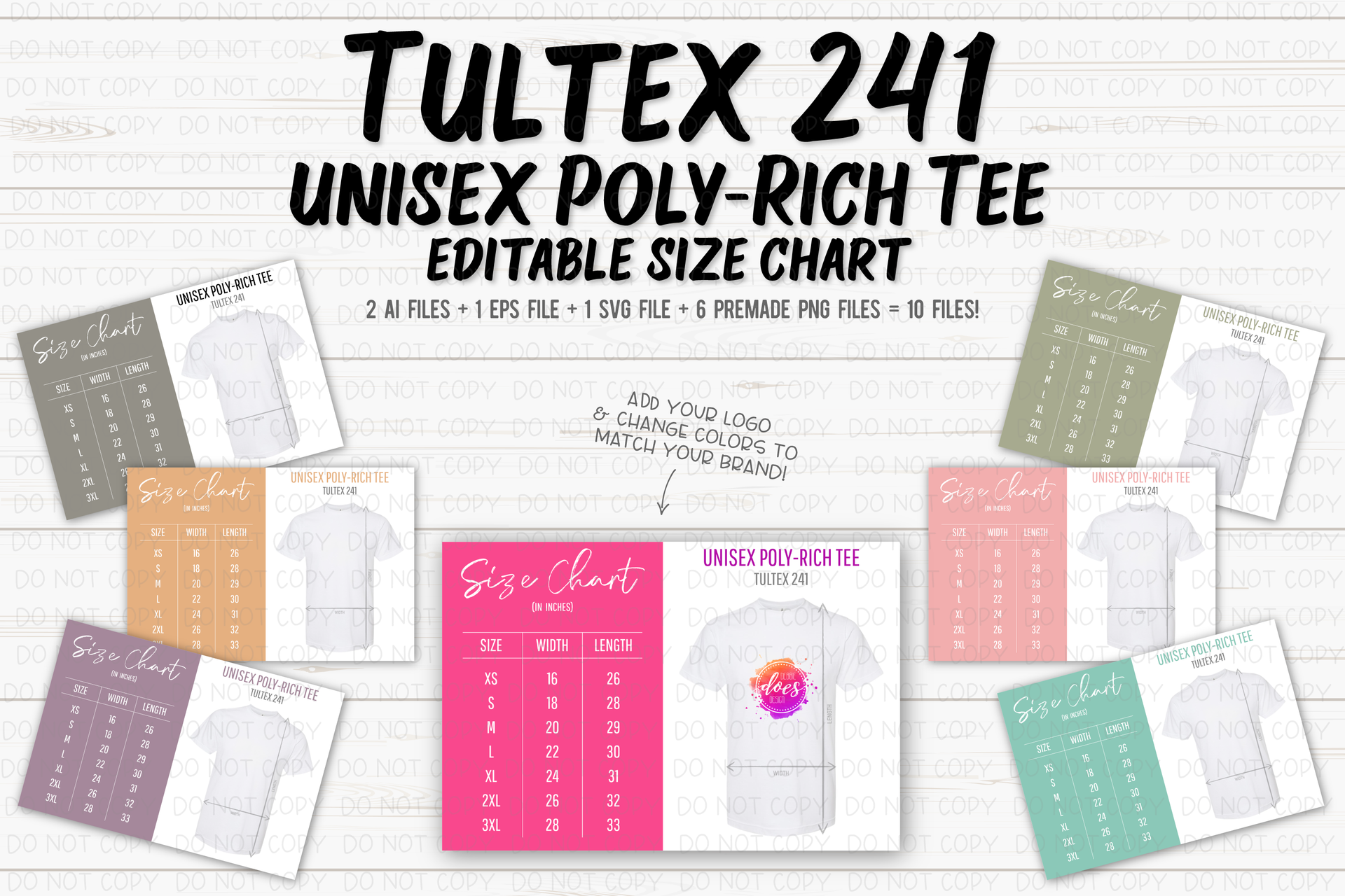 Tultex 241 - Editable Size Chart + 6 Colored PNG Files
