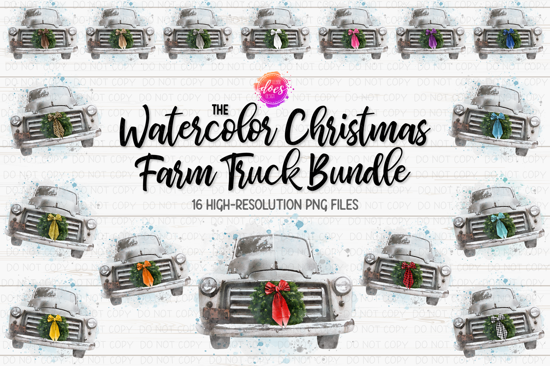 Watercolor Christmas Farm Truck Bundle - 16 Designs! - Sublimation/Printable Design