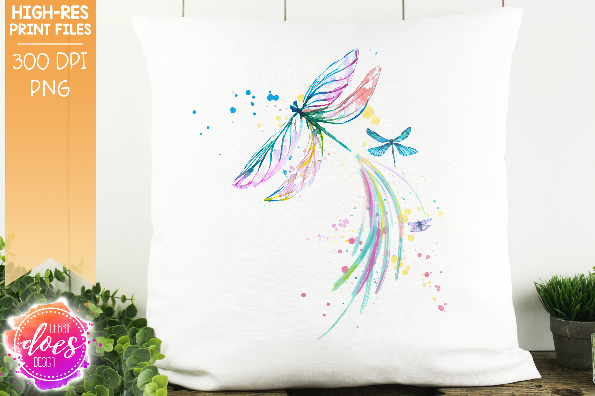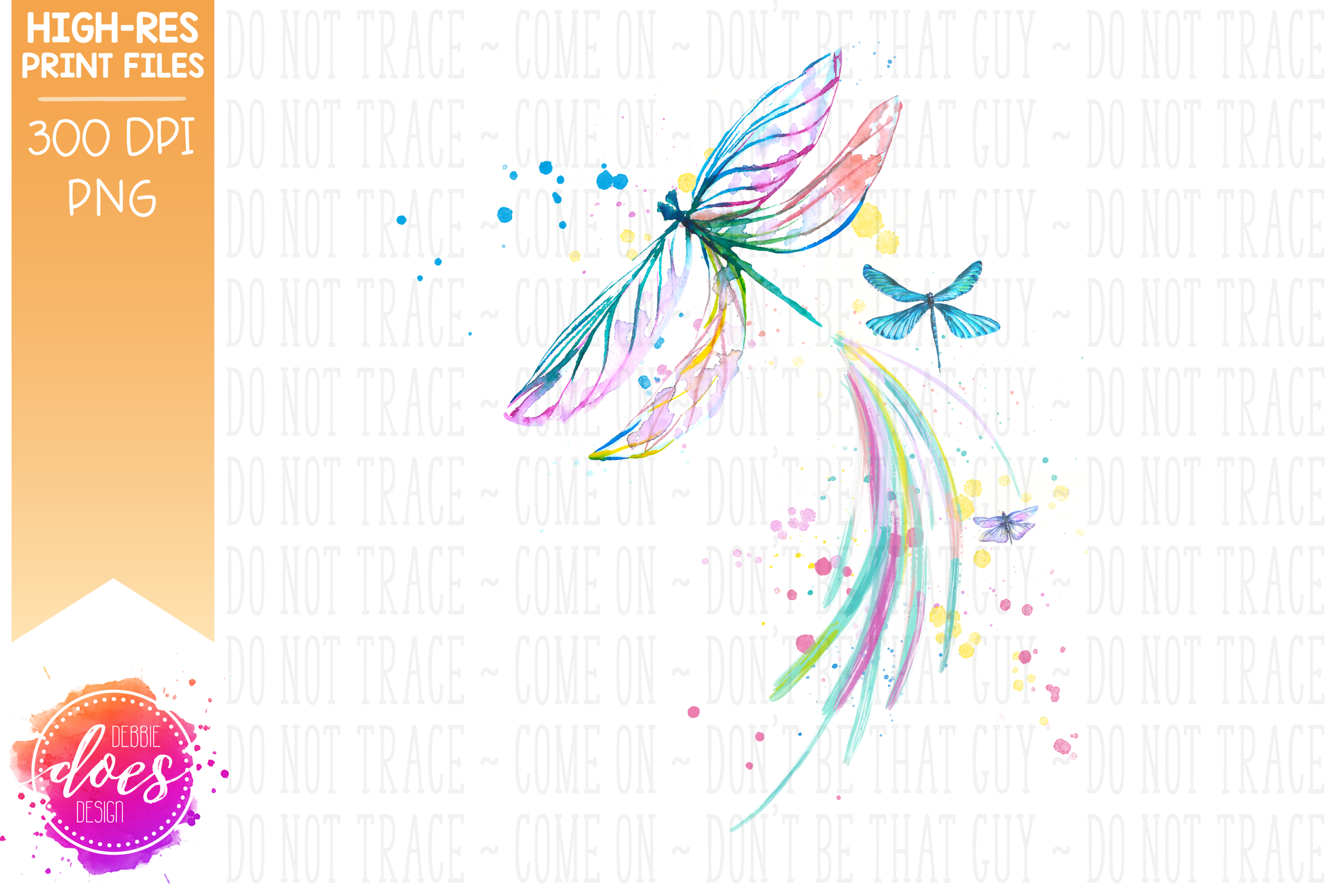 Watercolor Dragonflies - Pastel - Sublimation/Printable Design