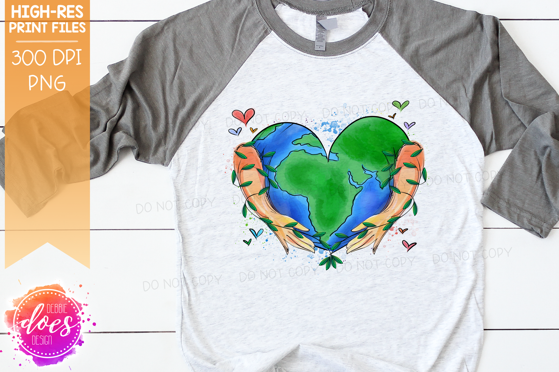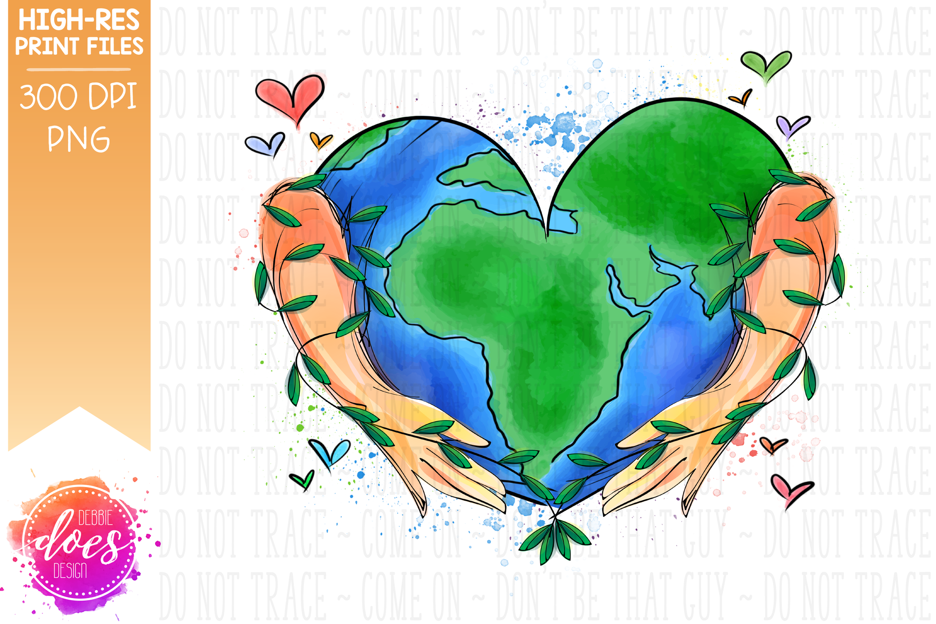 Watercolor Heart Earth in Hands - Sublimation/Printable Design