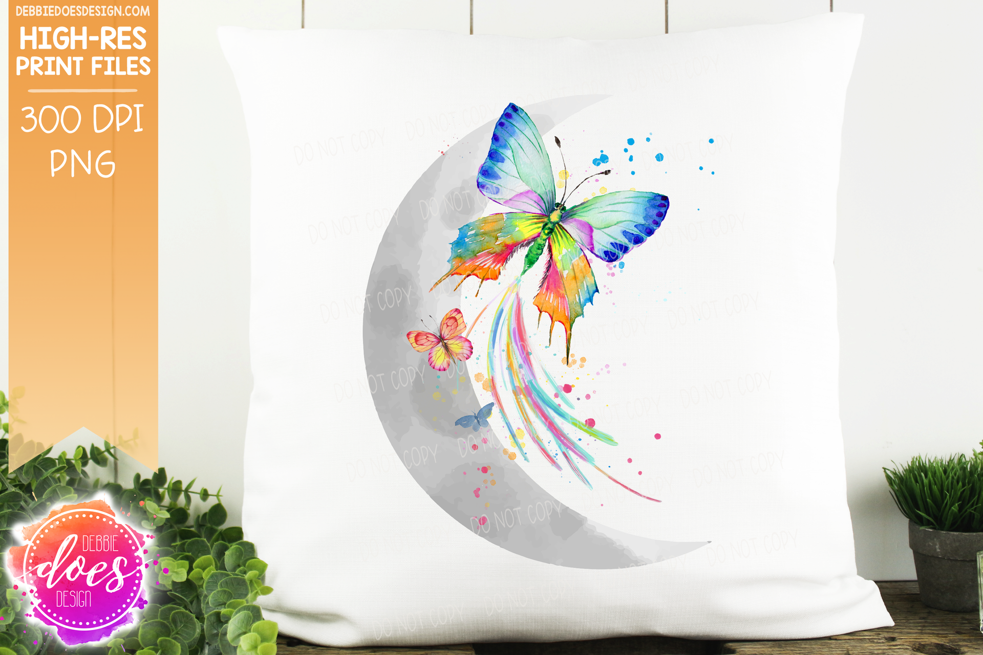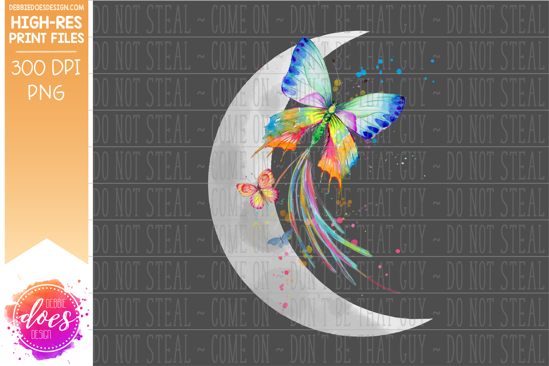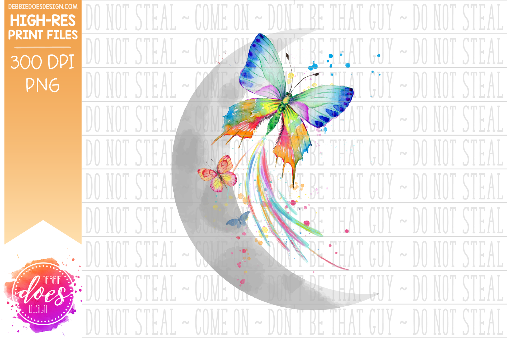 Watercolor Moon with Butterflies - Sublimation/Printable Design
