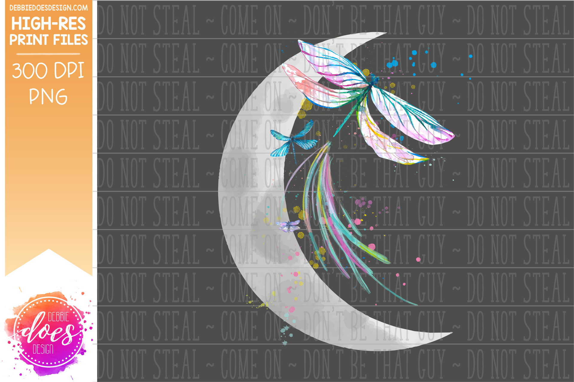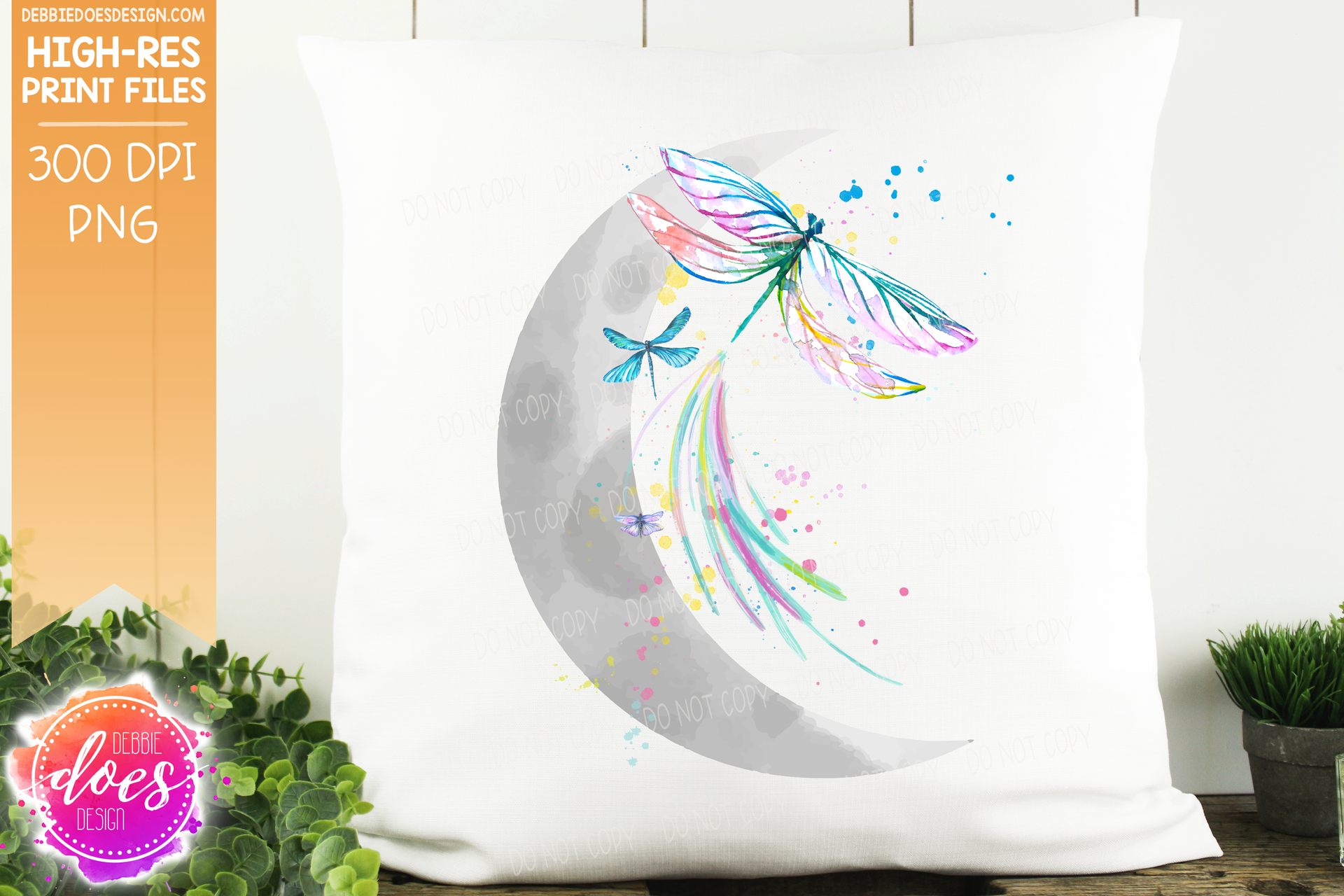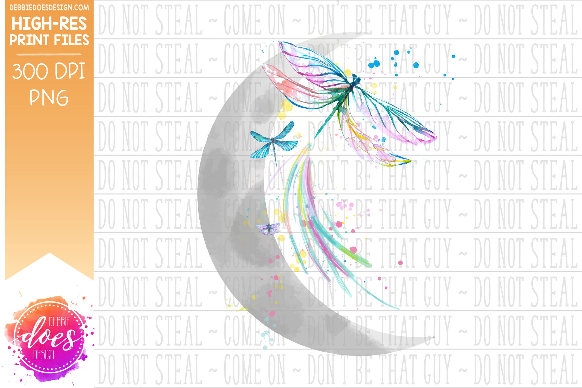 Watercolor Moon with Dragonflies - Sublimation/Printable Design