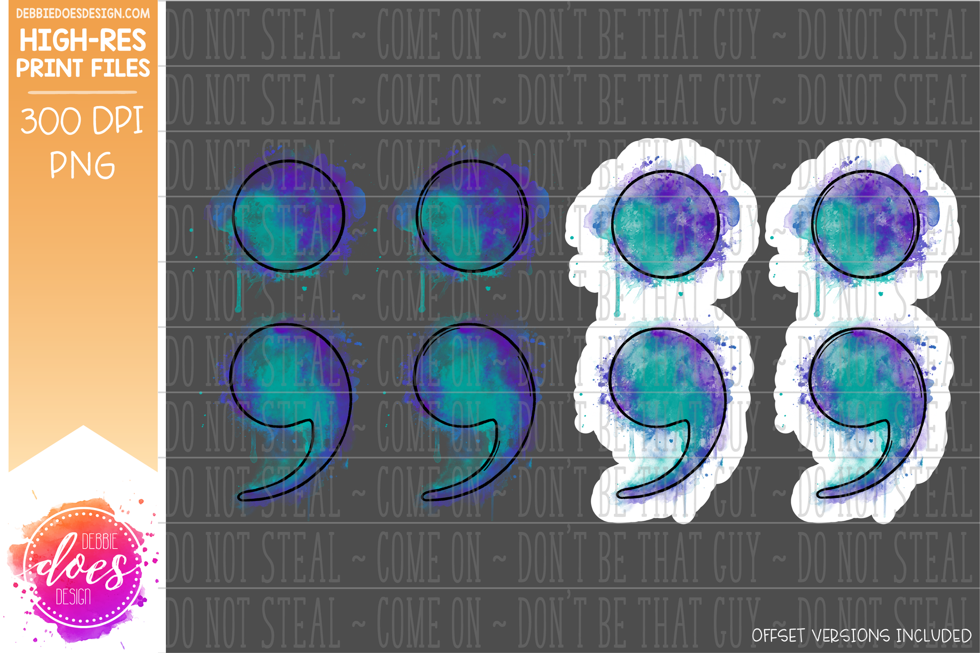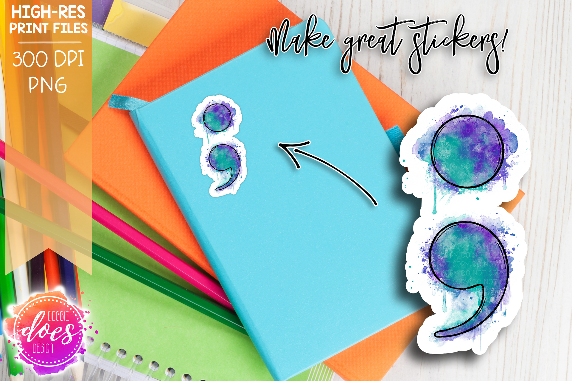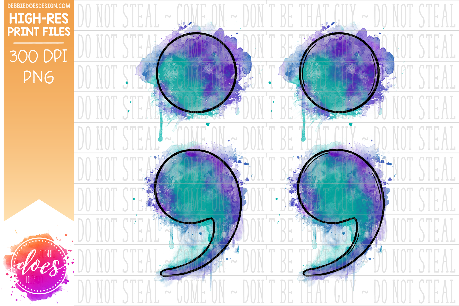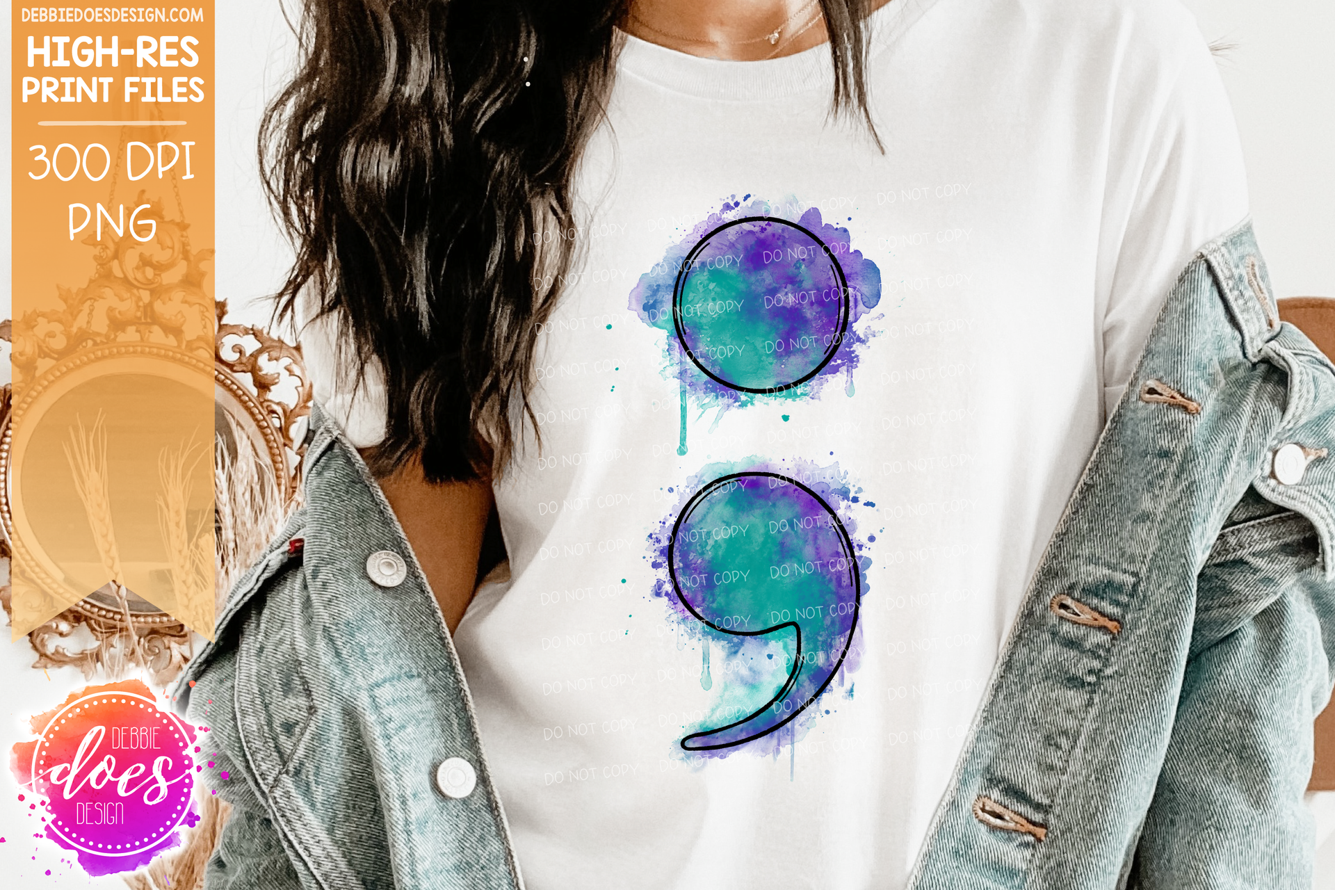 Purple & Teal Watercolor Semicolon - 4 Versions! - Sublimation/Printable Design