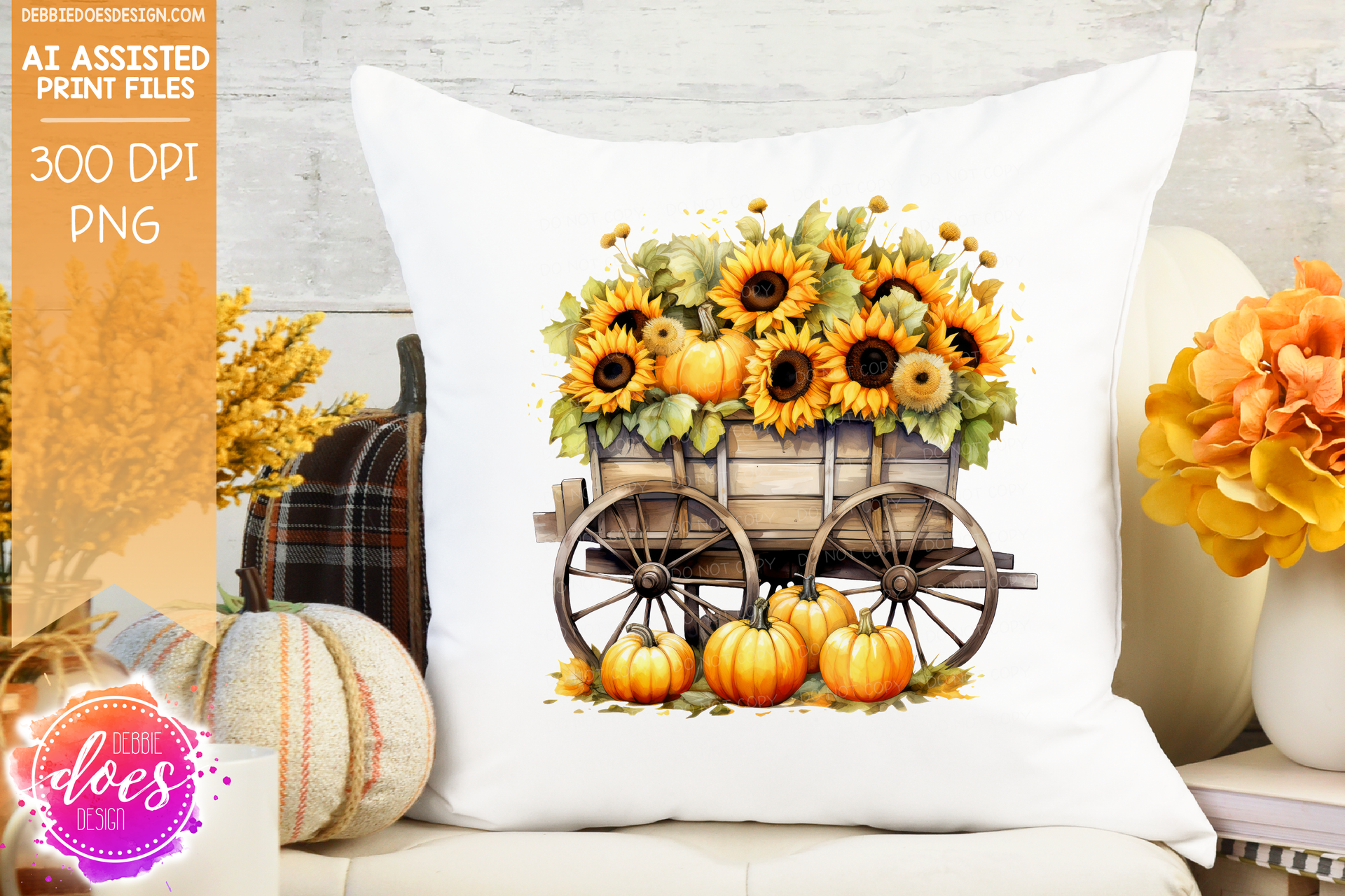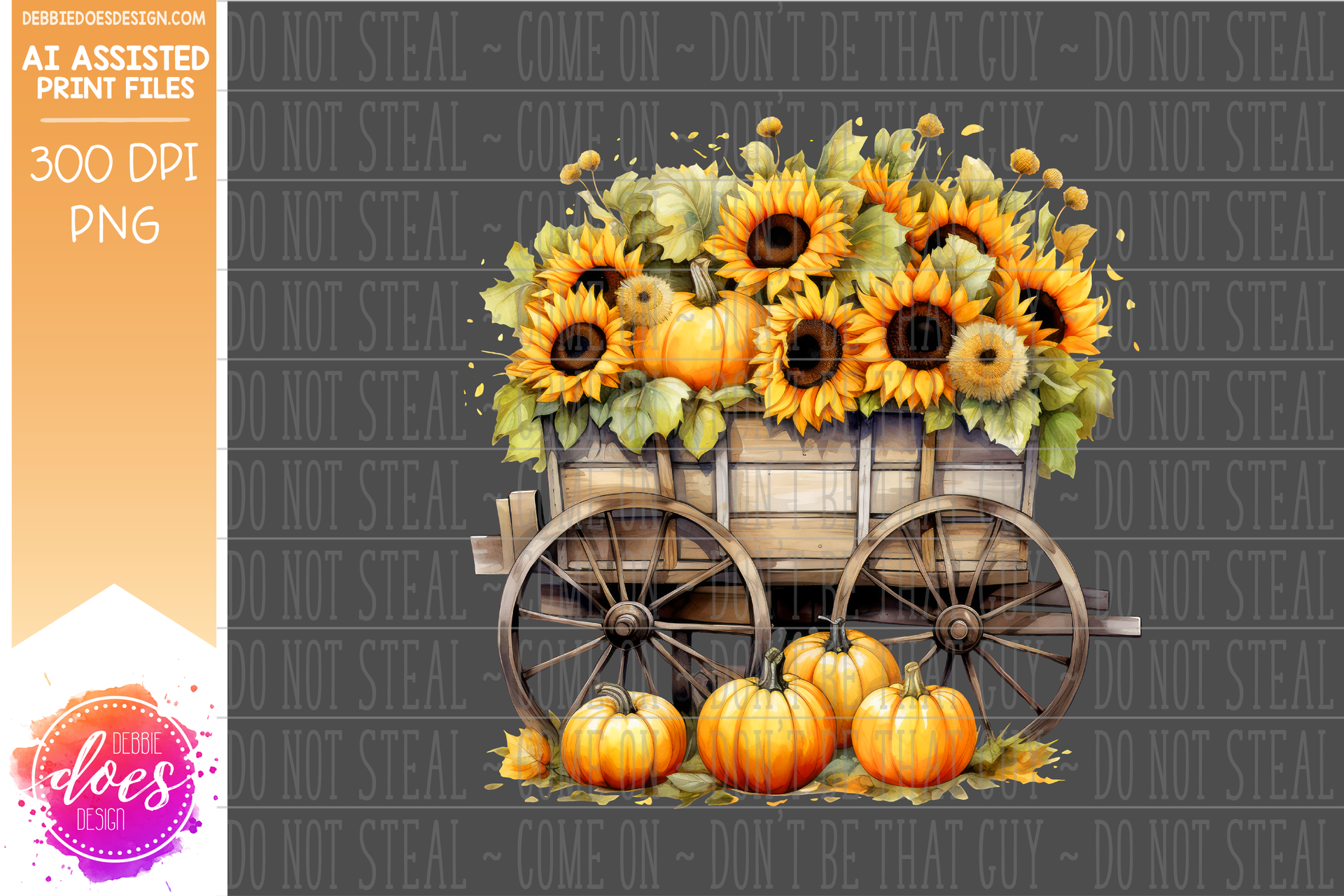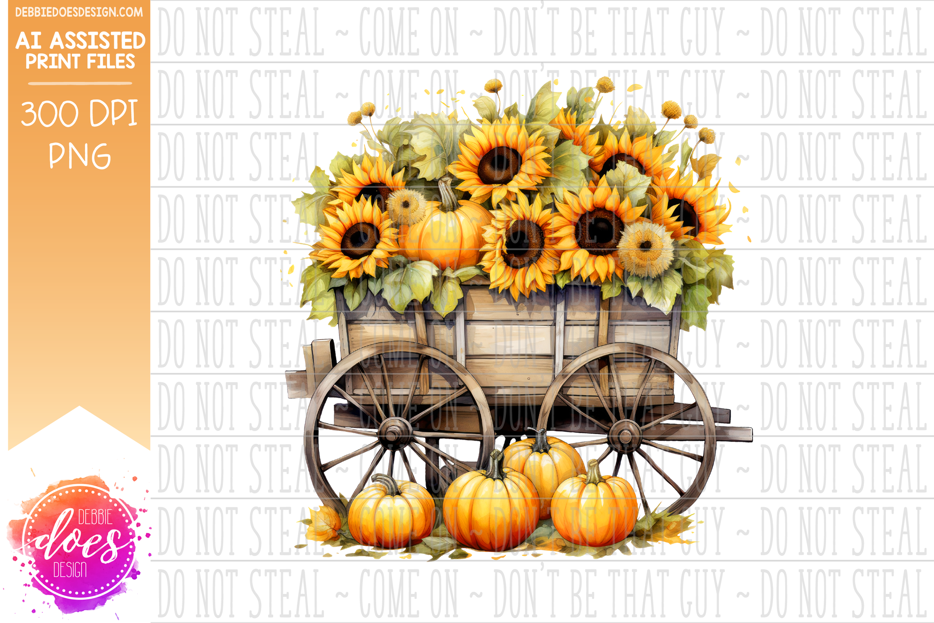 Watercolor Sunflowers and Pumpkins Wagon - Printable/Sublimation Design