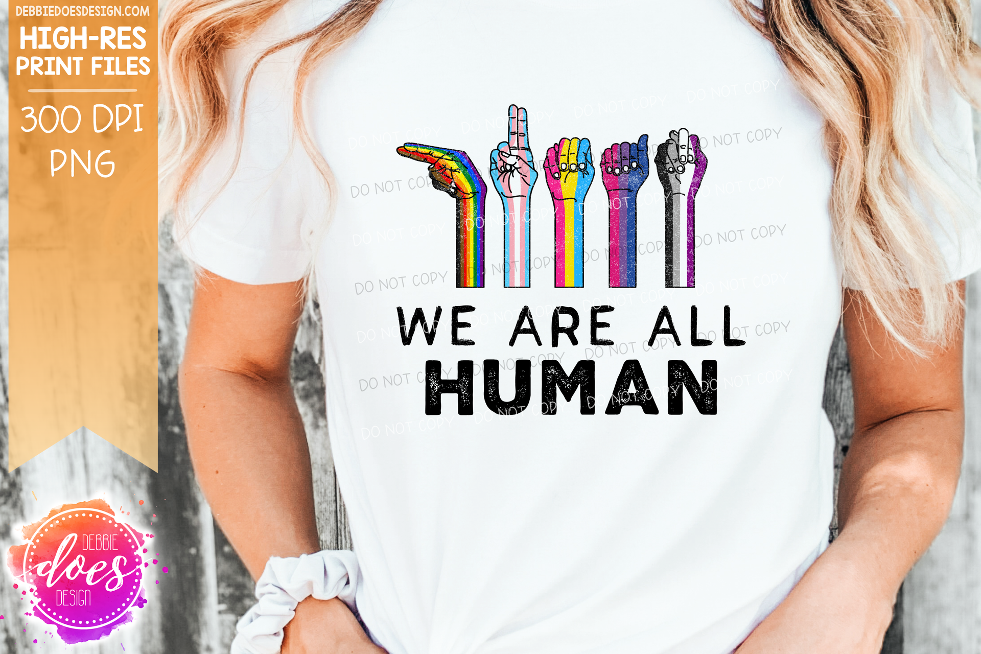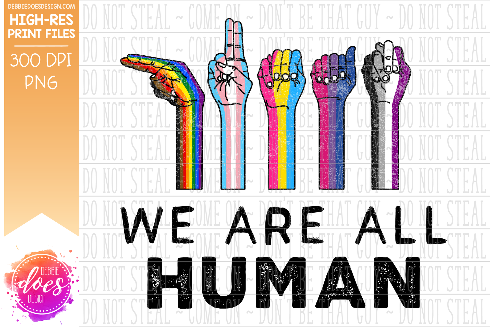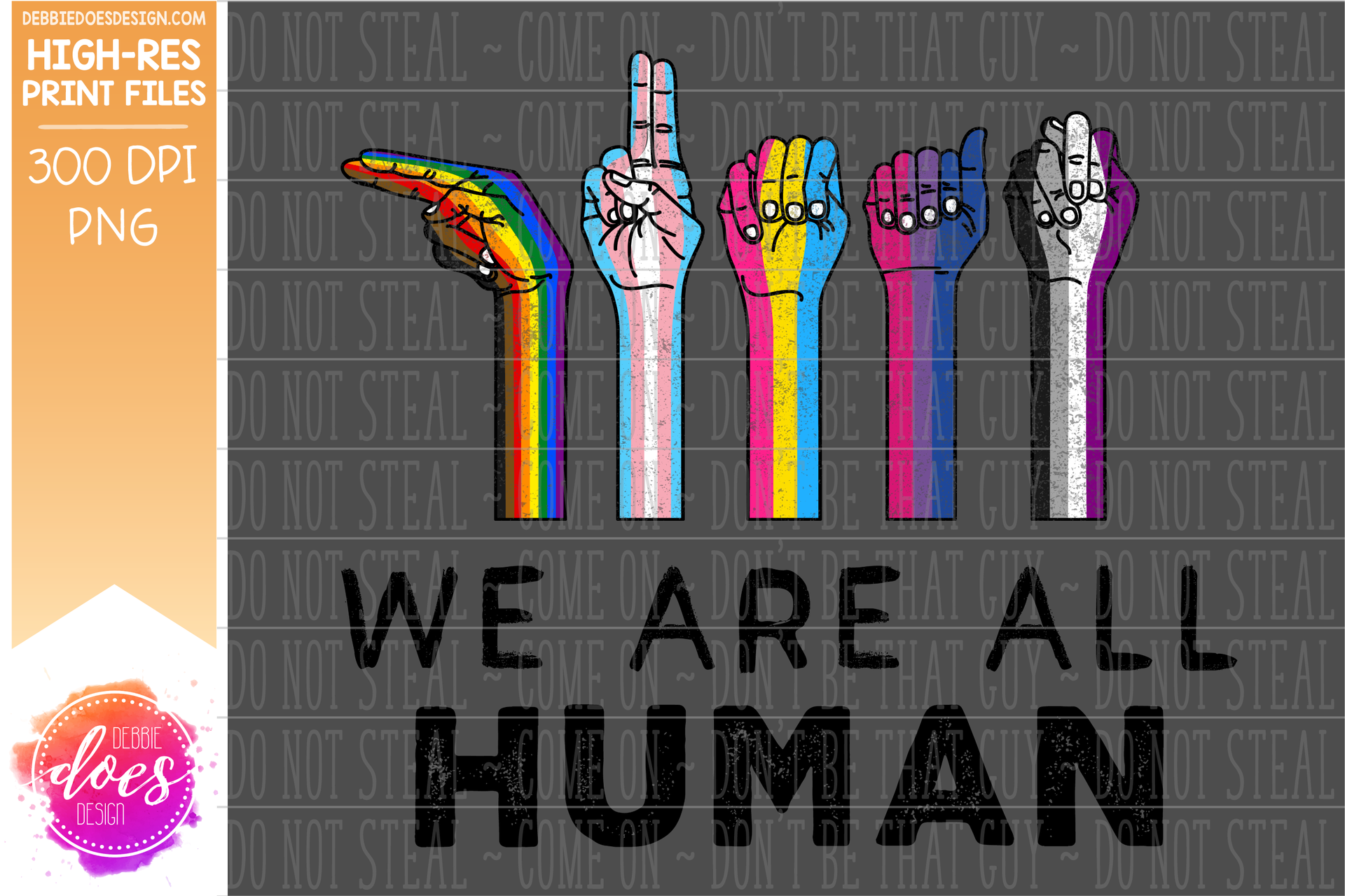 We Are All Human - Sign Language Pride Flag Hands - Text Under - Sublimation/Printable Design