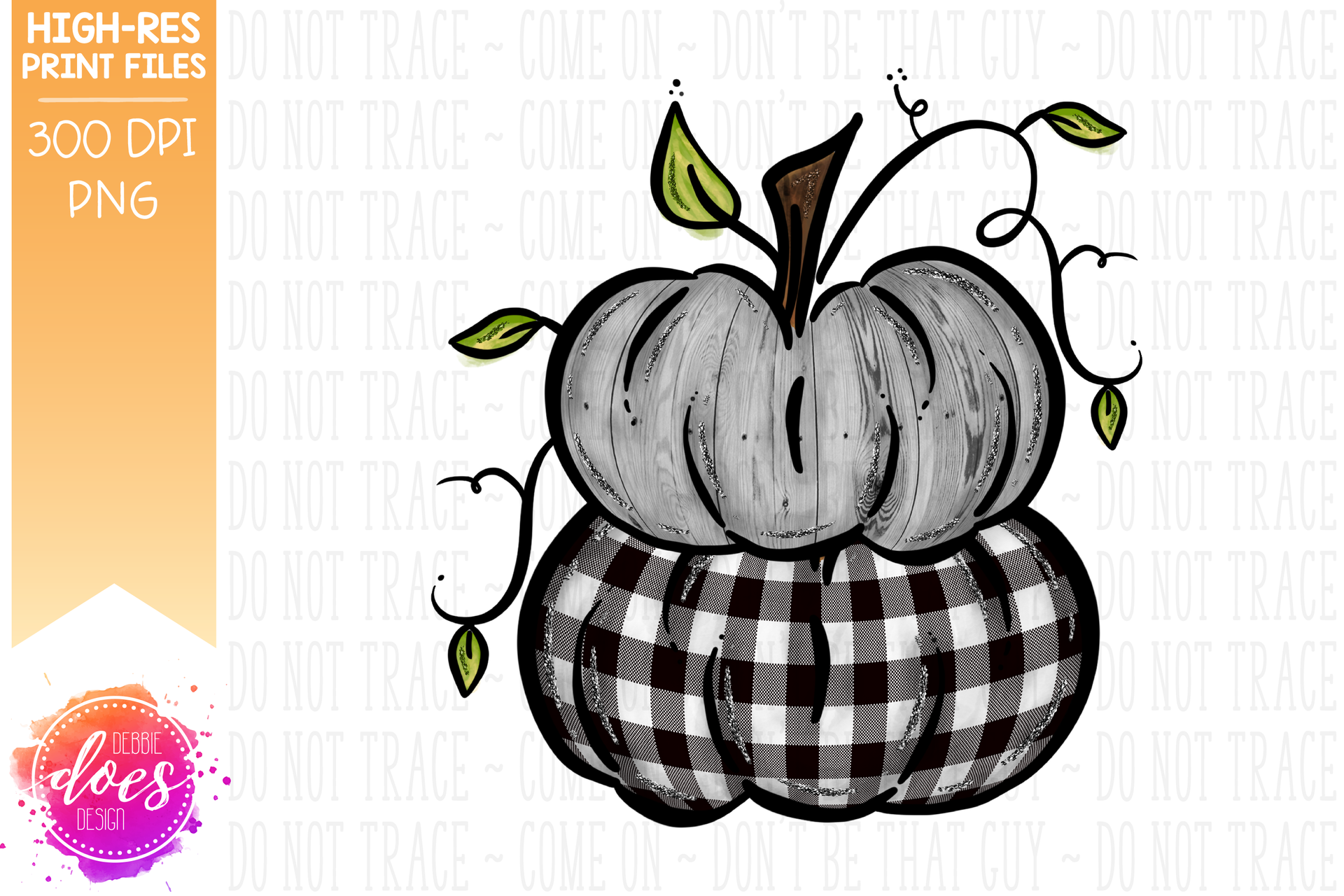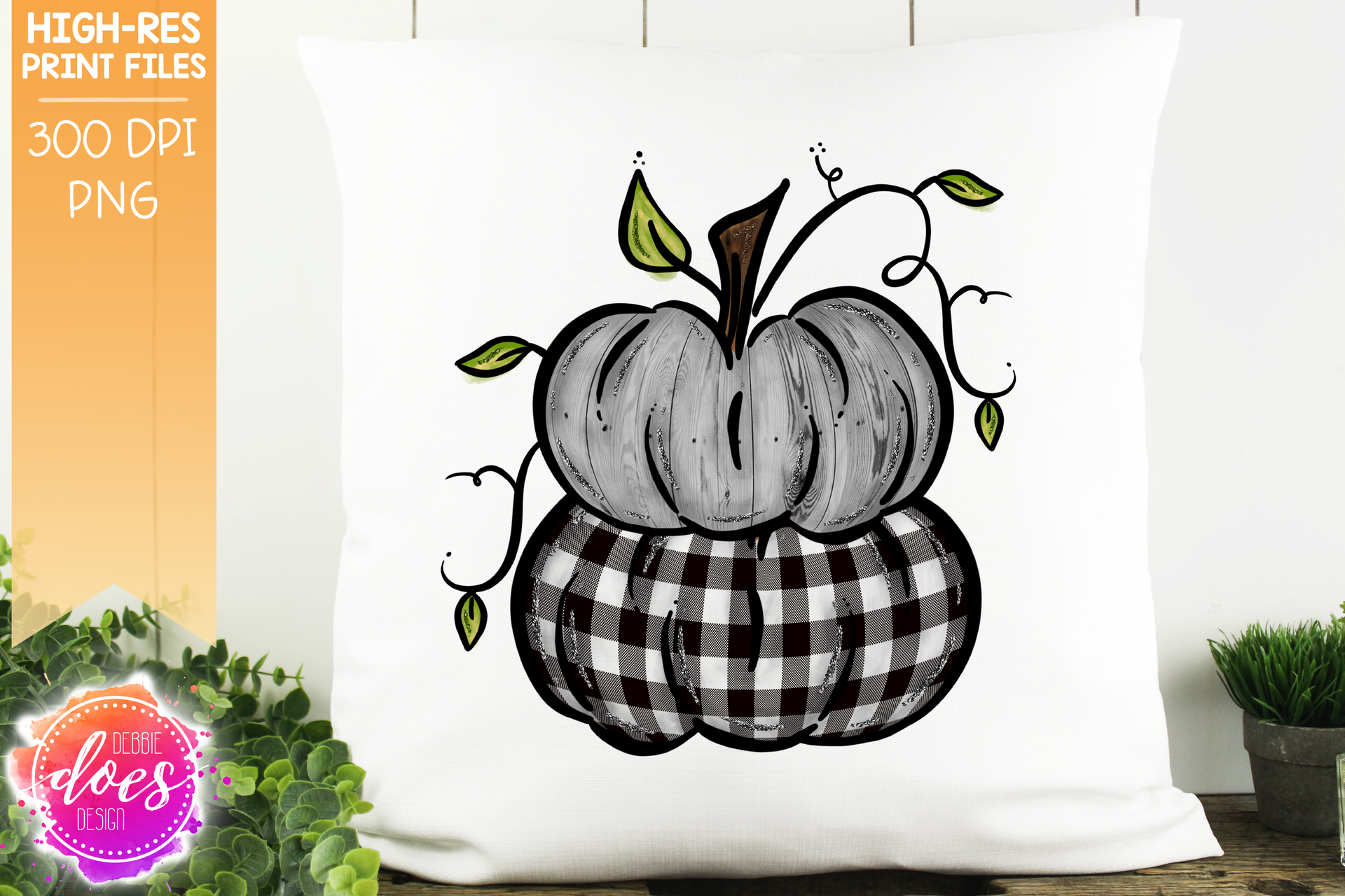 Weathered Wood & White Plaid Stacked Pumpkins - Printable/Sublimation File