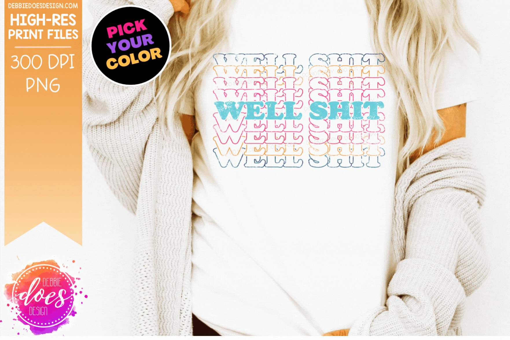 Well Shit Stacked Rainbow - Retro - Choose your Color - Sublimation/Printable Design