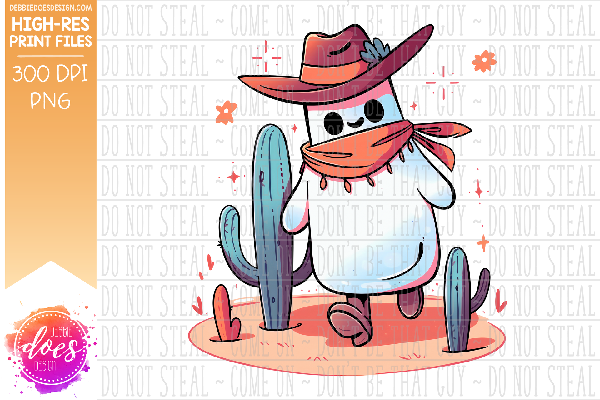 Western Retro Ghost with Boots - AI Assisted Printable/Sublimation Design