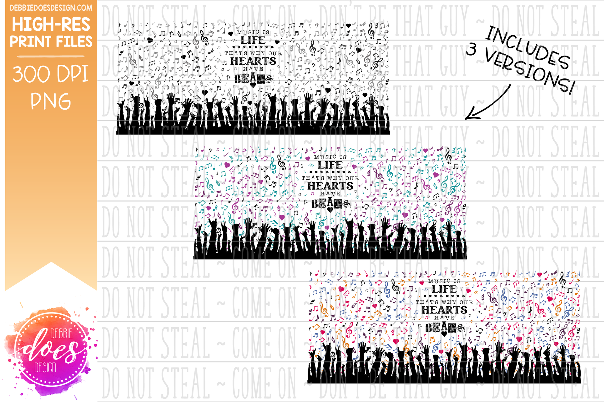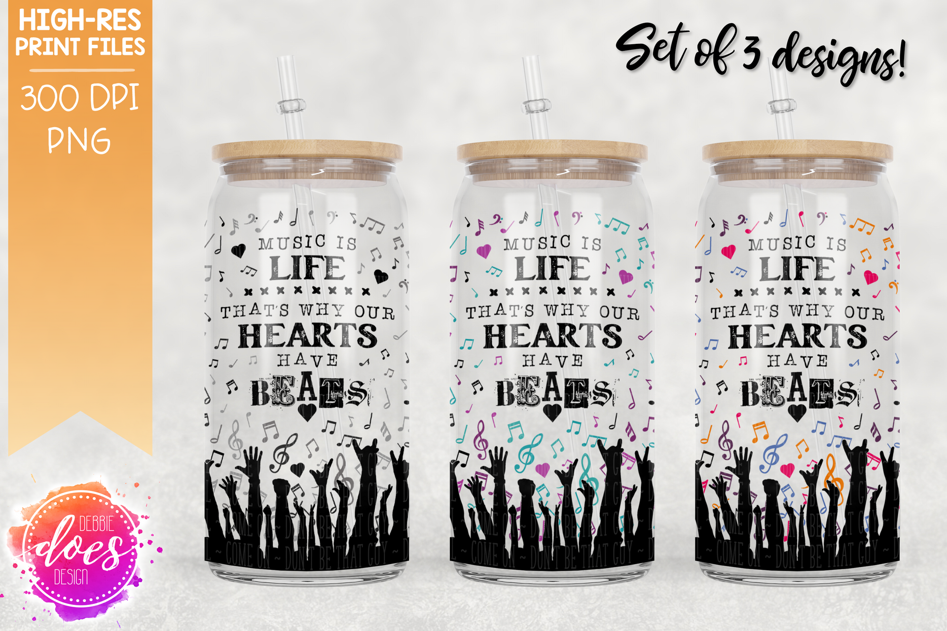 Why Our Hearts Have Beats - Concert Hands Music Glass Can Tumbler Designs - Set of 3 - Sublimation/Printable Designs
