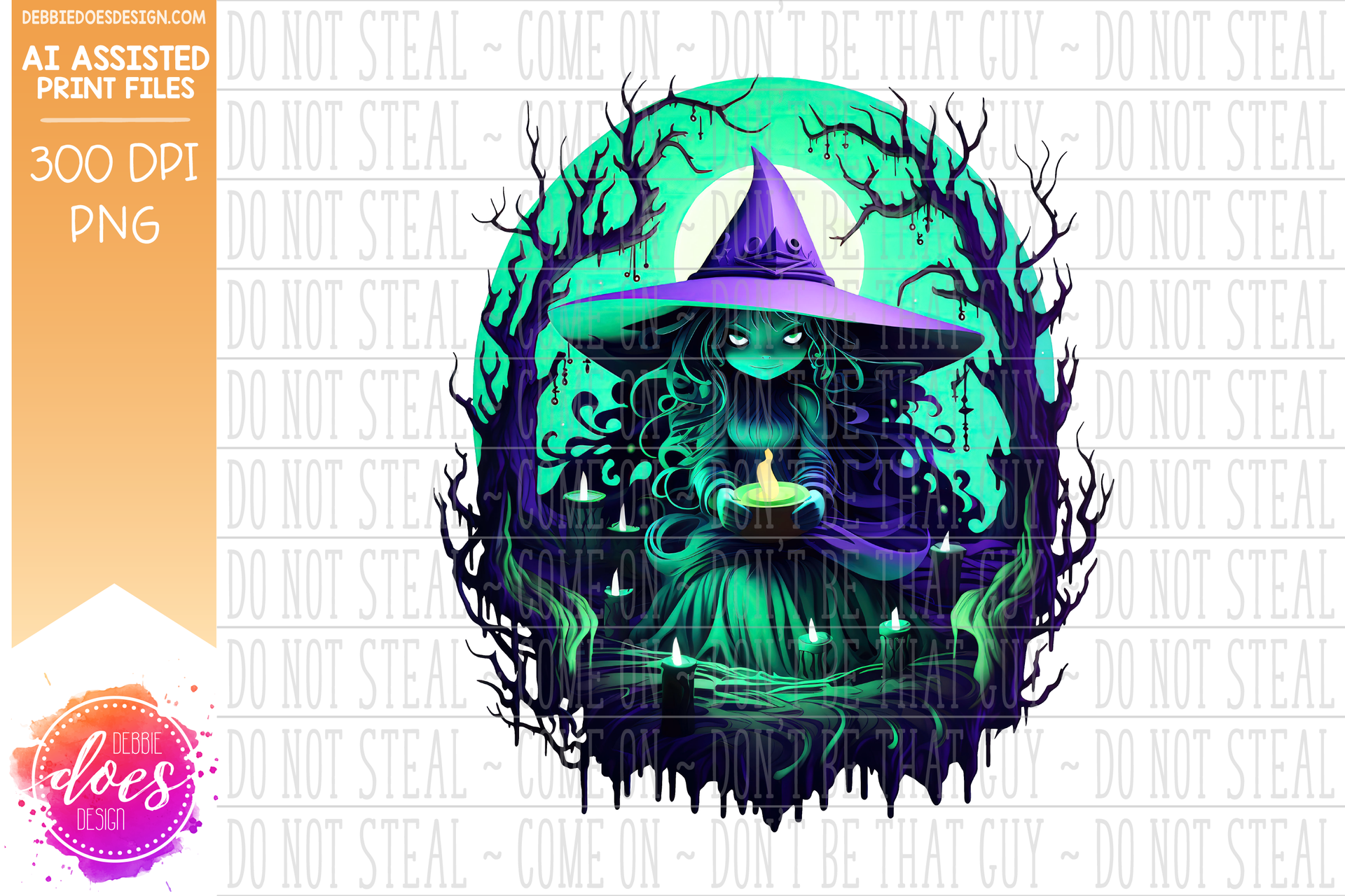 Wicked Purple and Green Witch - AI Assisted Printable/Sublimation Design