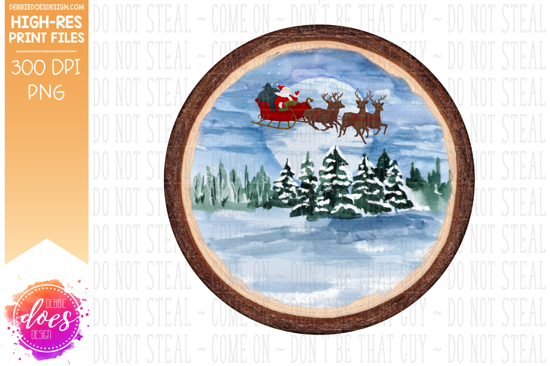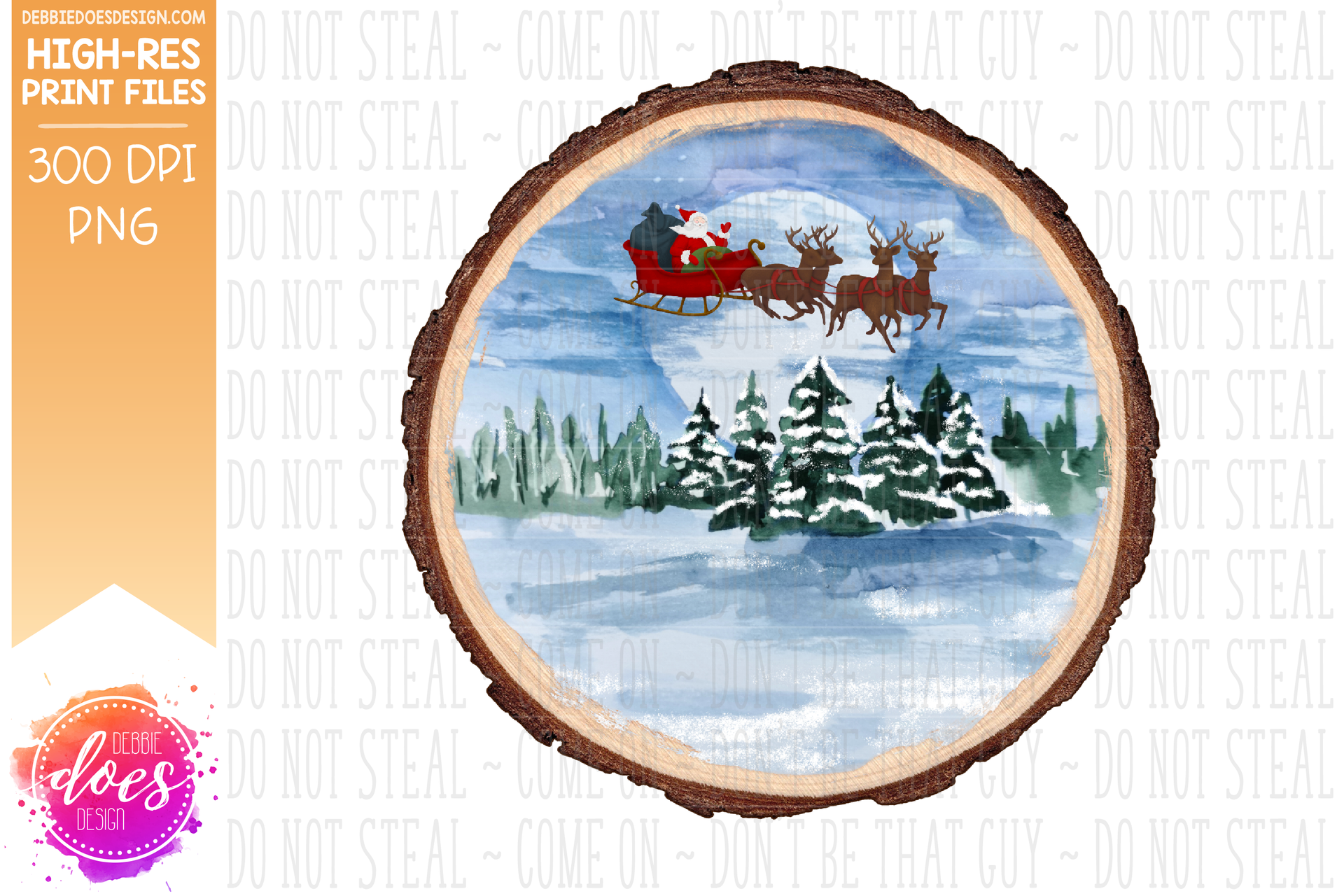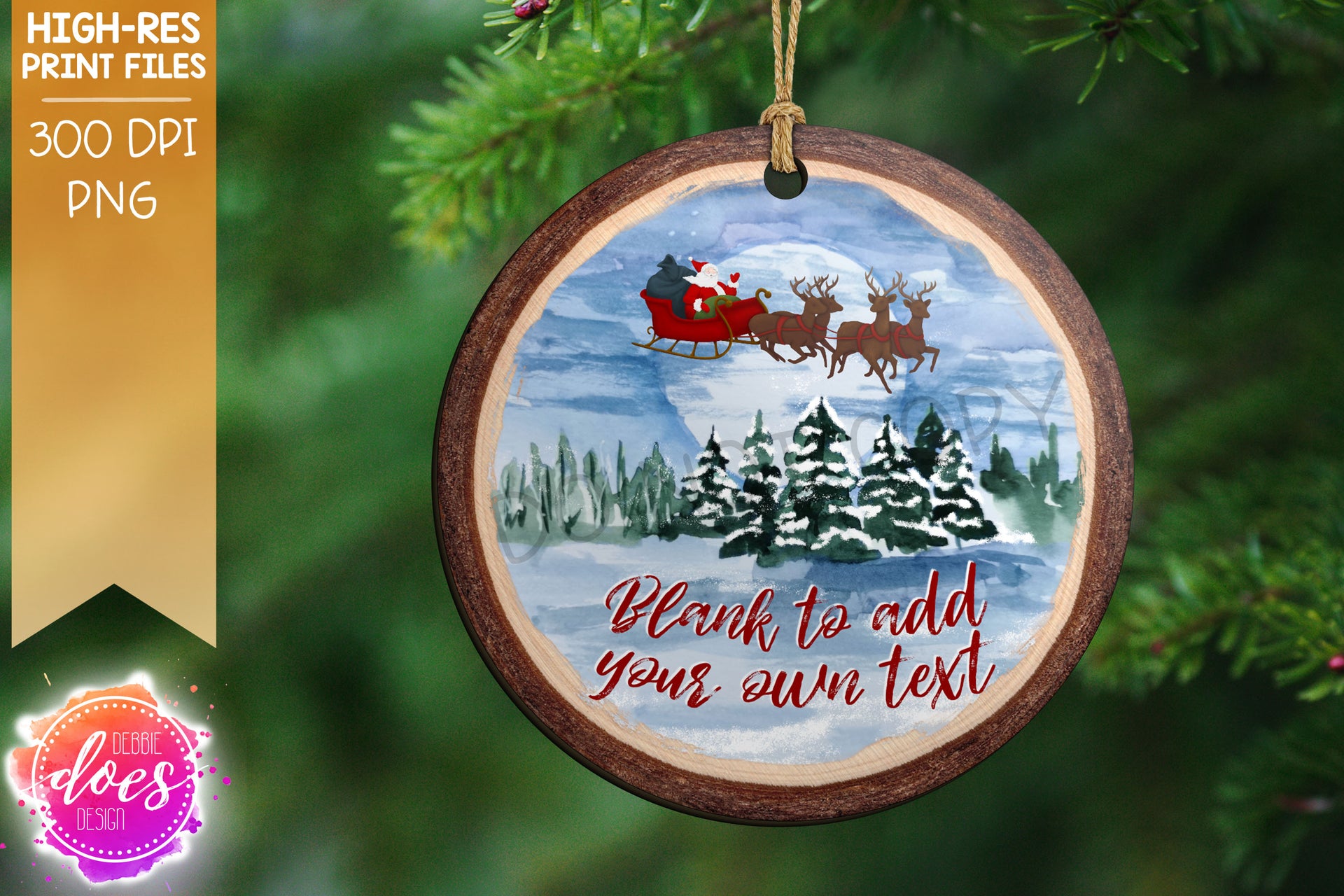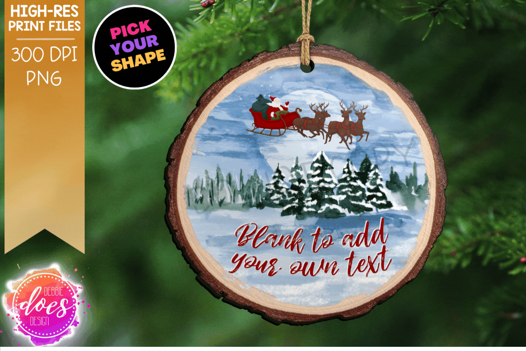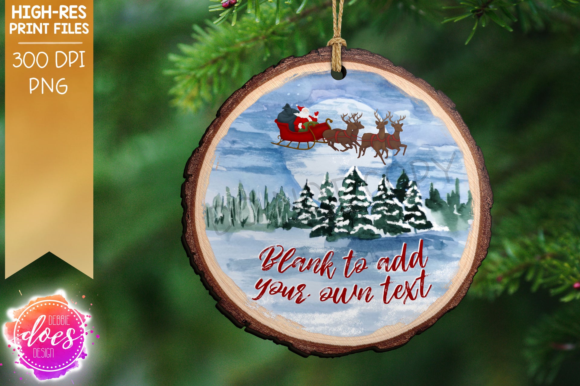 Winter Christmas Night Wood Slice Ornament - Choose your Shape - Sublimation/Printable Design