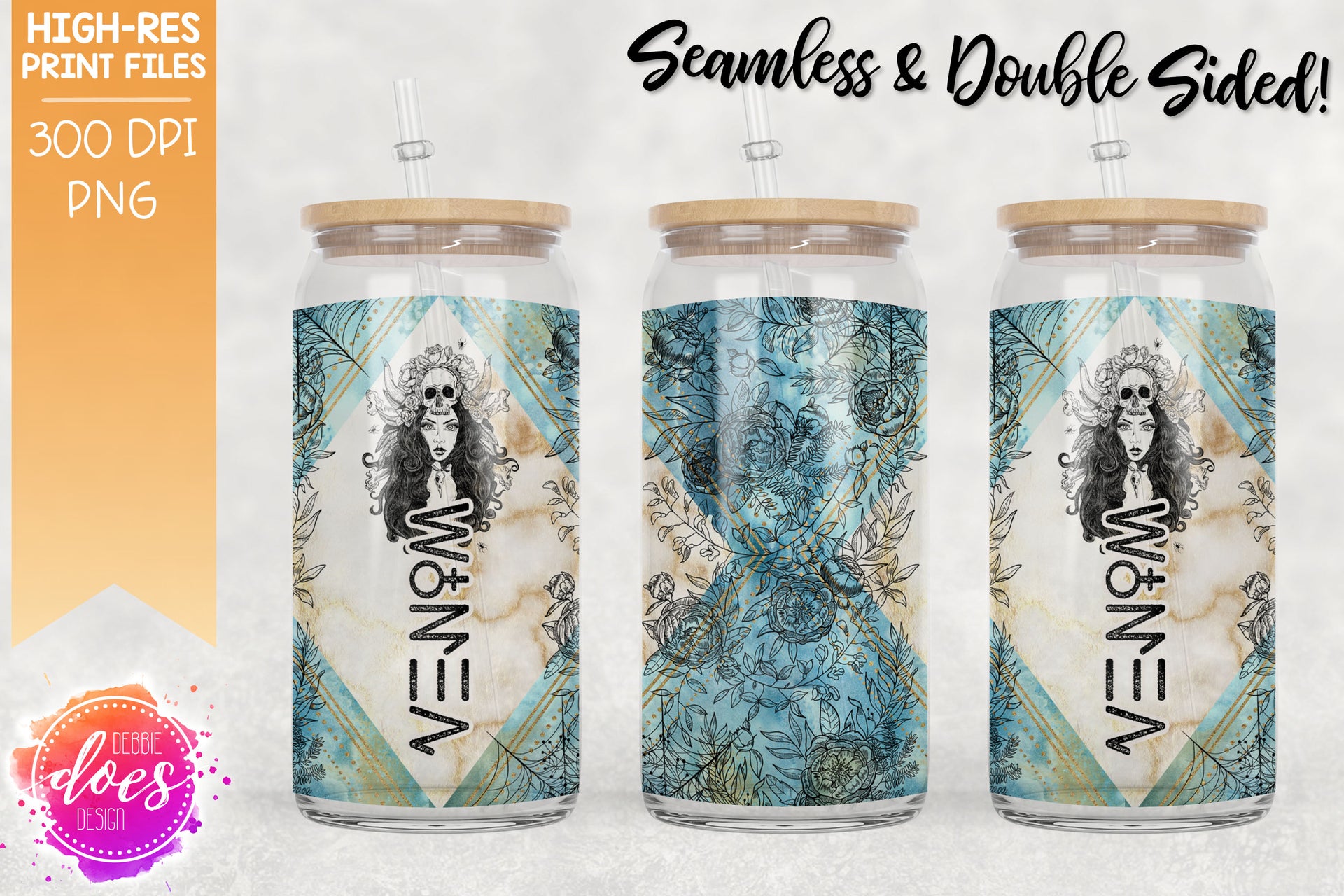 Women/Venom Spider Floral - Seamless - Double Sided - Glass Can Tumbler - Sublimation/Printable Design