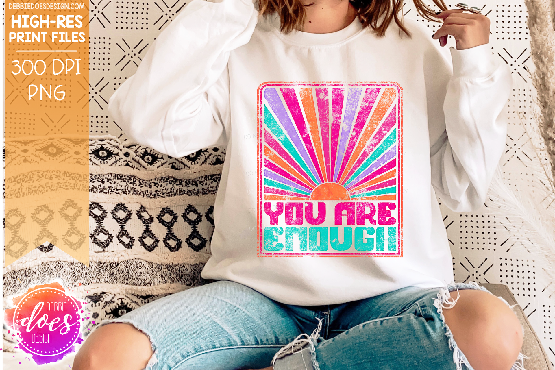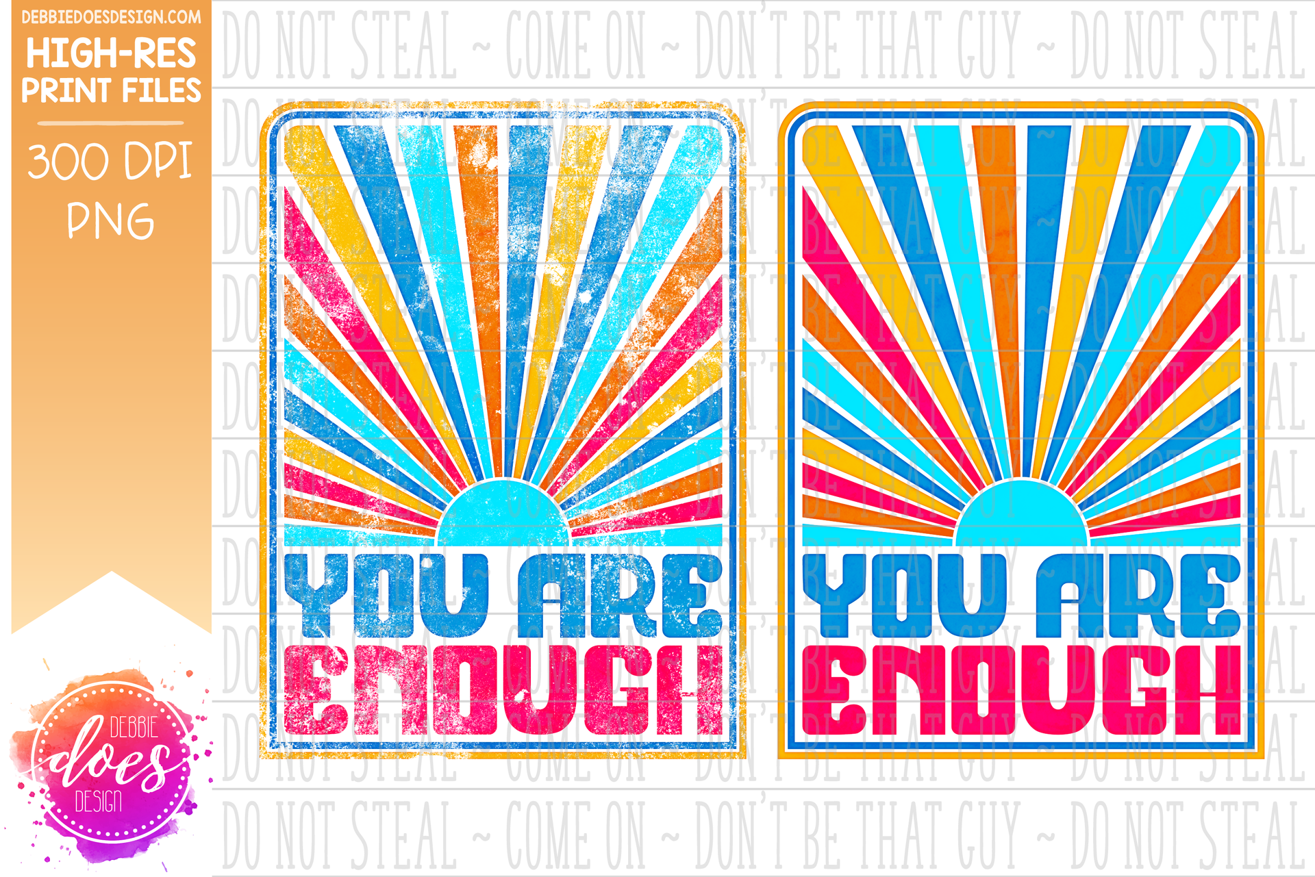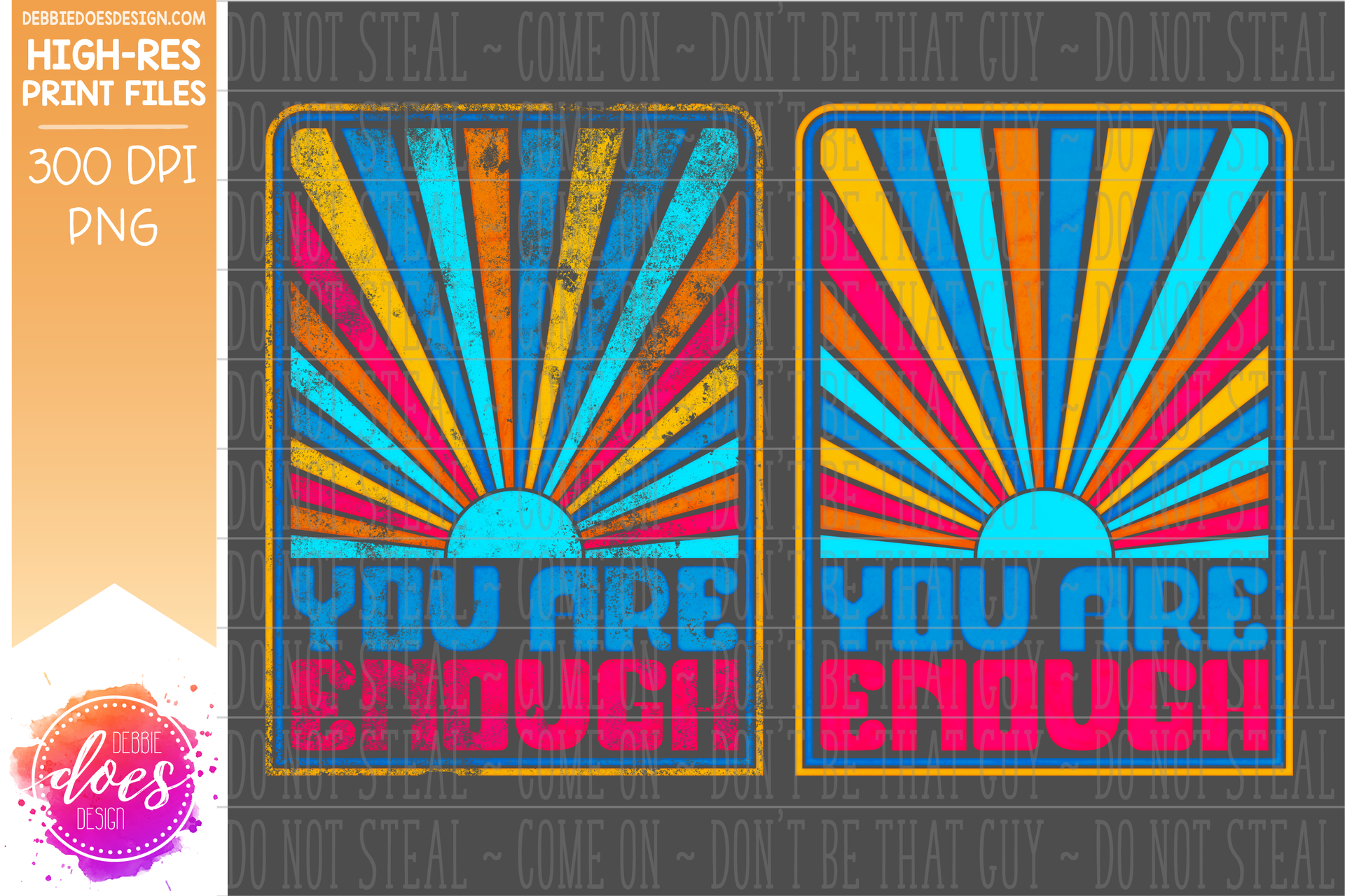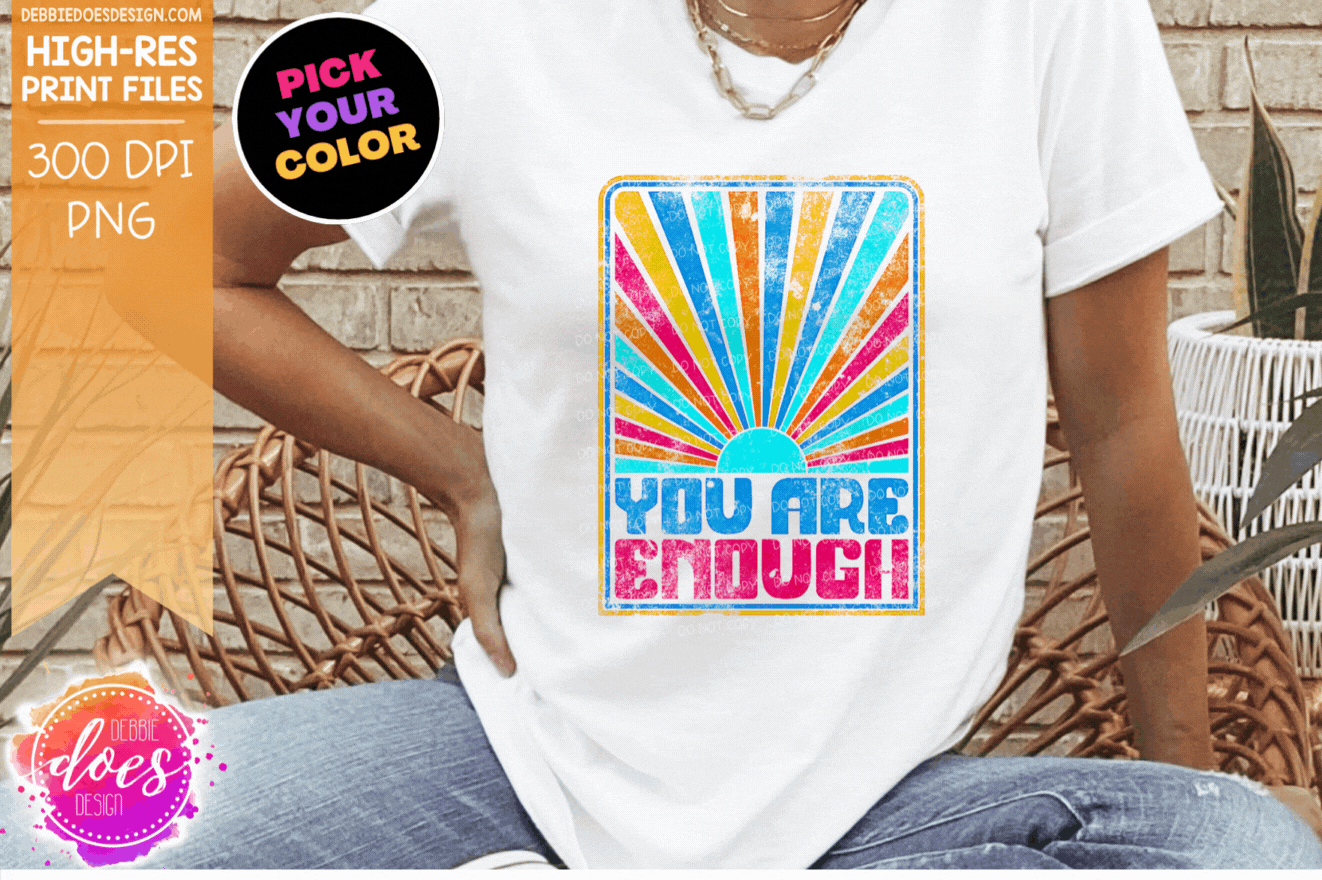 You Are Enough Retro Sunburst - Choose your Color - Includes 2 Versions - Sublimation/Printable Design