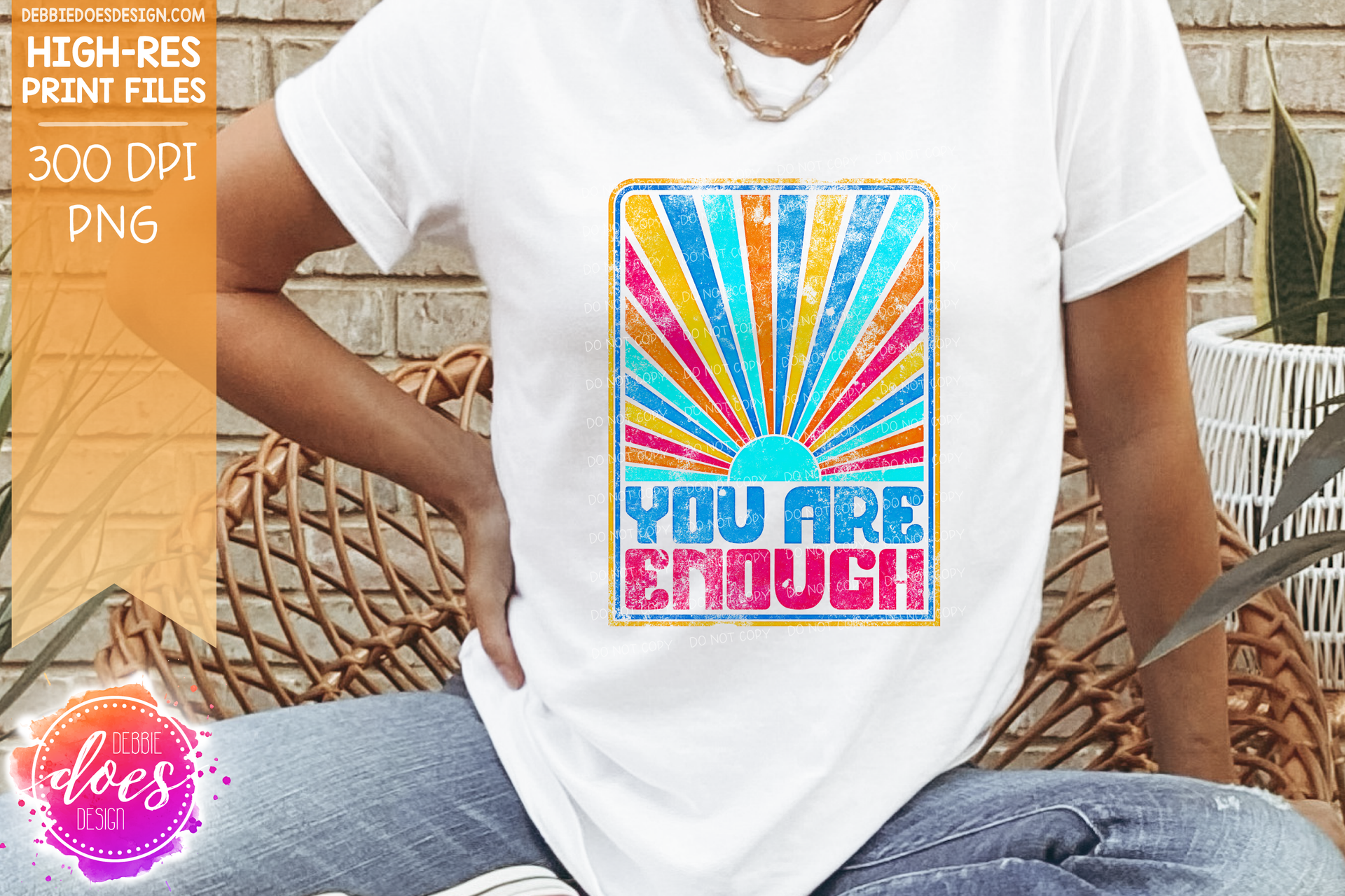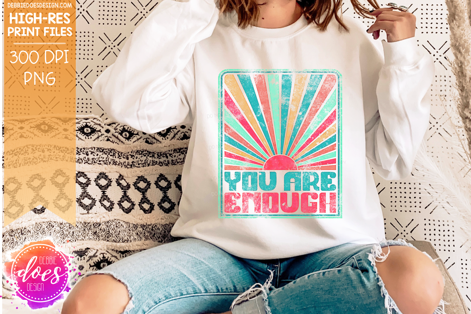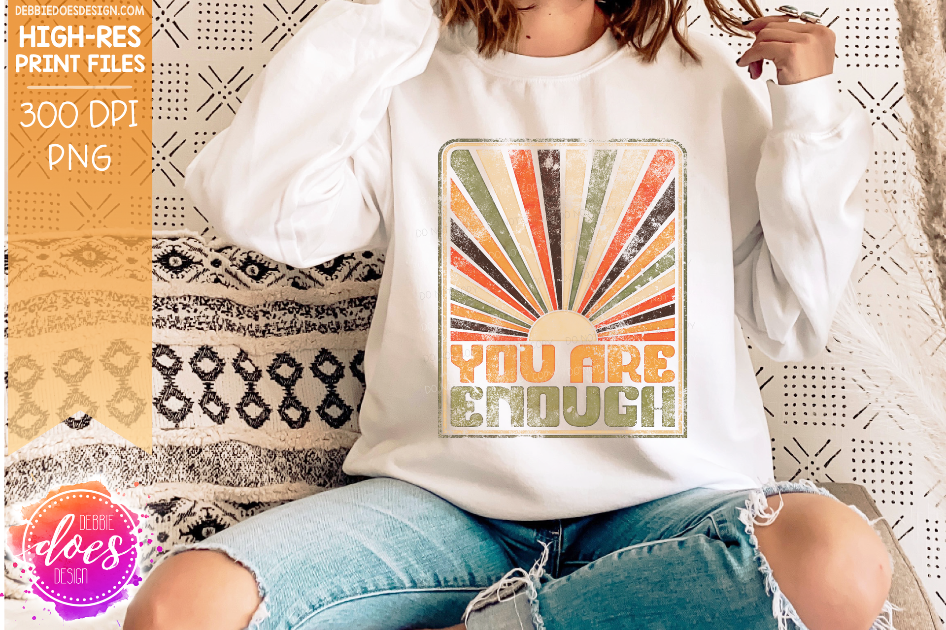 You Are Enough Retro Sunburst - Choose your Color - Includes 2 Versions - Sublimation/Printable Design