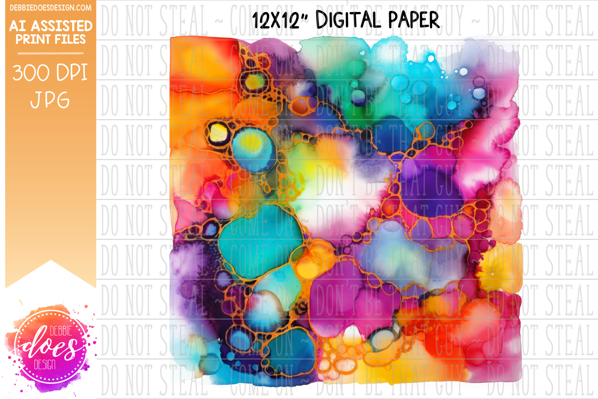 Alcohol Ink Digital Paper - Rainbow Gold - Design Elements
