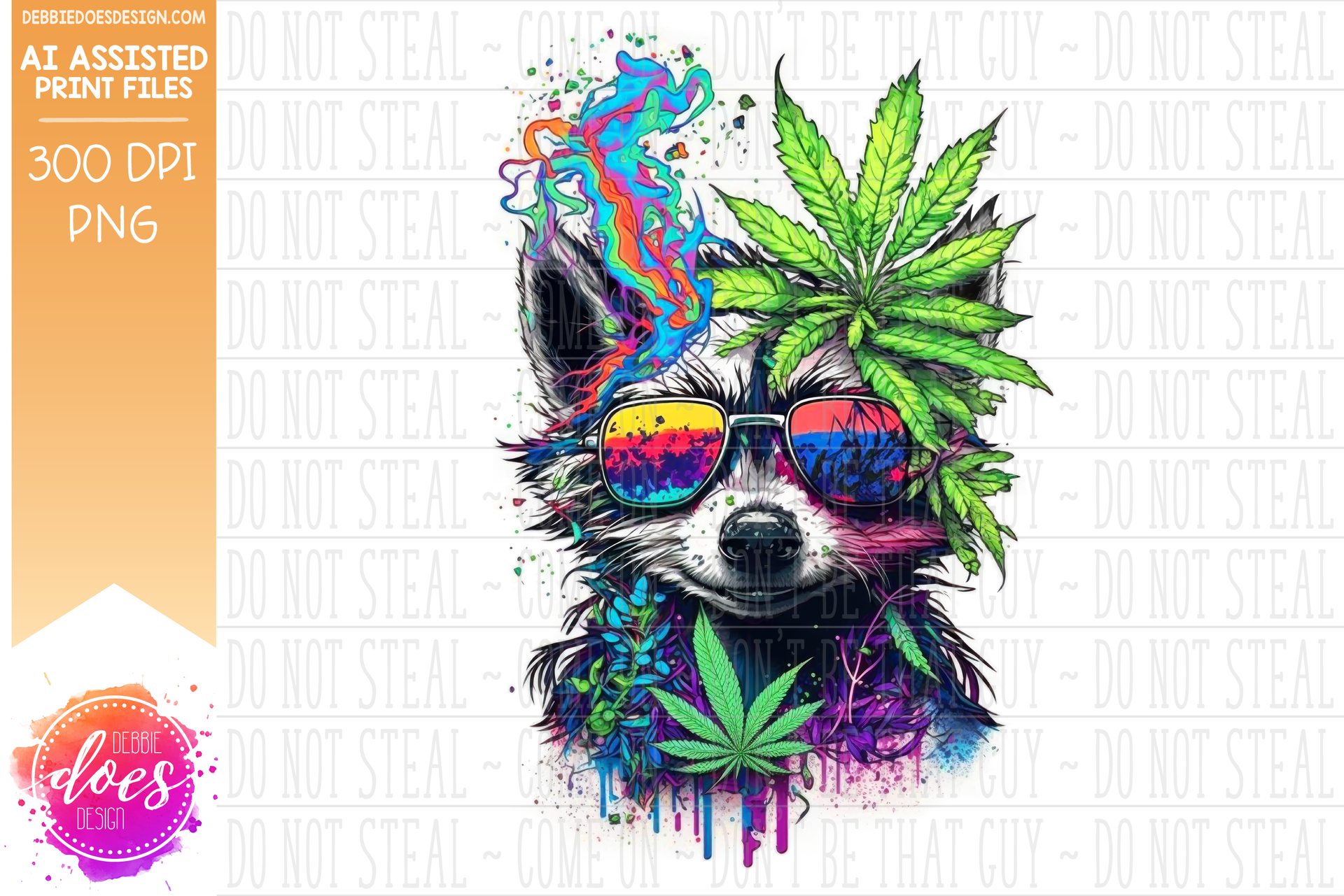 Cannabis Animal Painting - Raccoon 1 - Design Elements