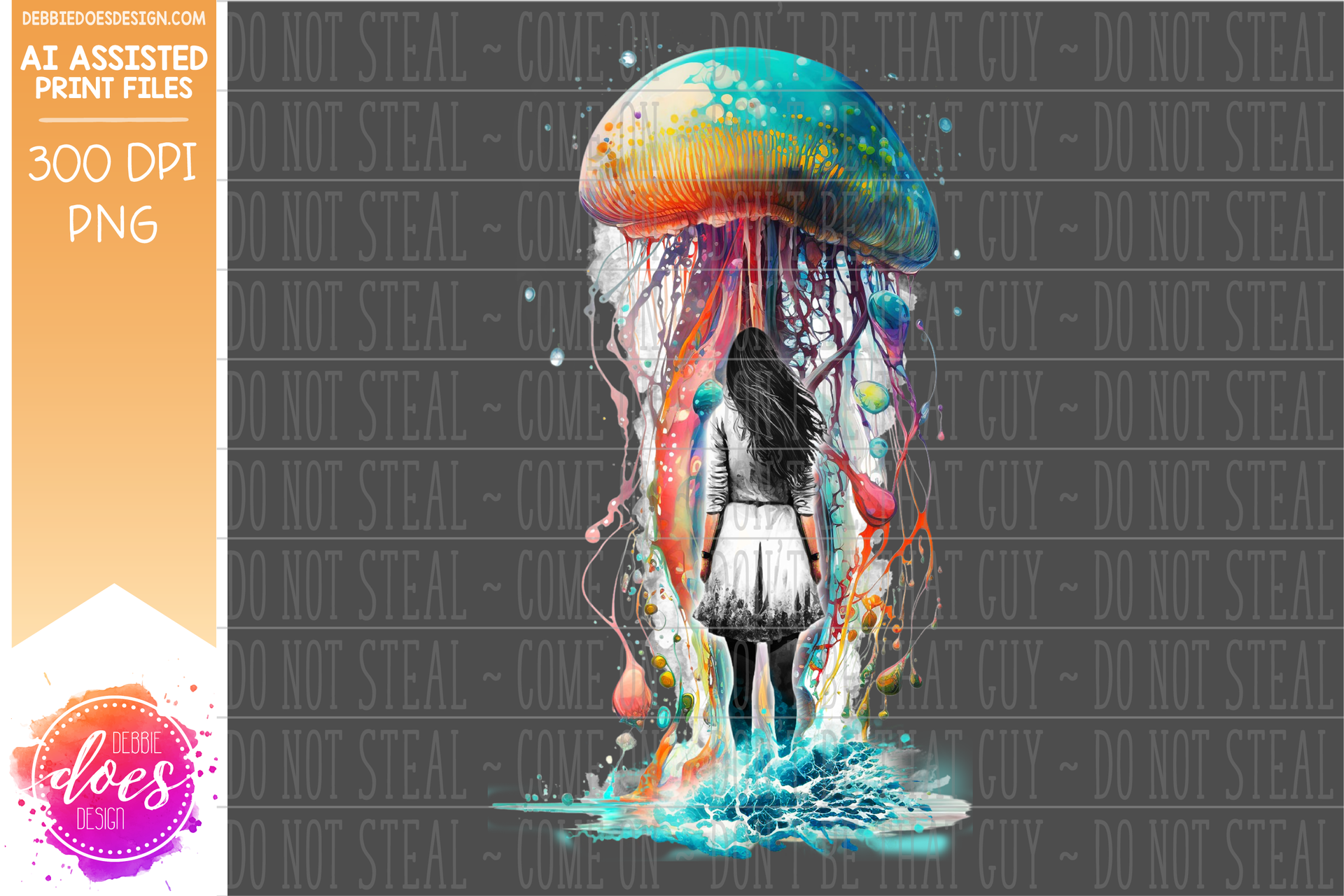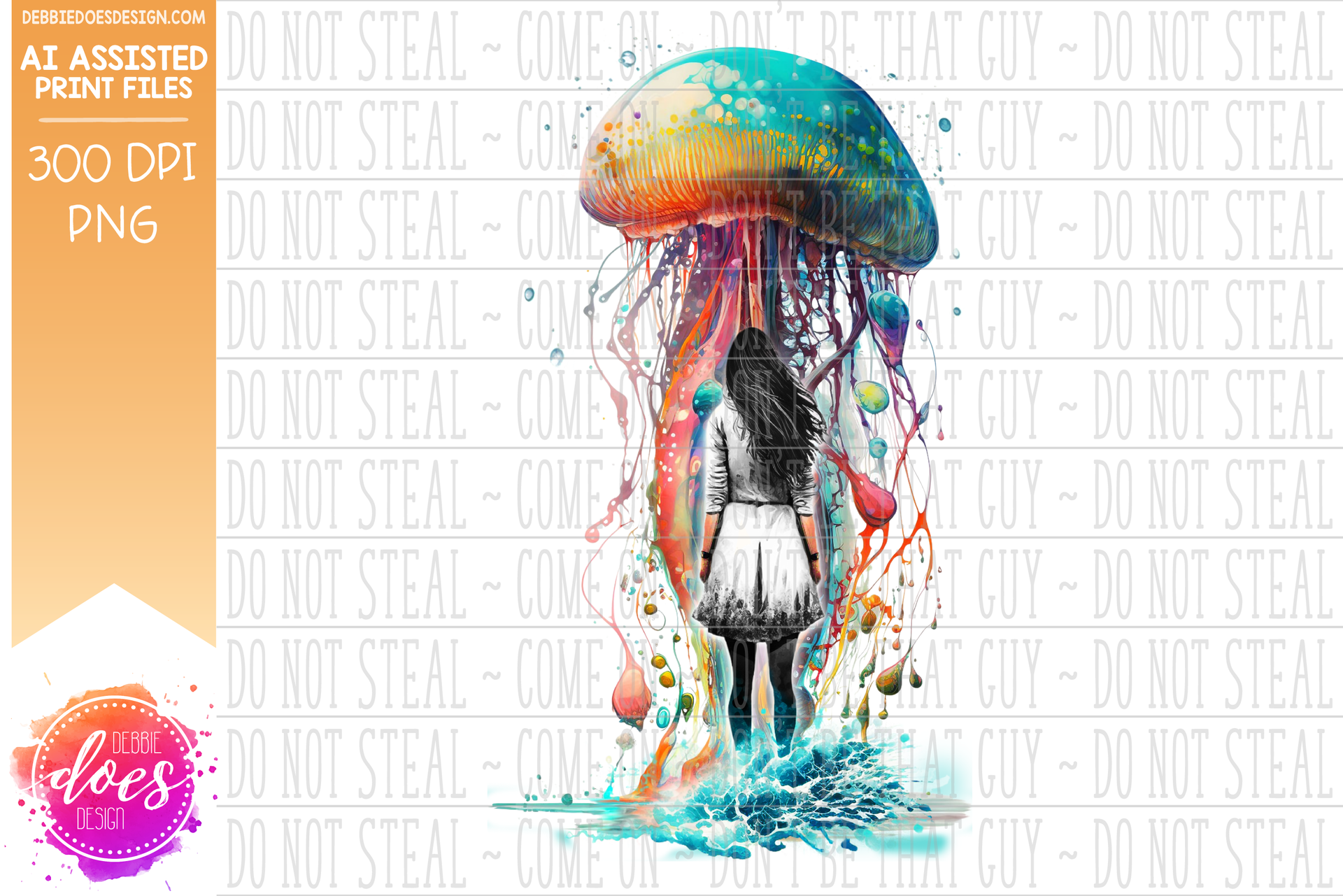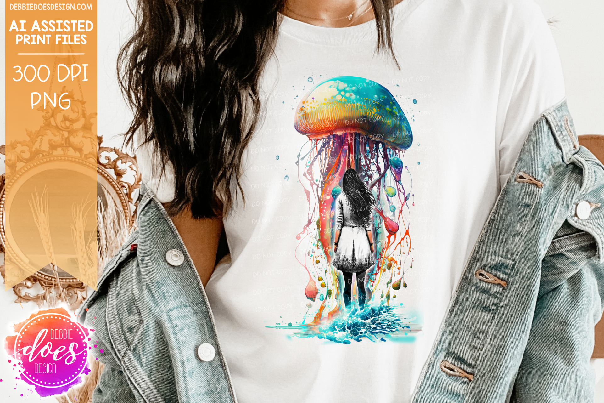 Colorful Drippy Jellyfish with Girl - Design Elements