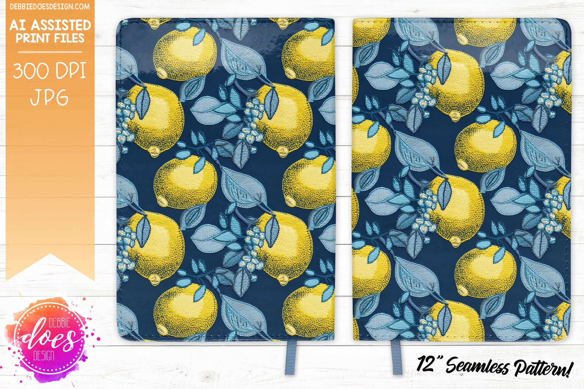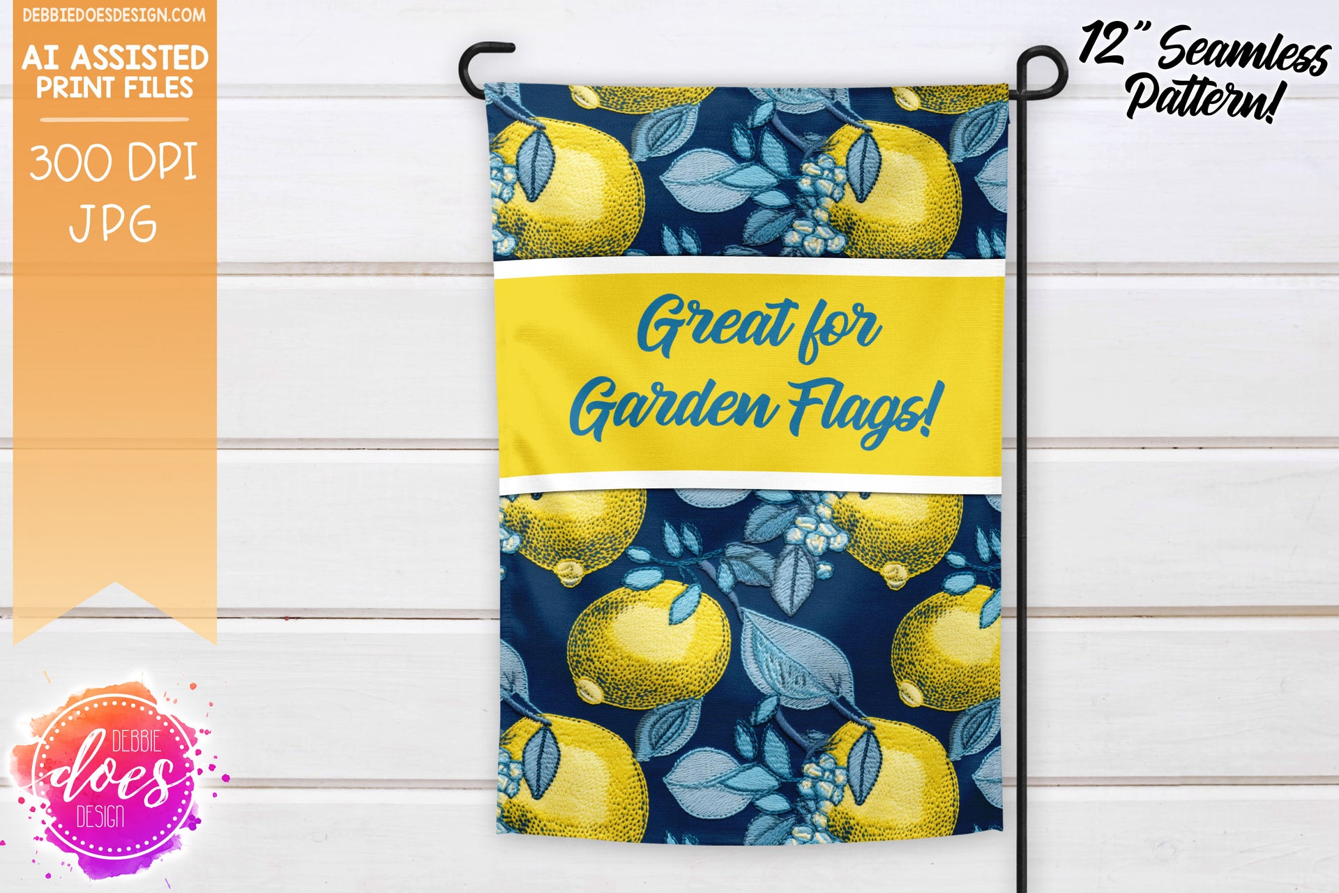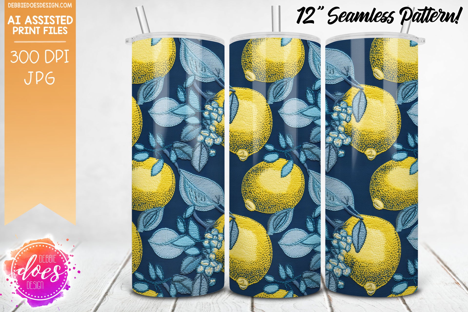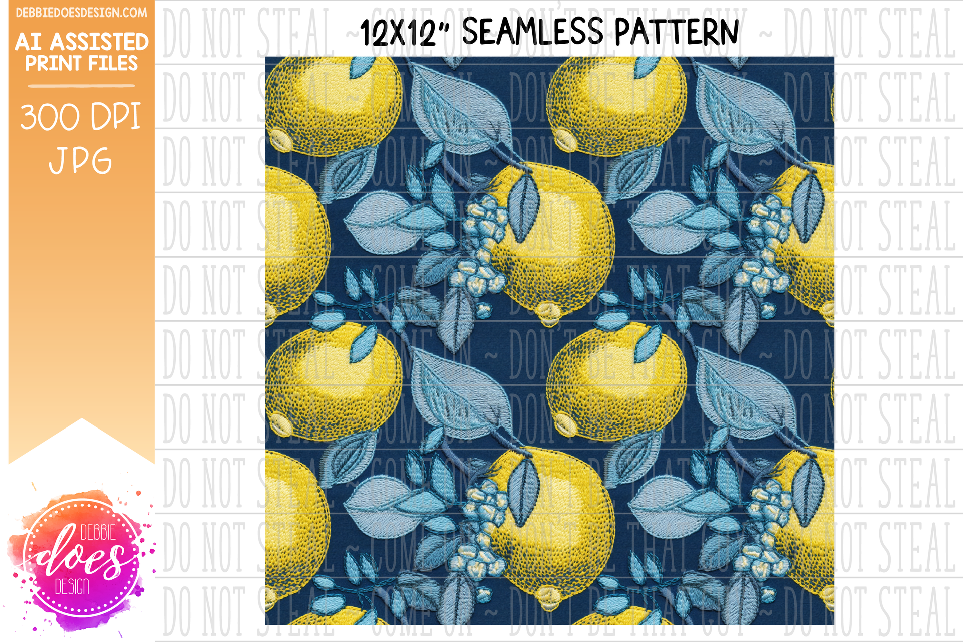 Embroidery Seamless Pattern - Lemons on Blue - Design Elements