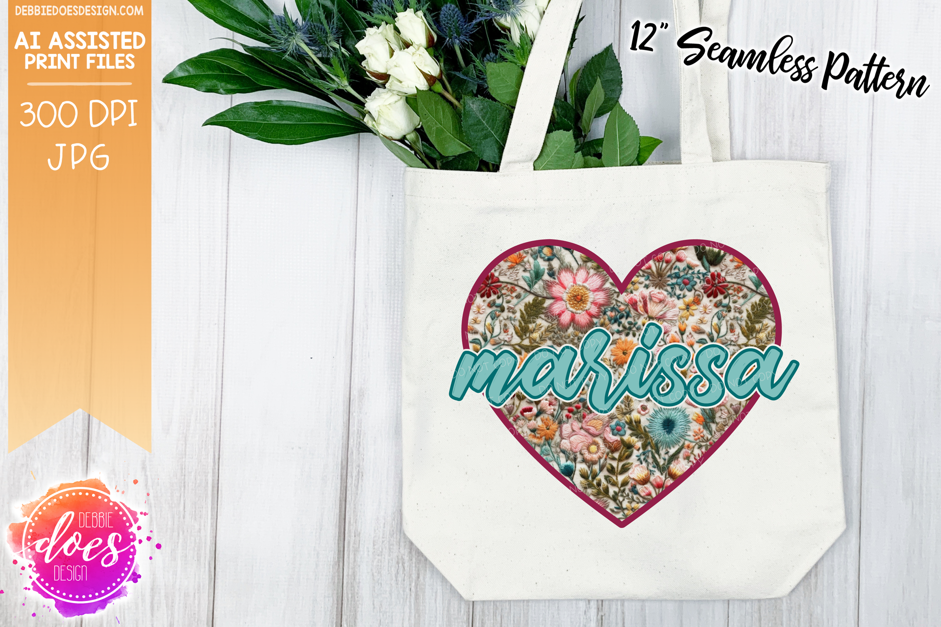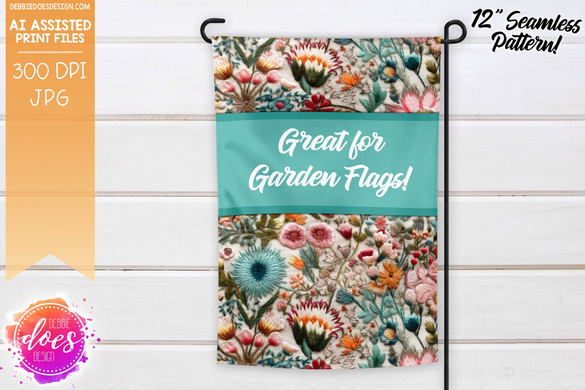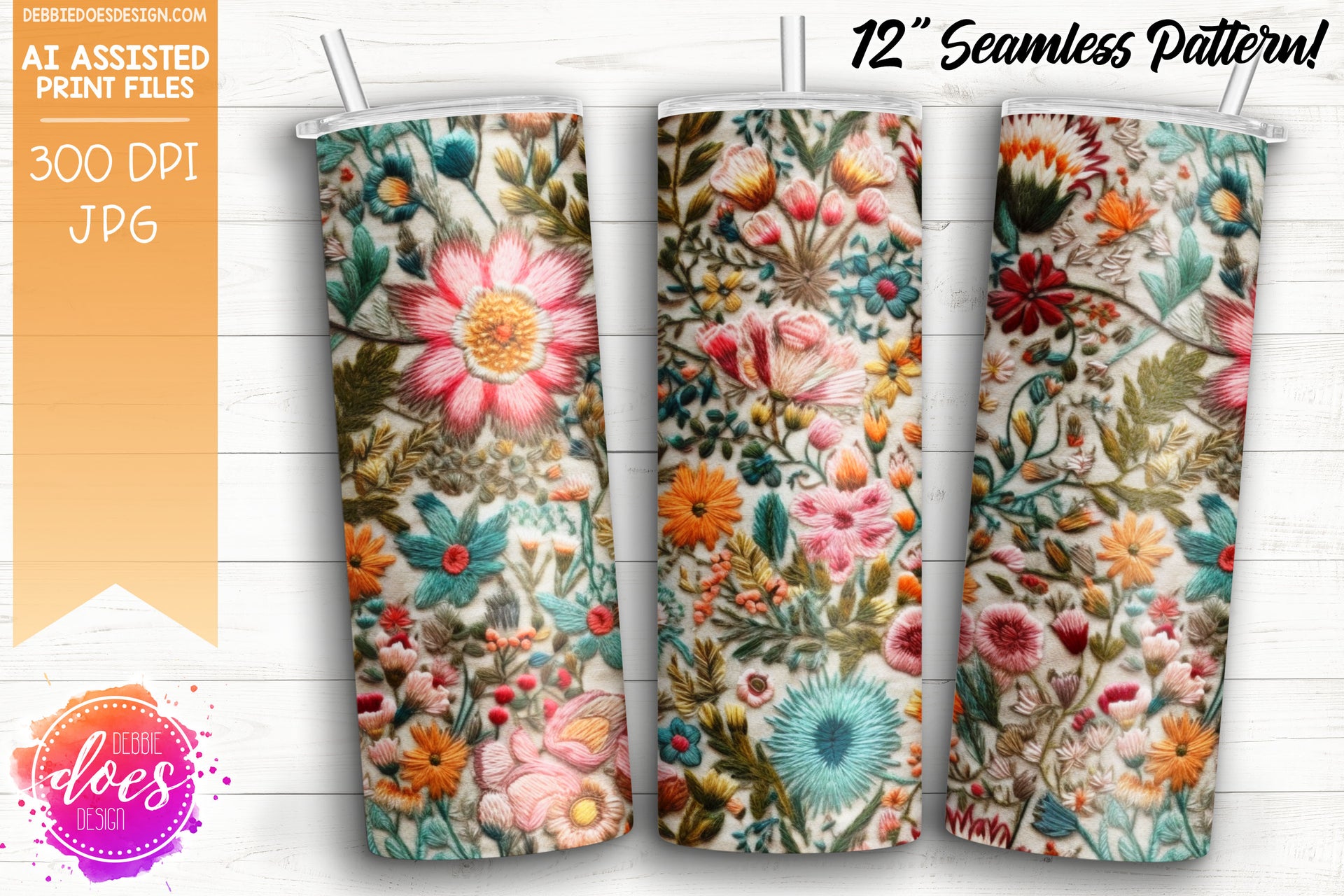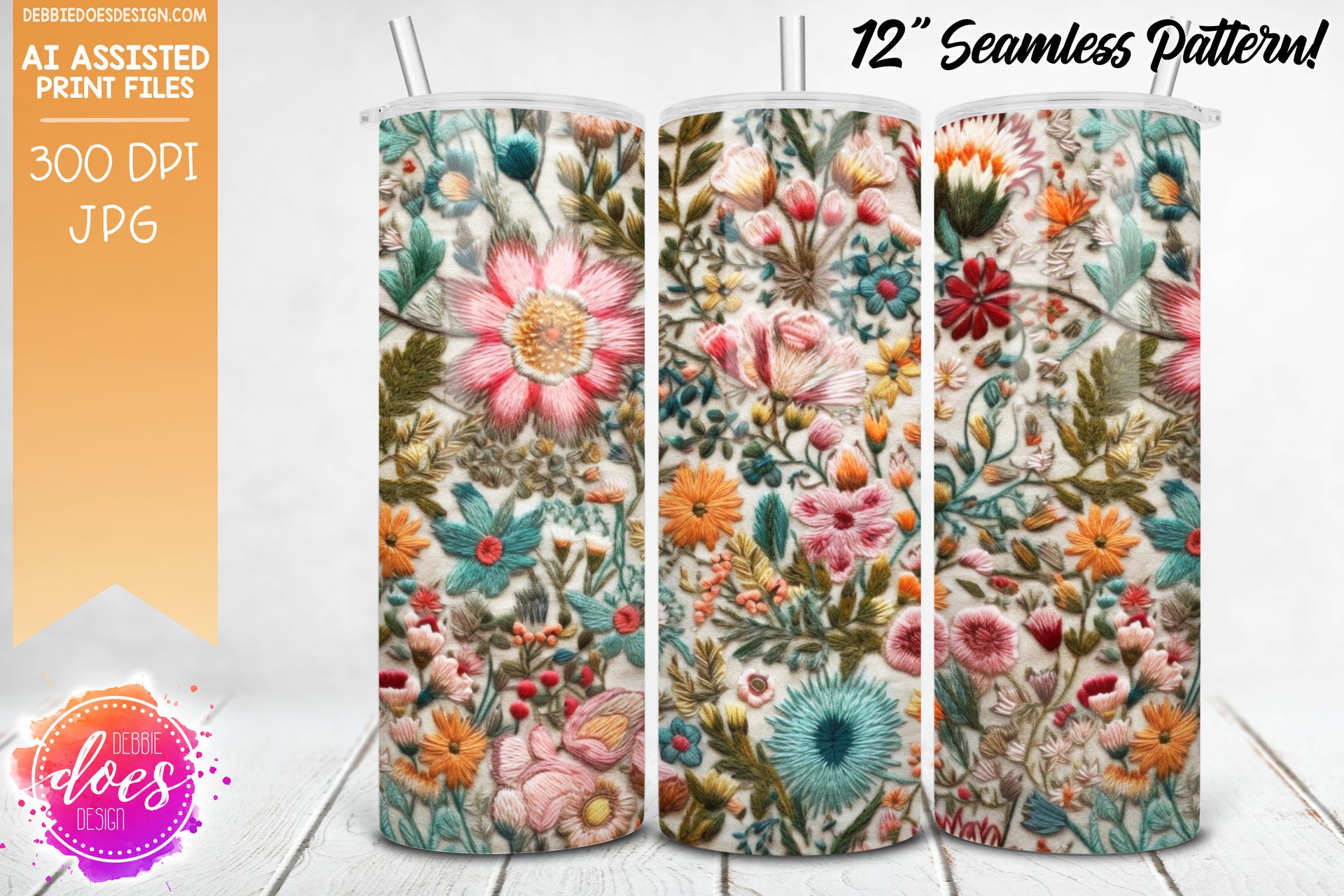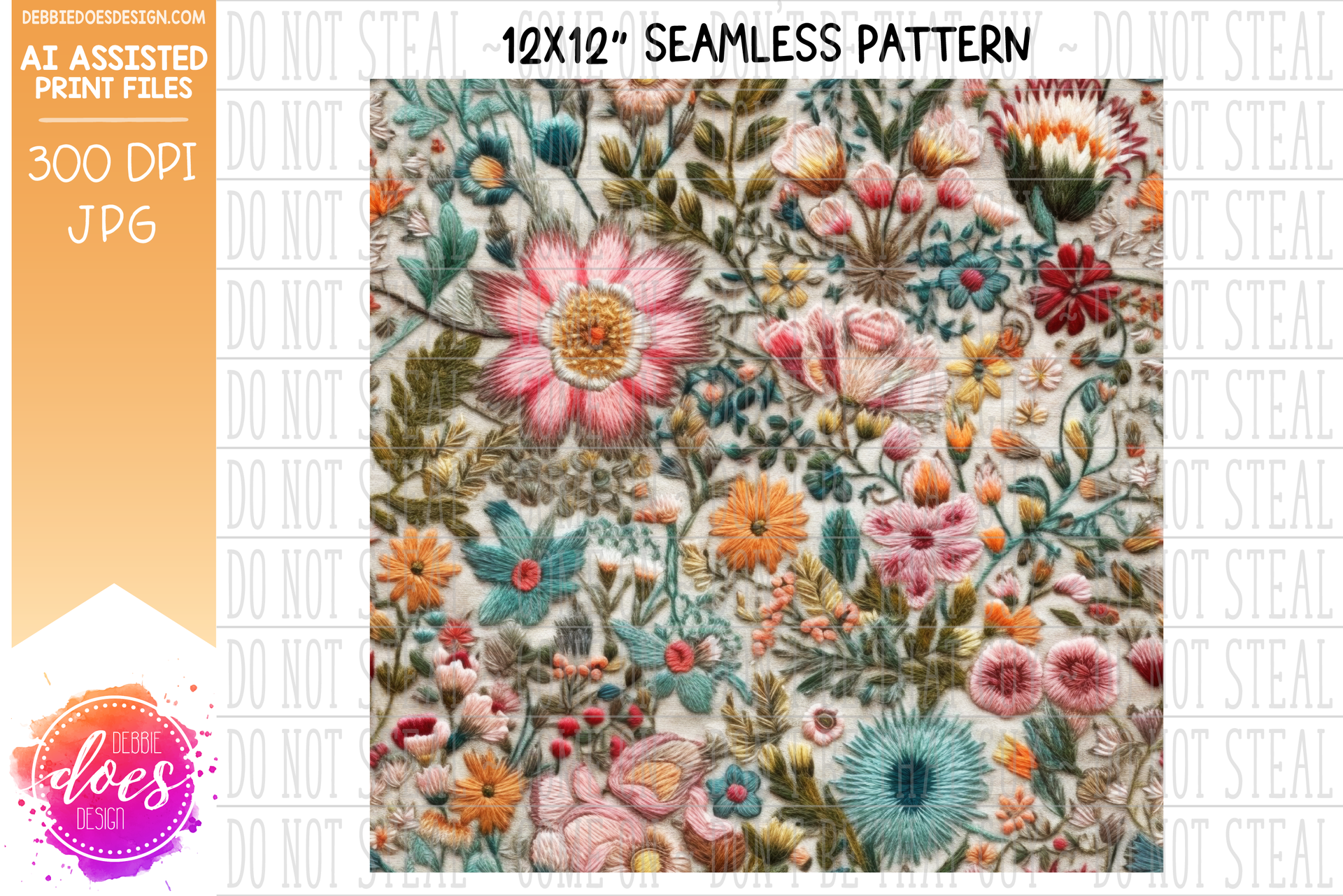 Embroidery Seamless Pattern - Pink Orange Mint Florals - Design Elements