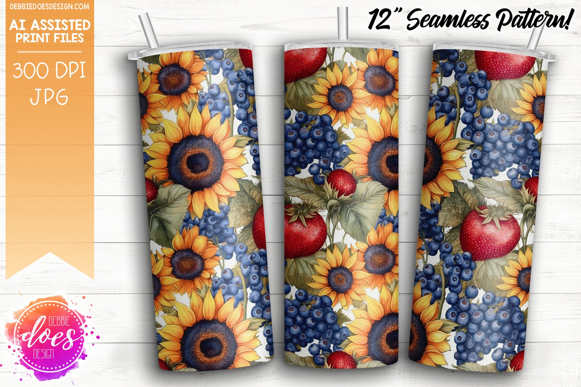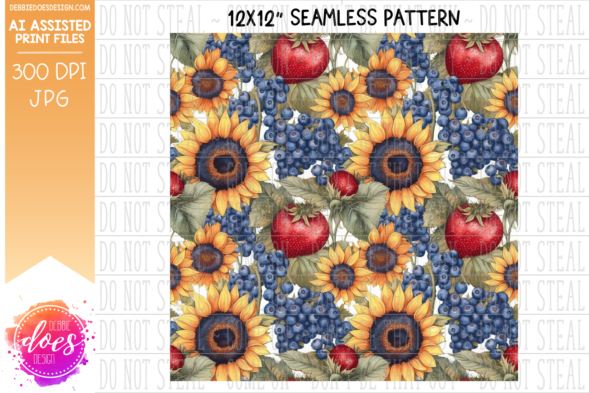 Floral Seamless Pattern - Sunflowers Blueberries and Strawberries - Design Elements
