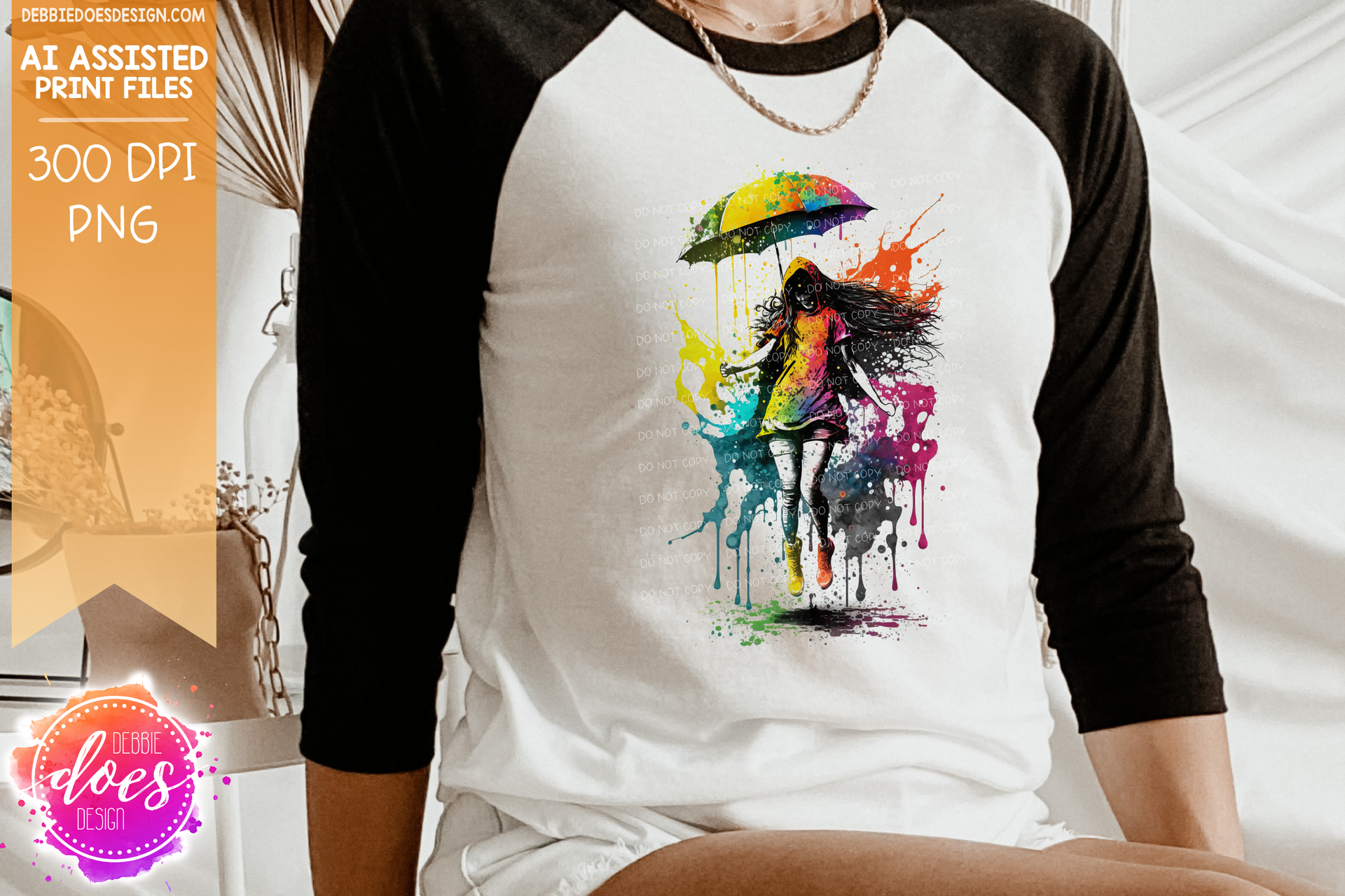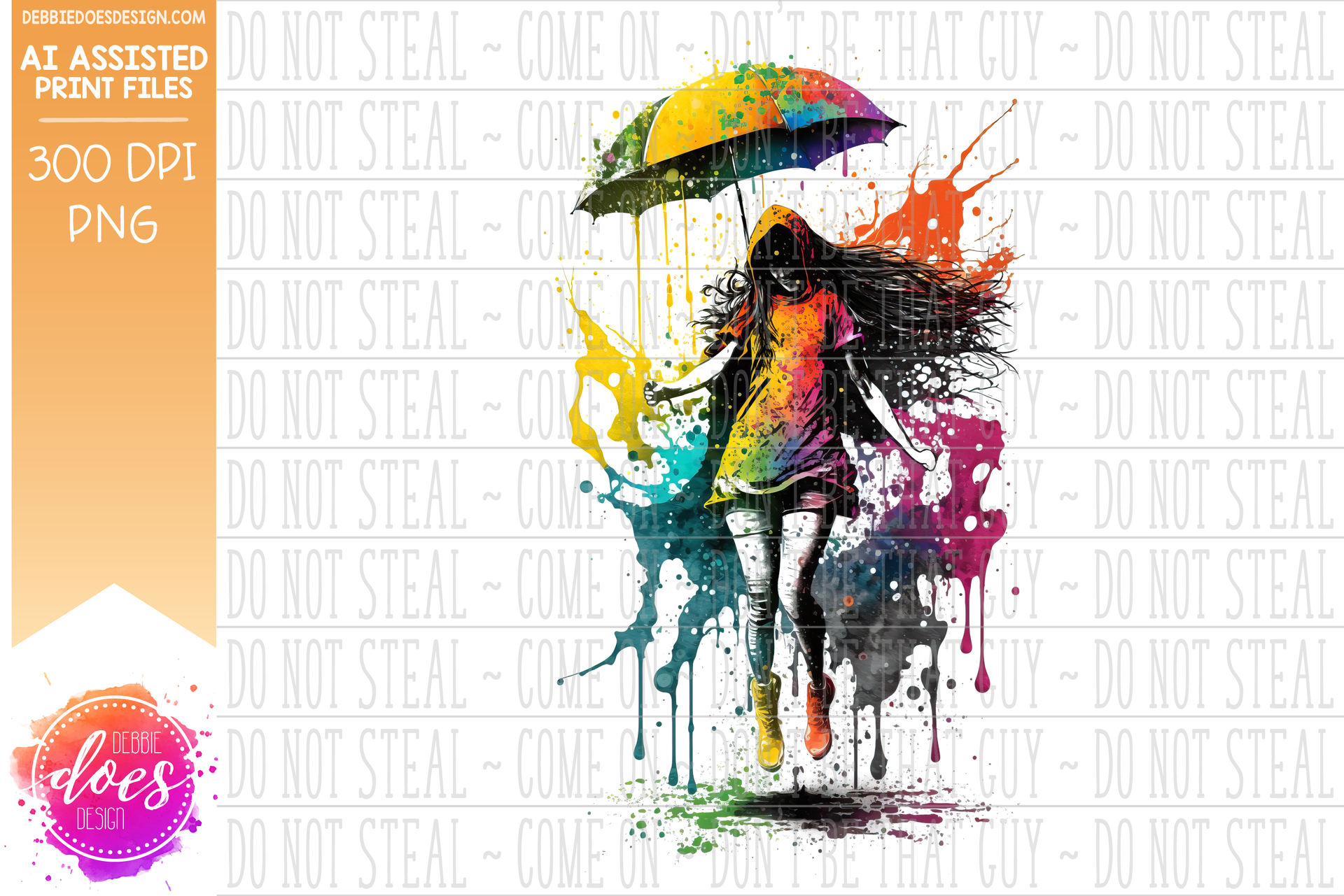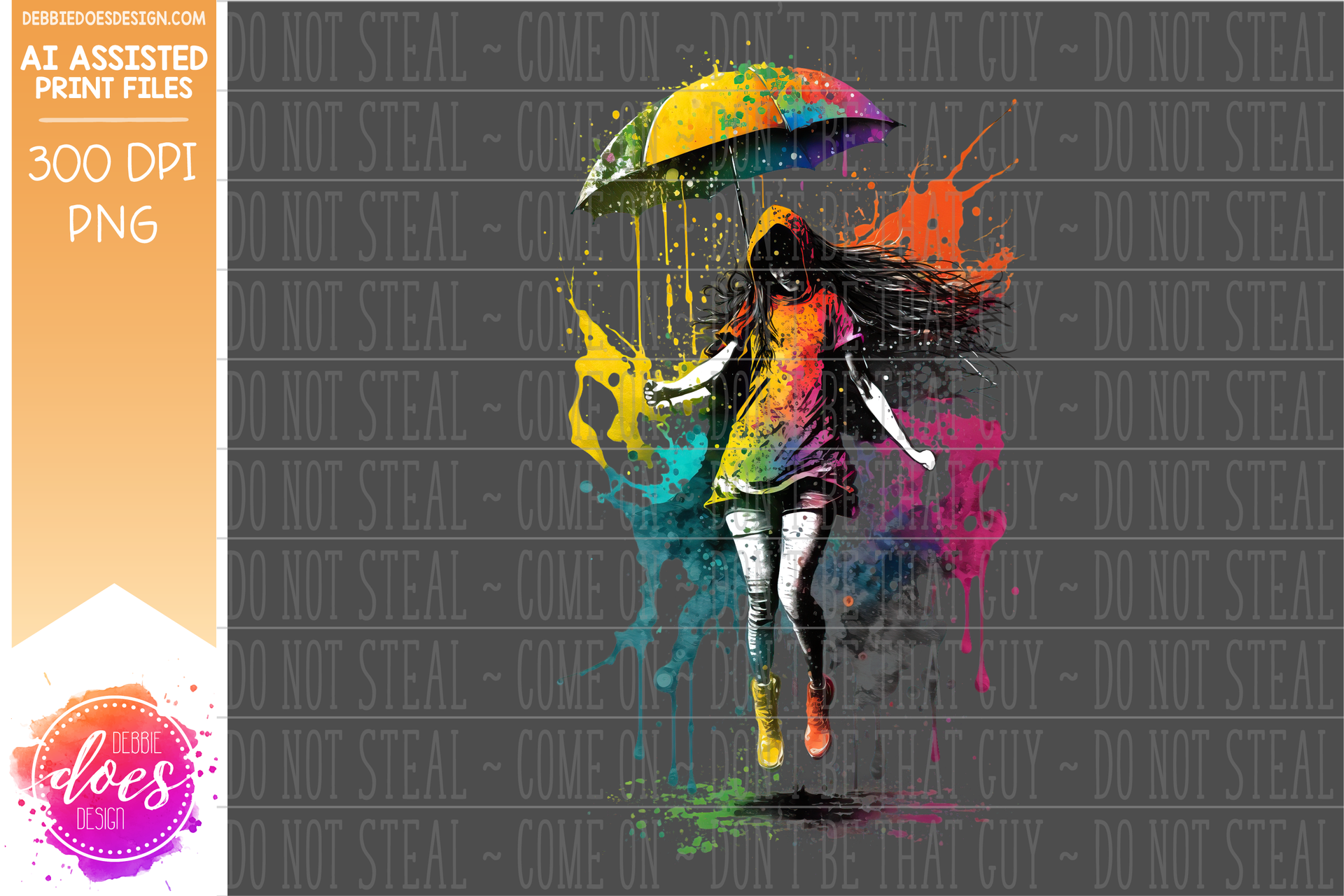 Girl Dancing in the Rainbow Rain 1 - Design Elements