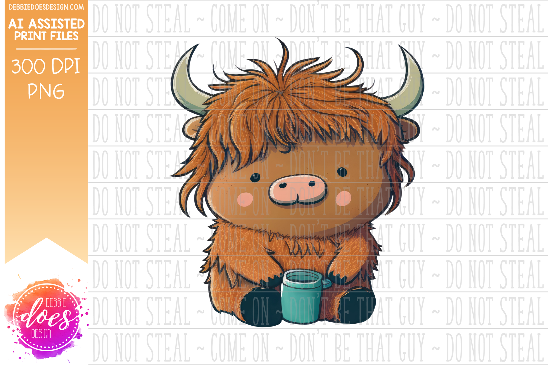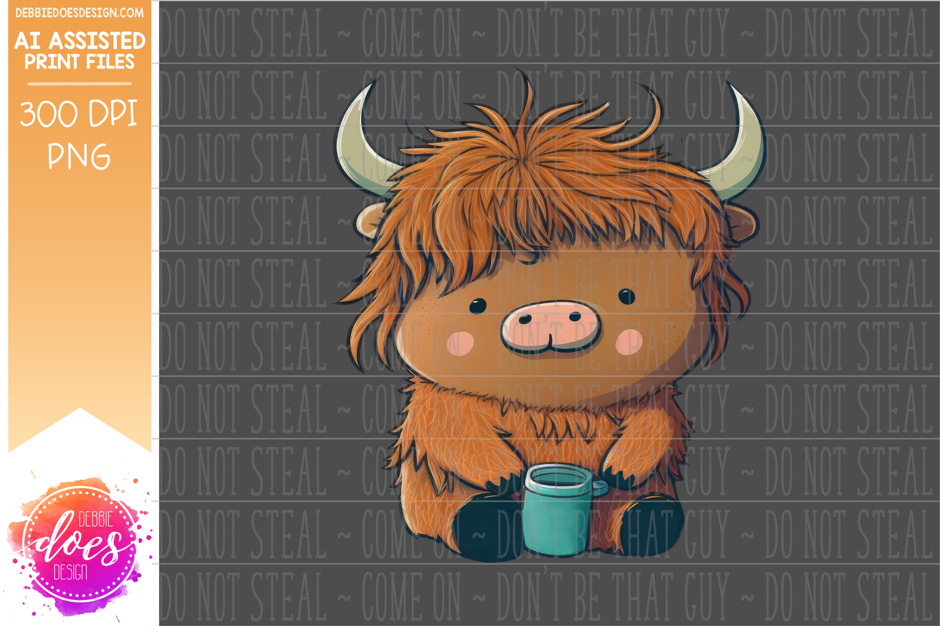 Highland Cow with Coffee 1 - Design Elements