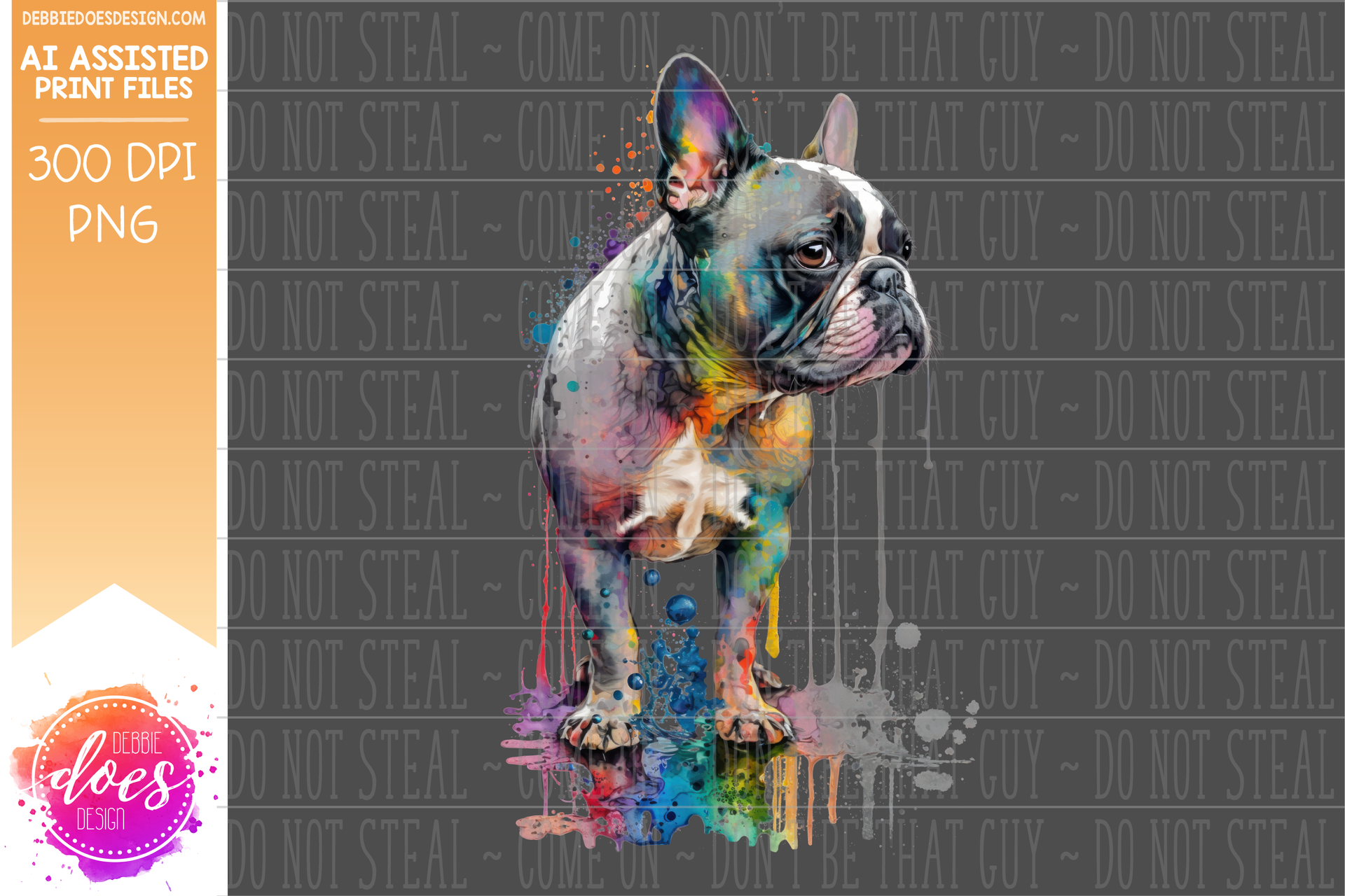 Painted Abstract Dogs - Frenchie - Blue Merle - Design Elements