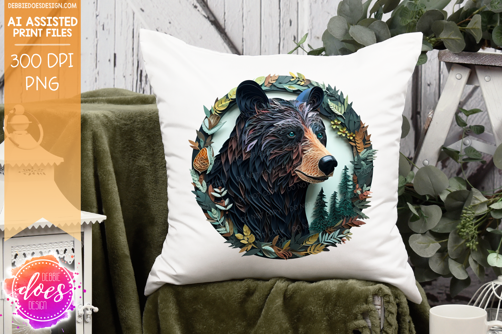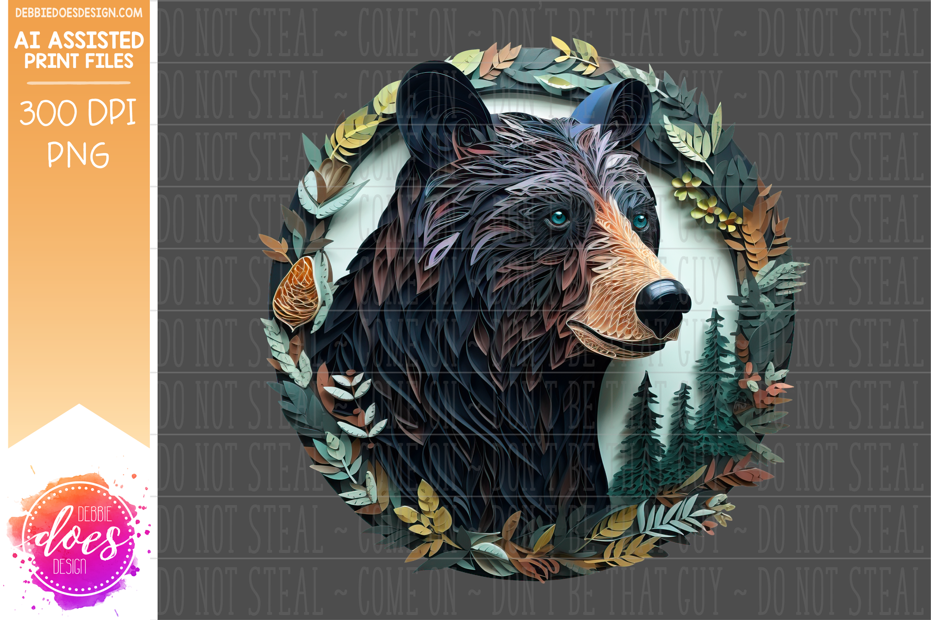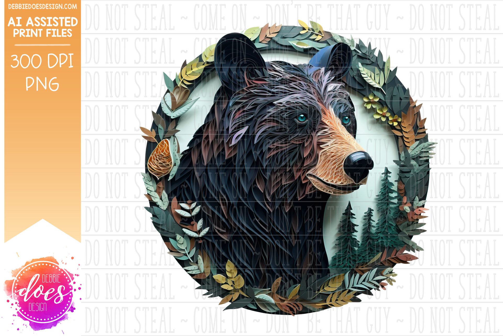 Paper Art - Black Bear in Greenery Circle Frame - Design Elements