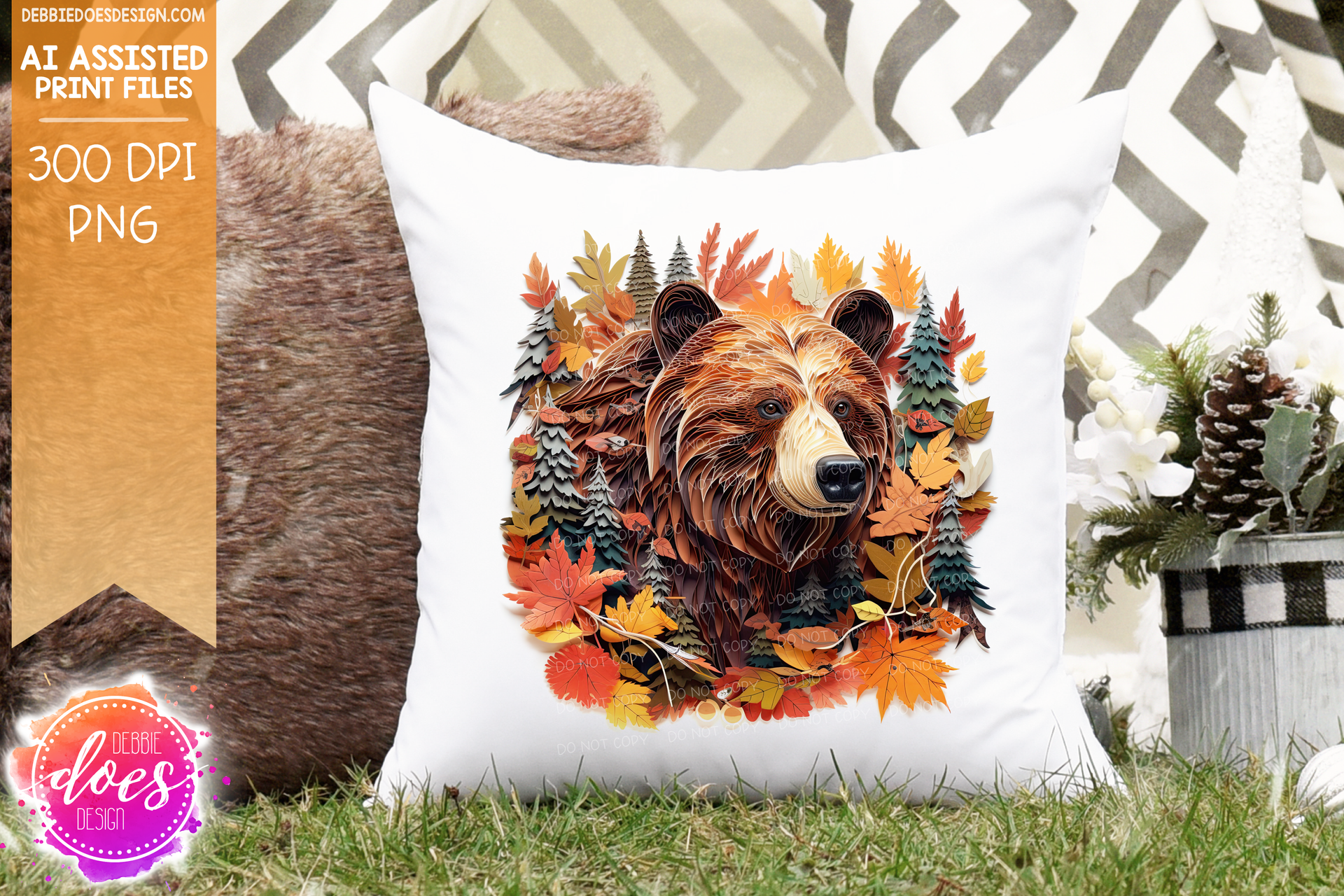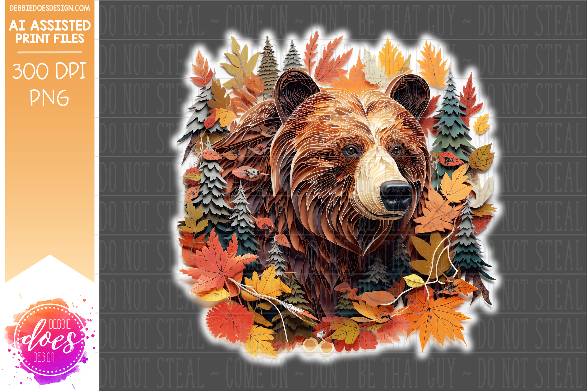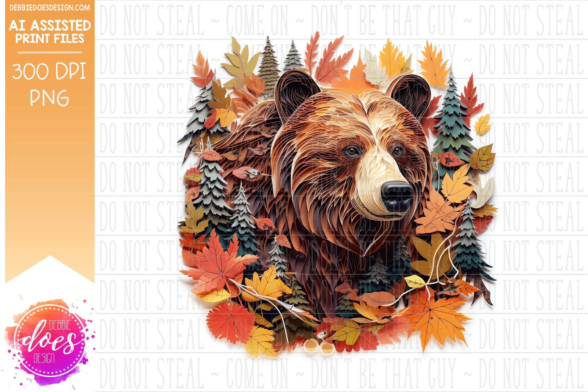 Paper Art - Brown Bear Fall Leaves - White Glow - Design Elements