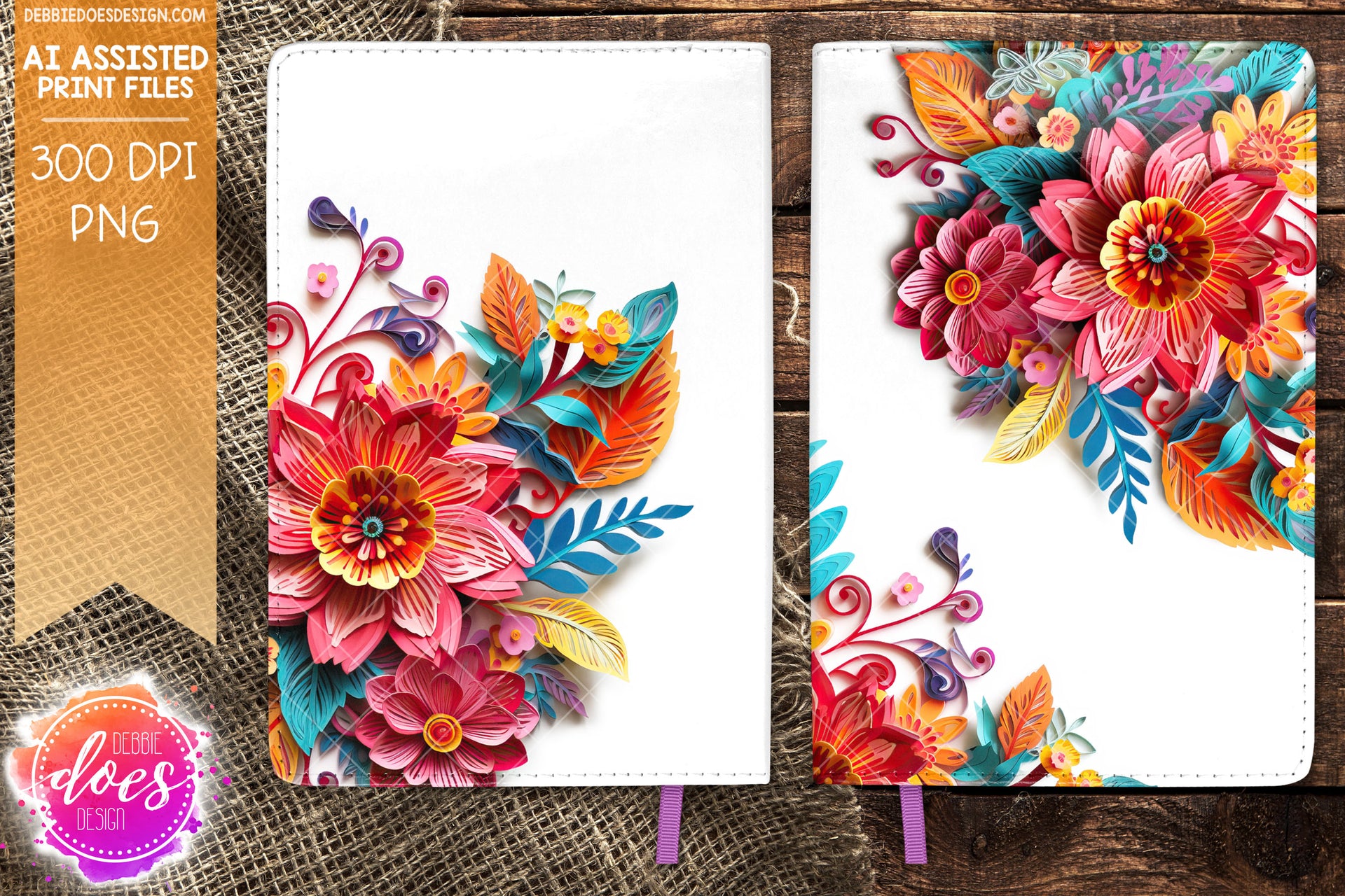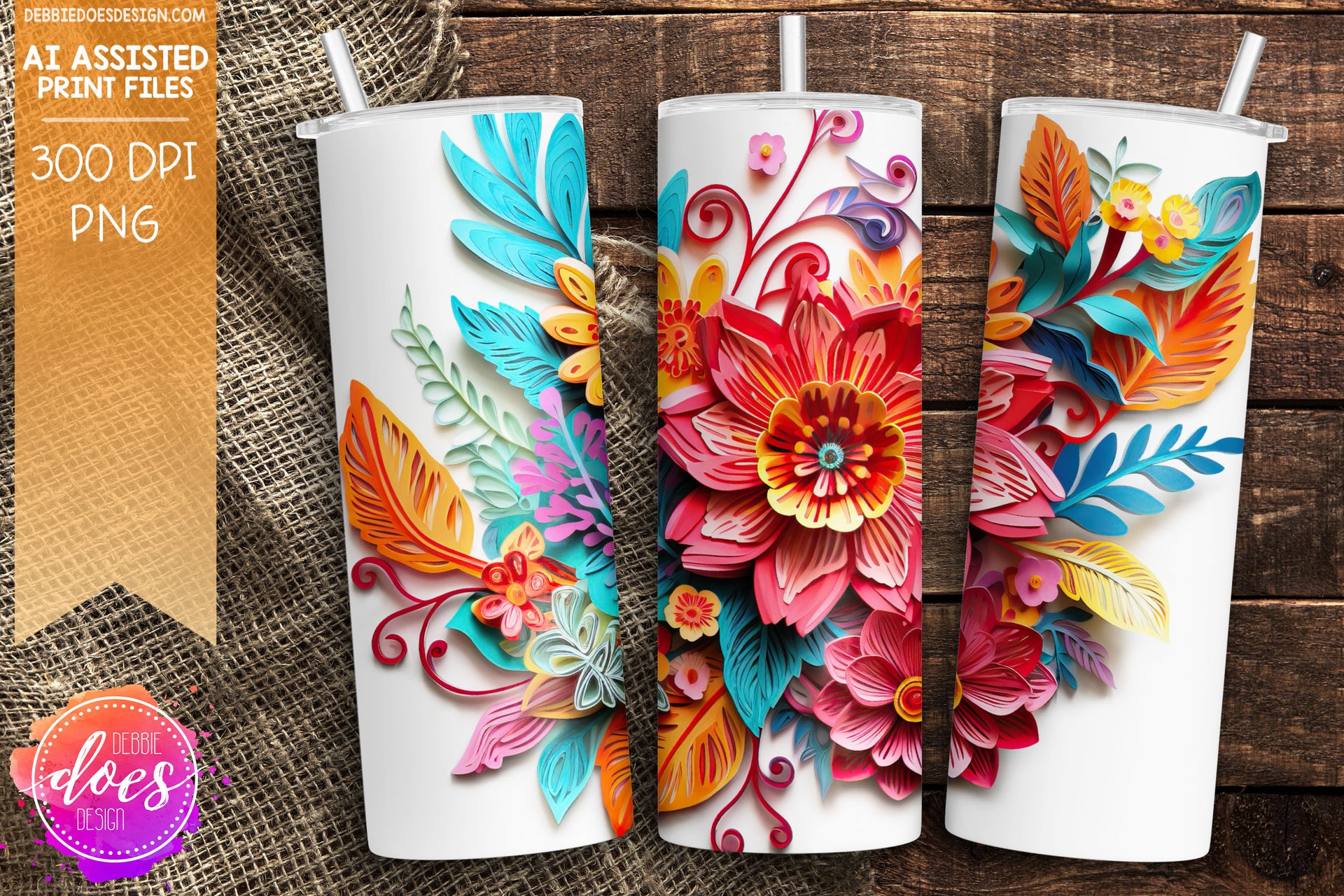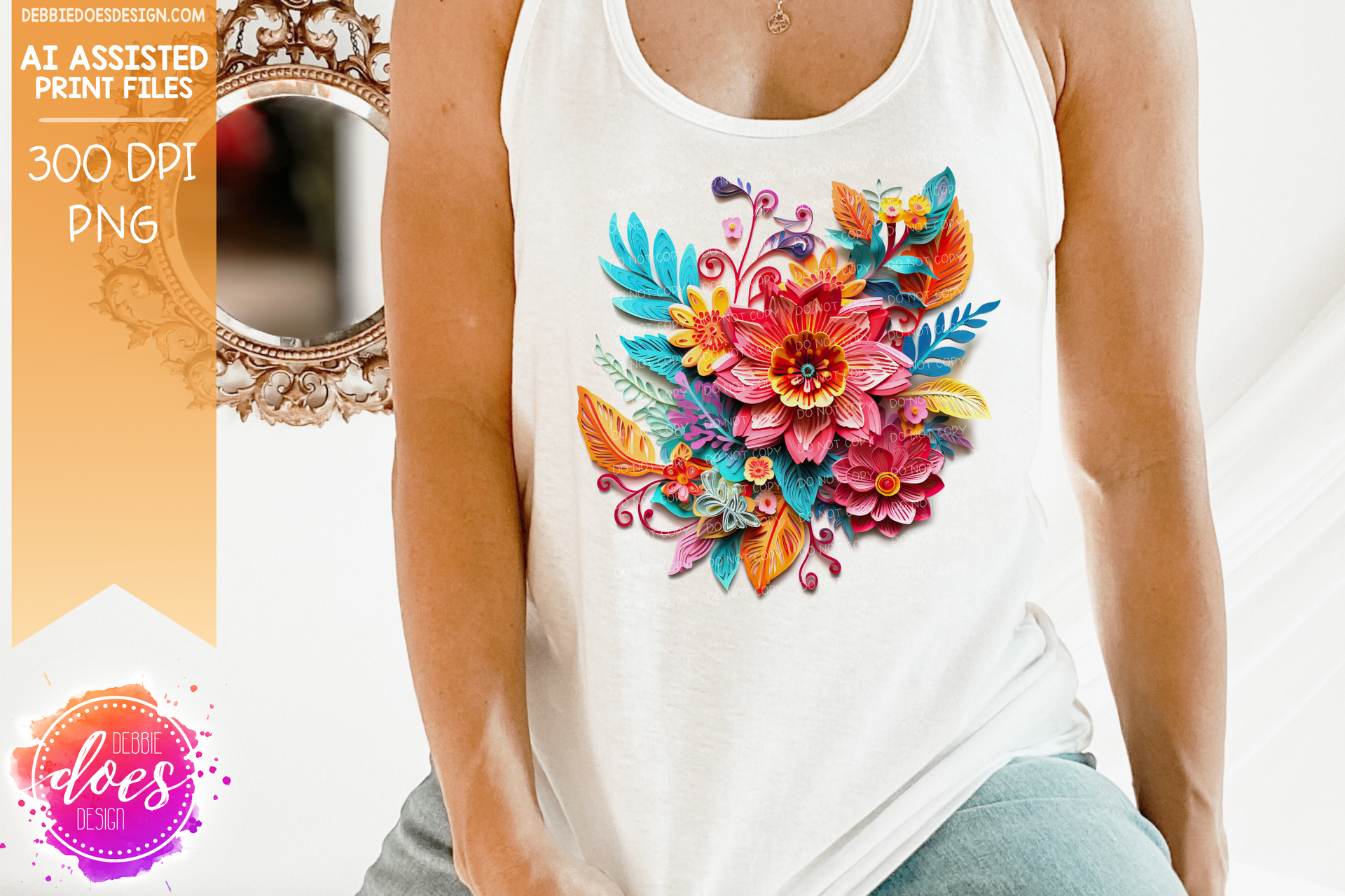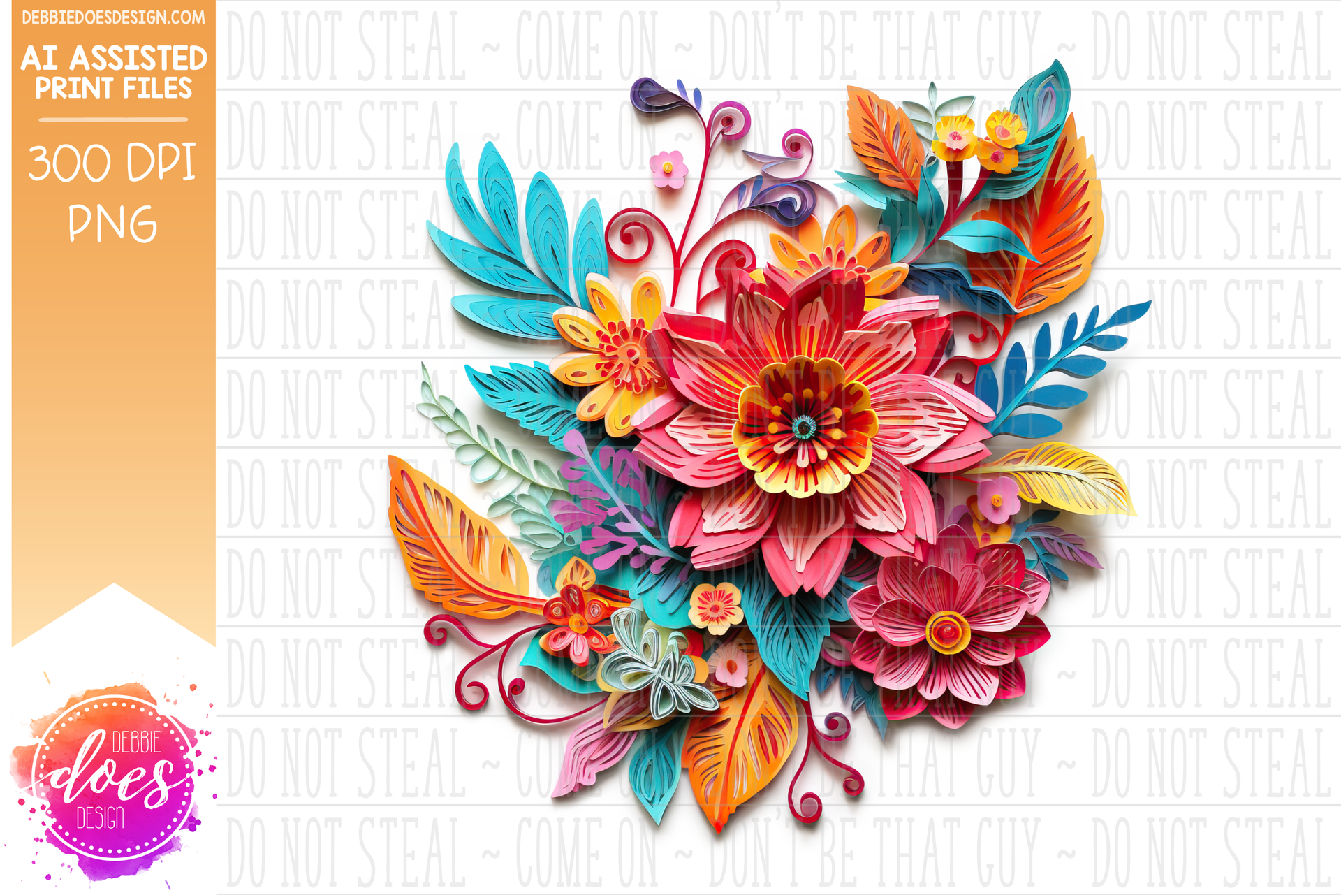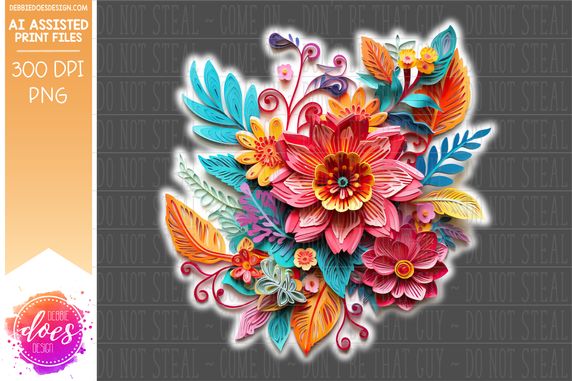 Paper Art - Pink Blue Orange Flowers - White Glow - Design Elements