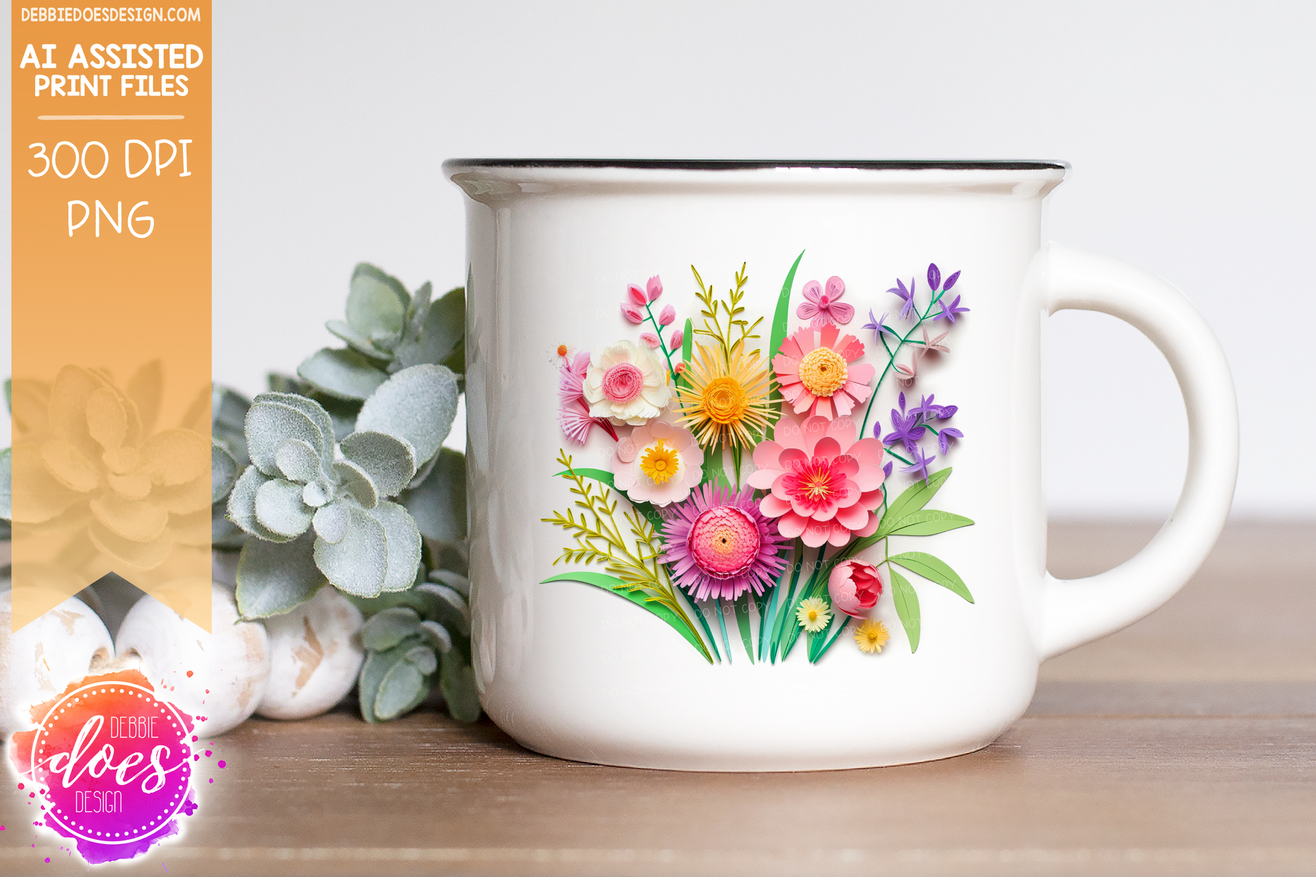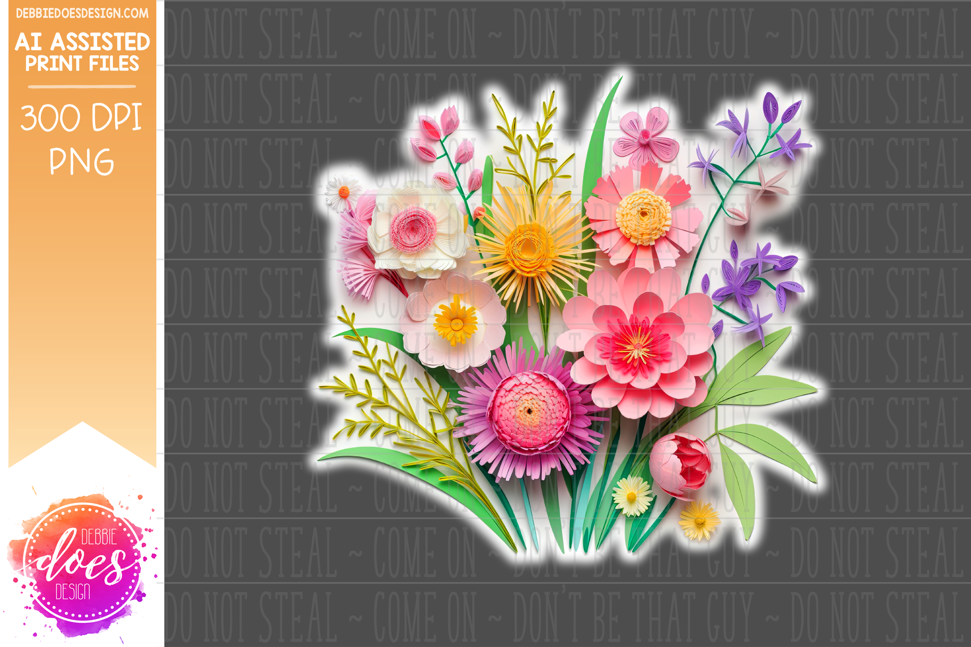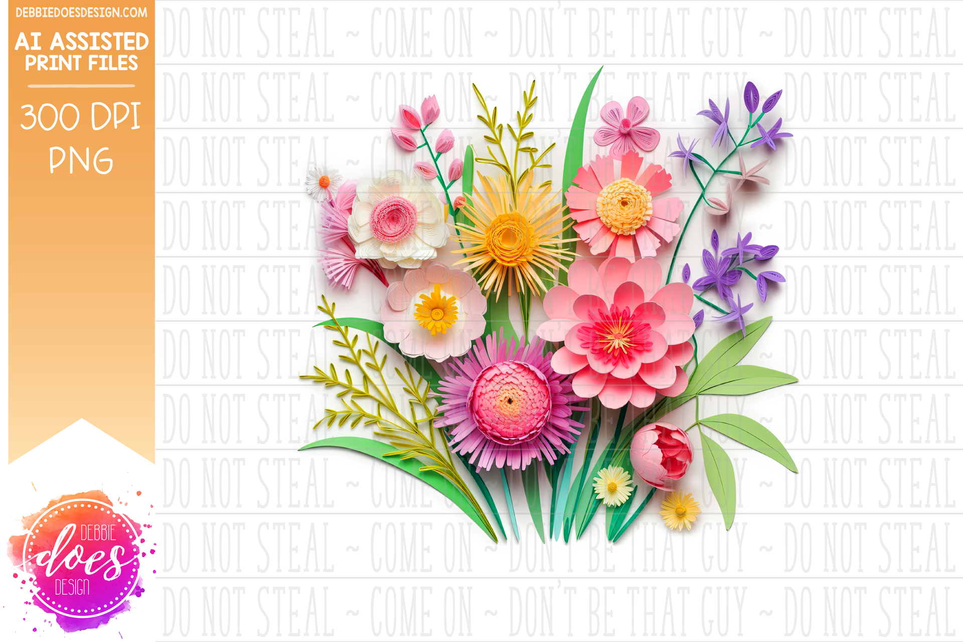 Paper Flowers - Pastels Pink Green - White Glow - Design Elements
