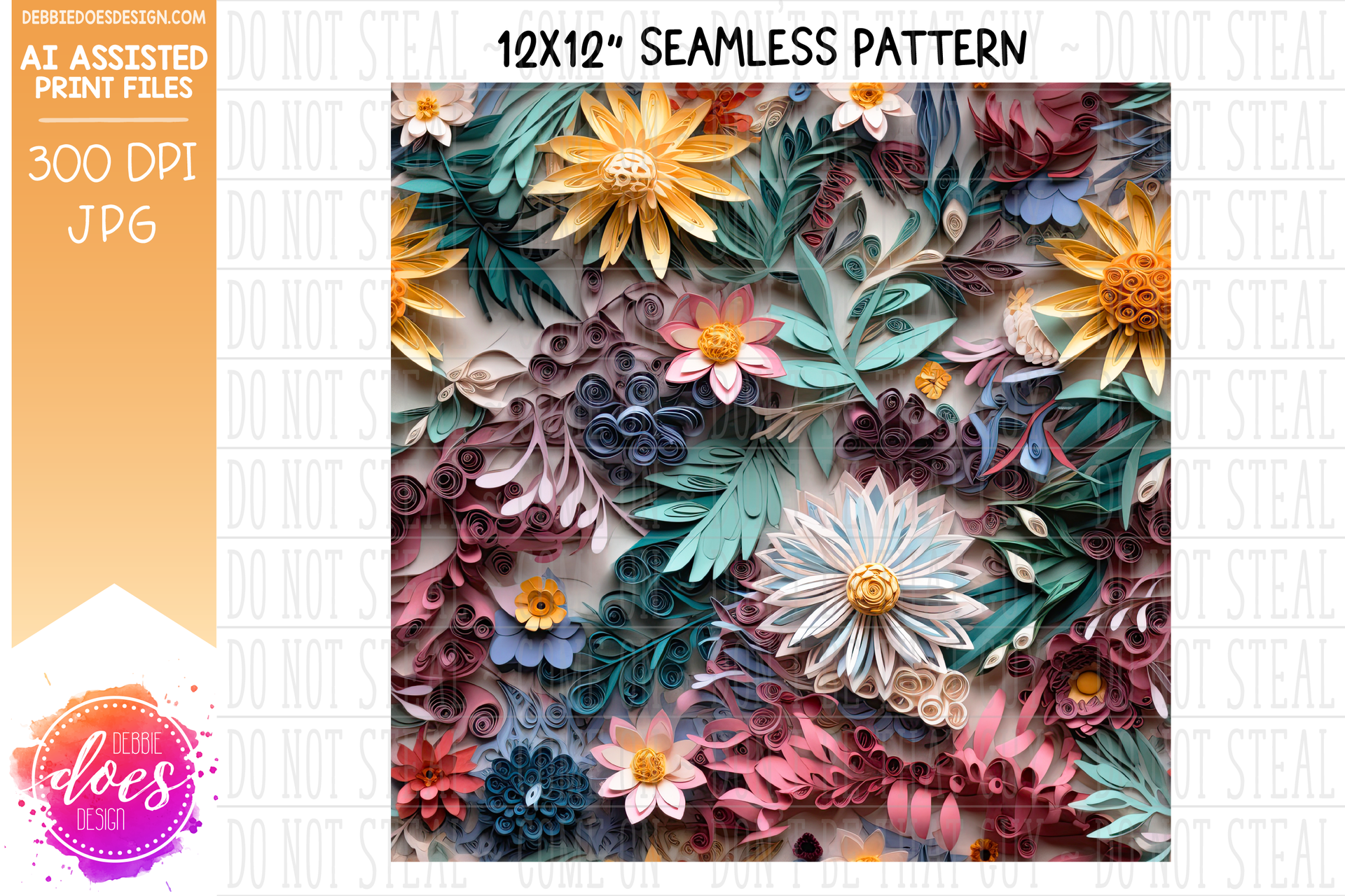 Paper Quilling - Floral Muted 1 - Seamless Pattern - Design Elements