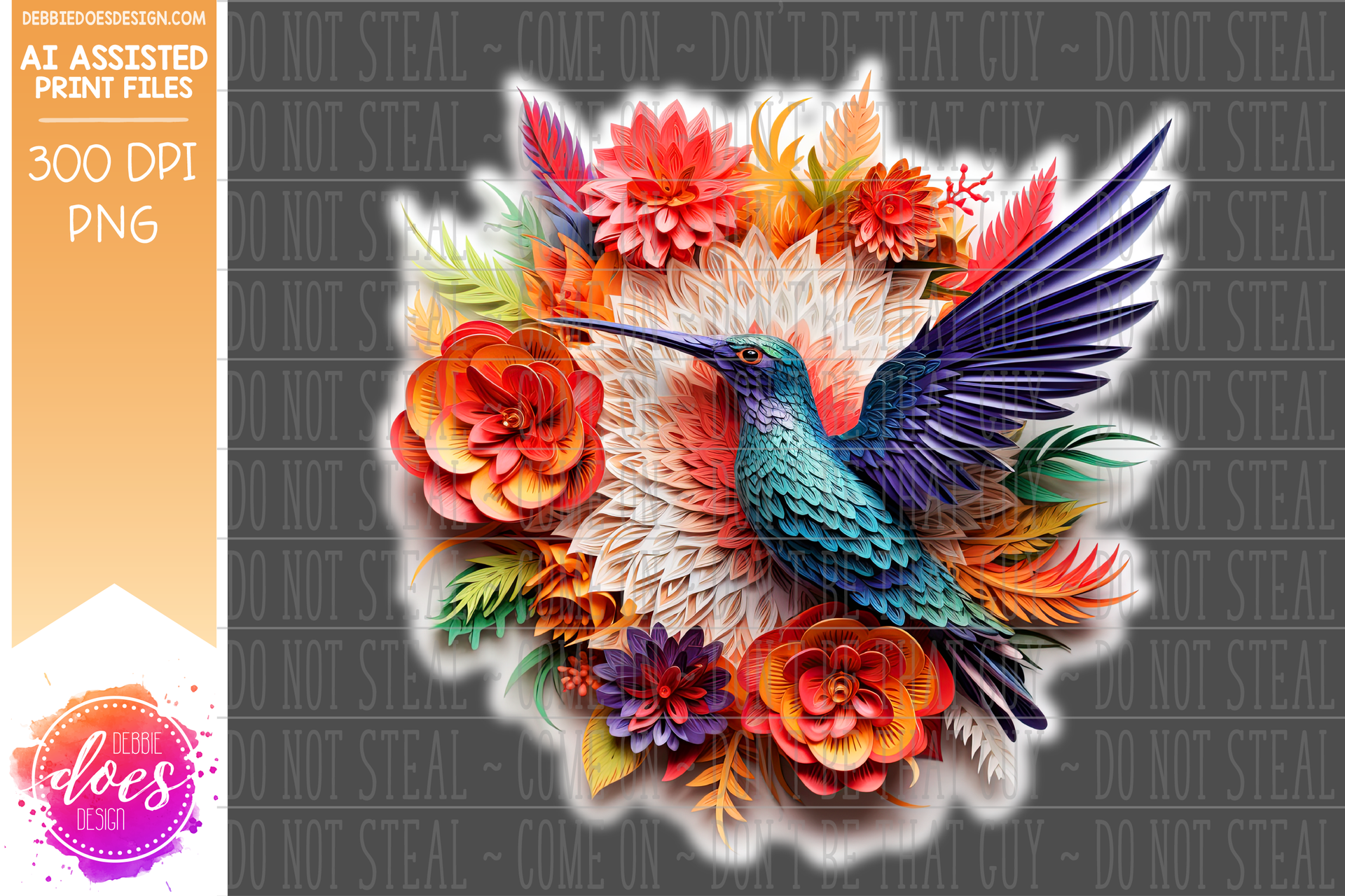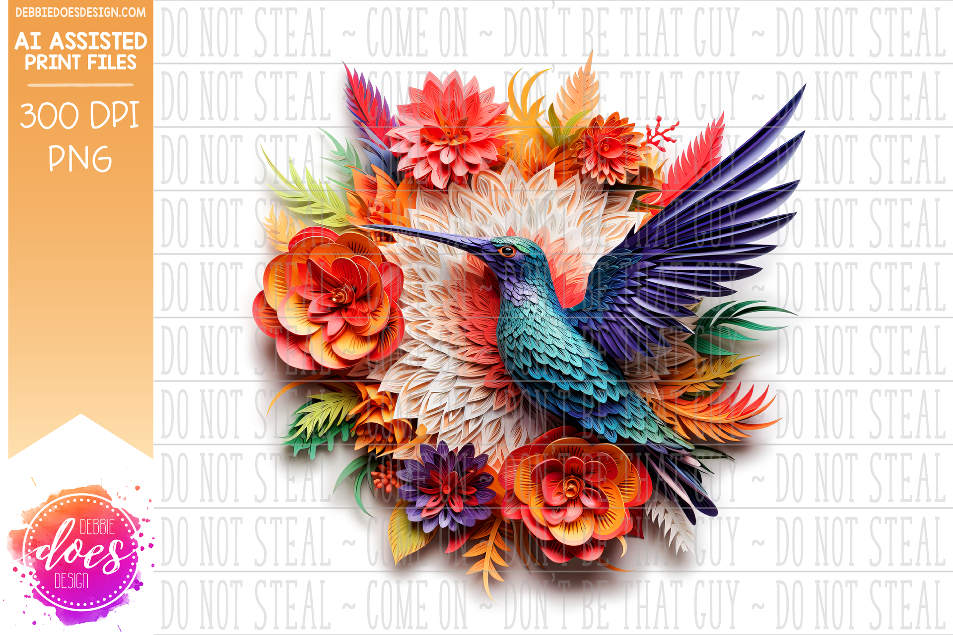 Paper Quilling - Hummingbird 4 - White Glow - Design Elements