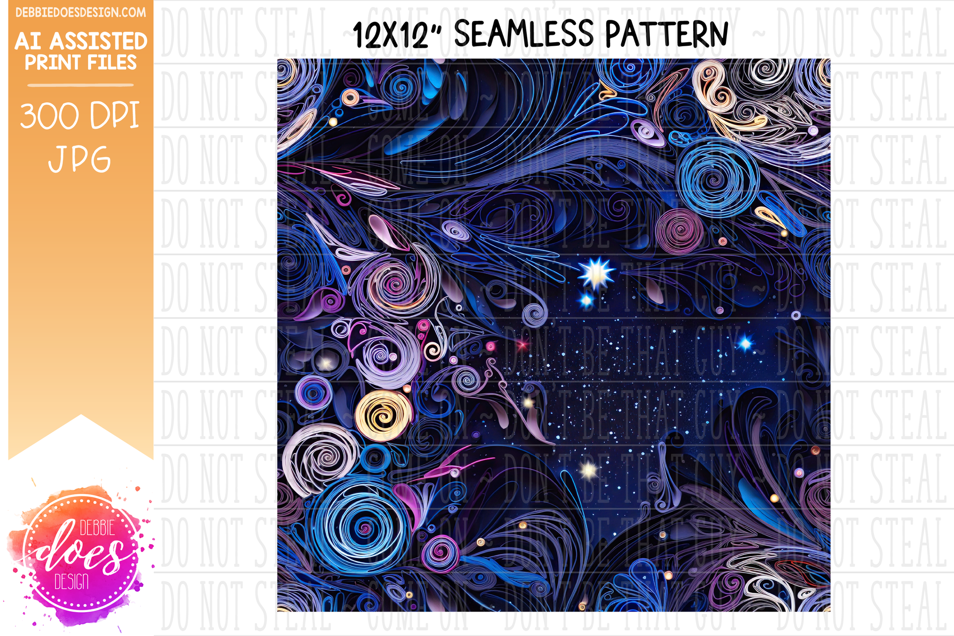 Paper Quilling - Night Sky 1 - Seamless Pattern - Design Elements