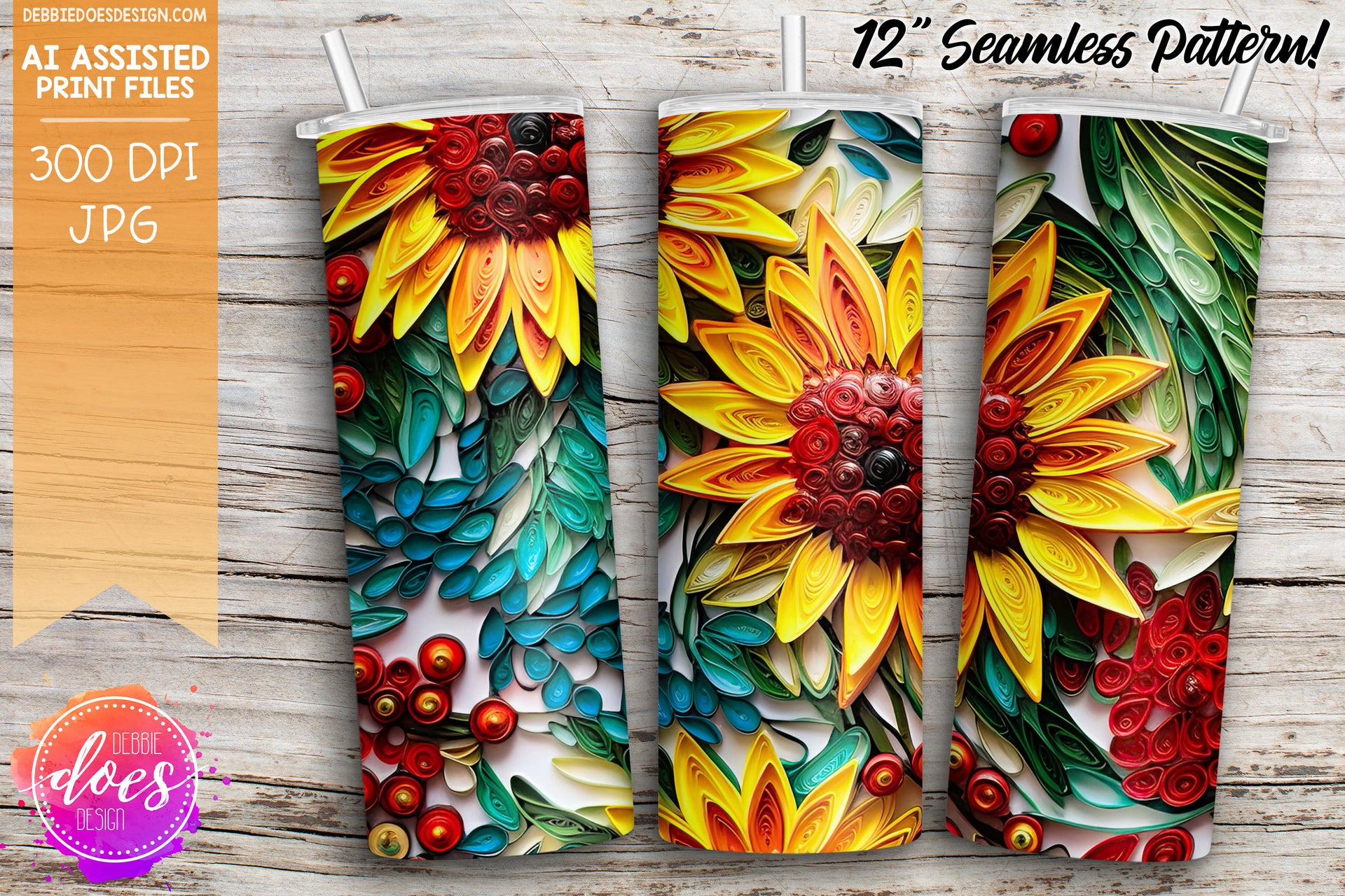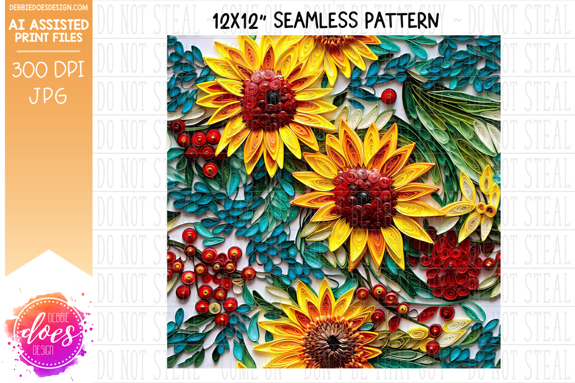 Paper Quilling - Sunflowers Red and Blue 2 - Seamless Pattern - Design Elements