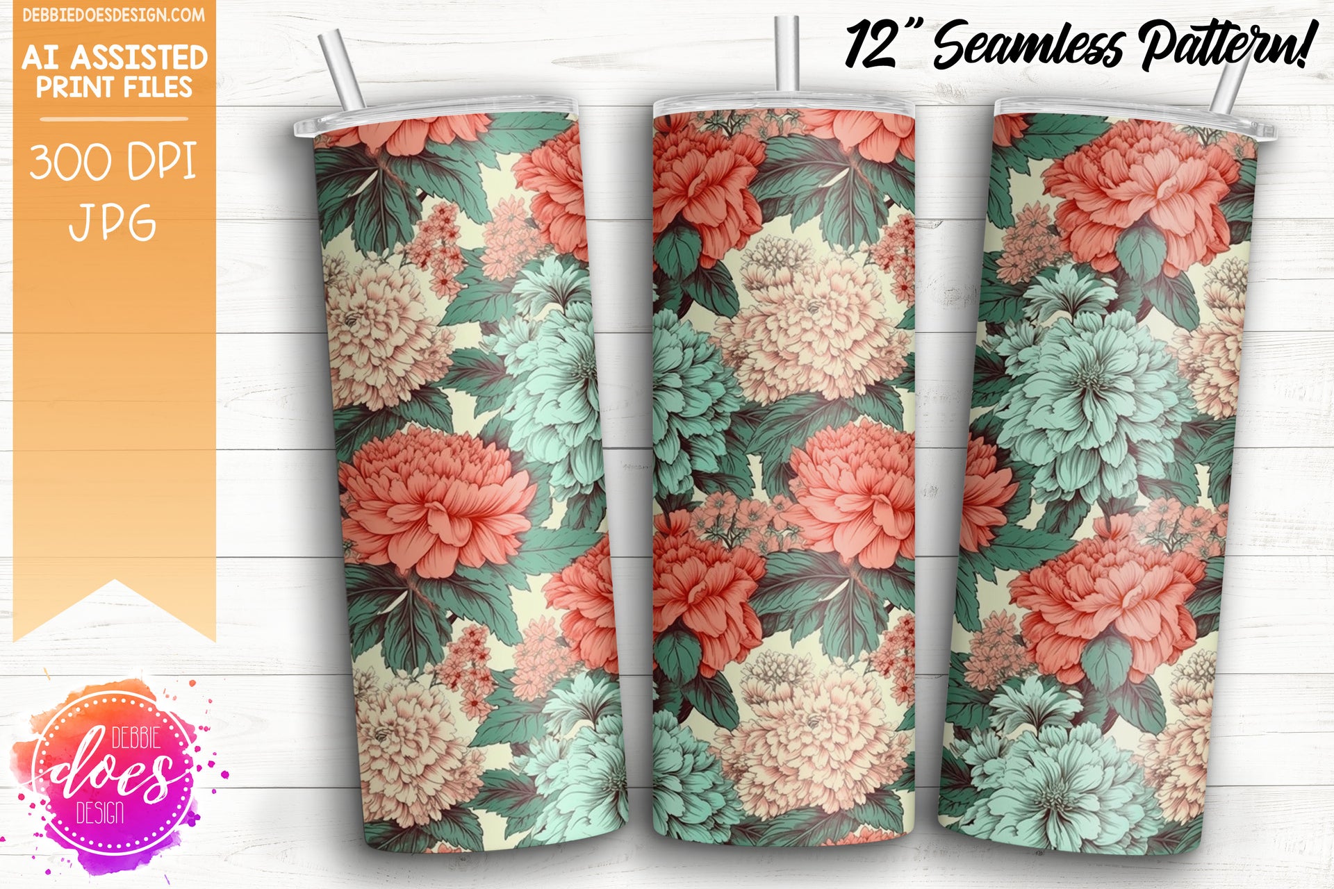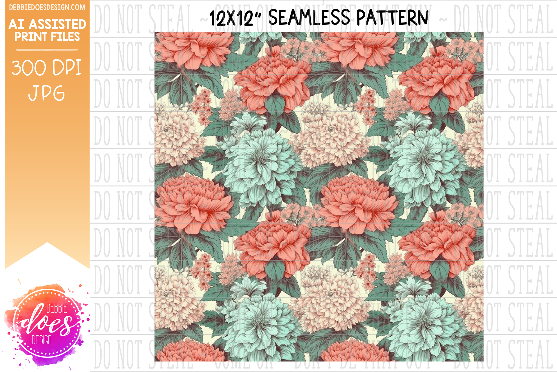 Vintage Flowers Seamless Pattern - Peach Mint - Design Elements