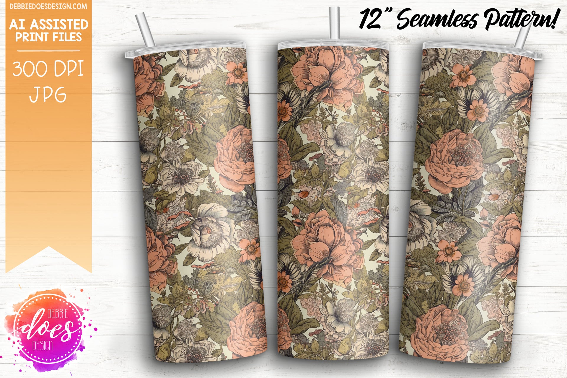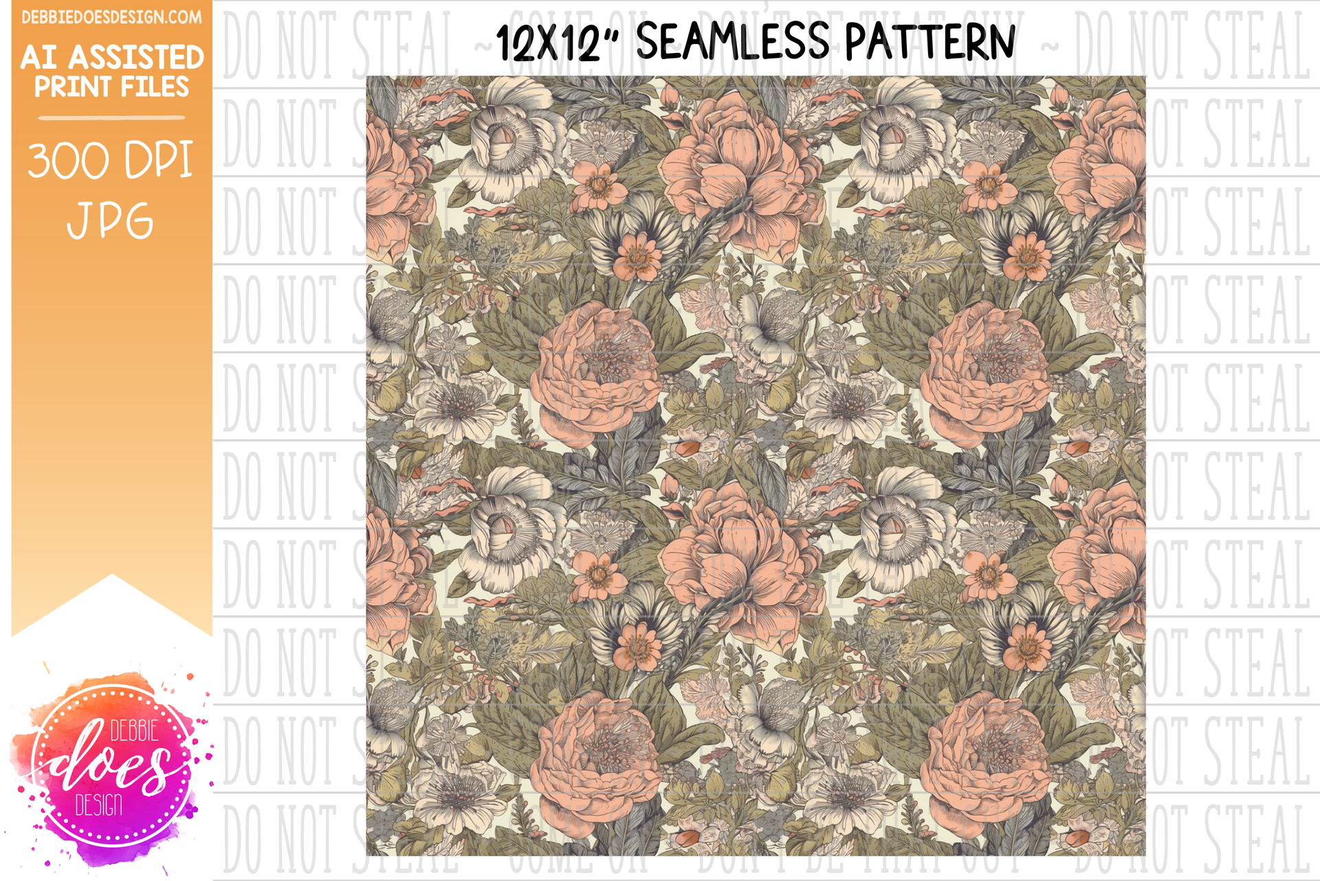Vintage Flowers Seamless Pattern - Peach Olive - Design Elements