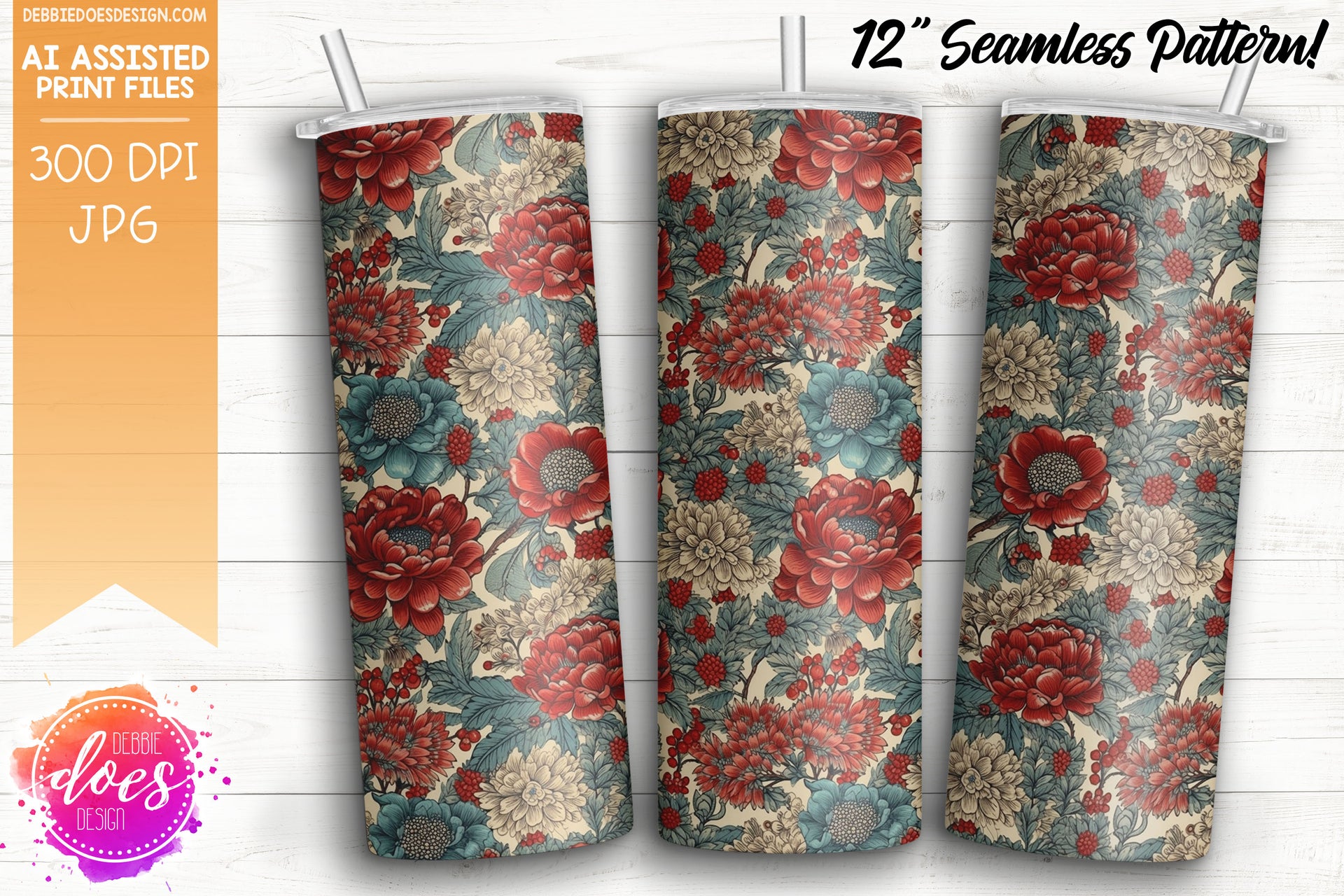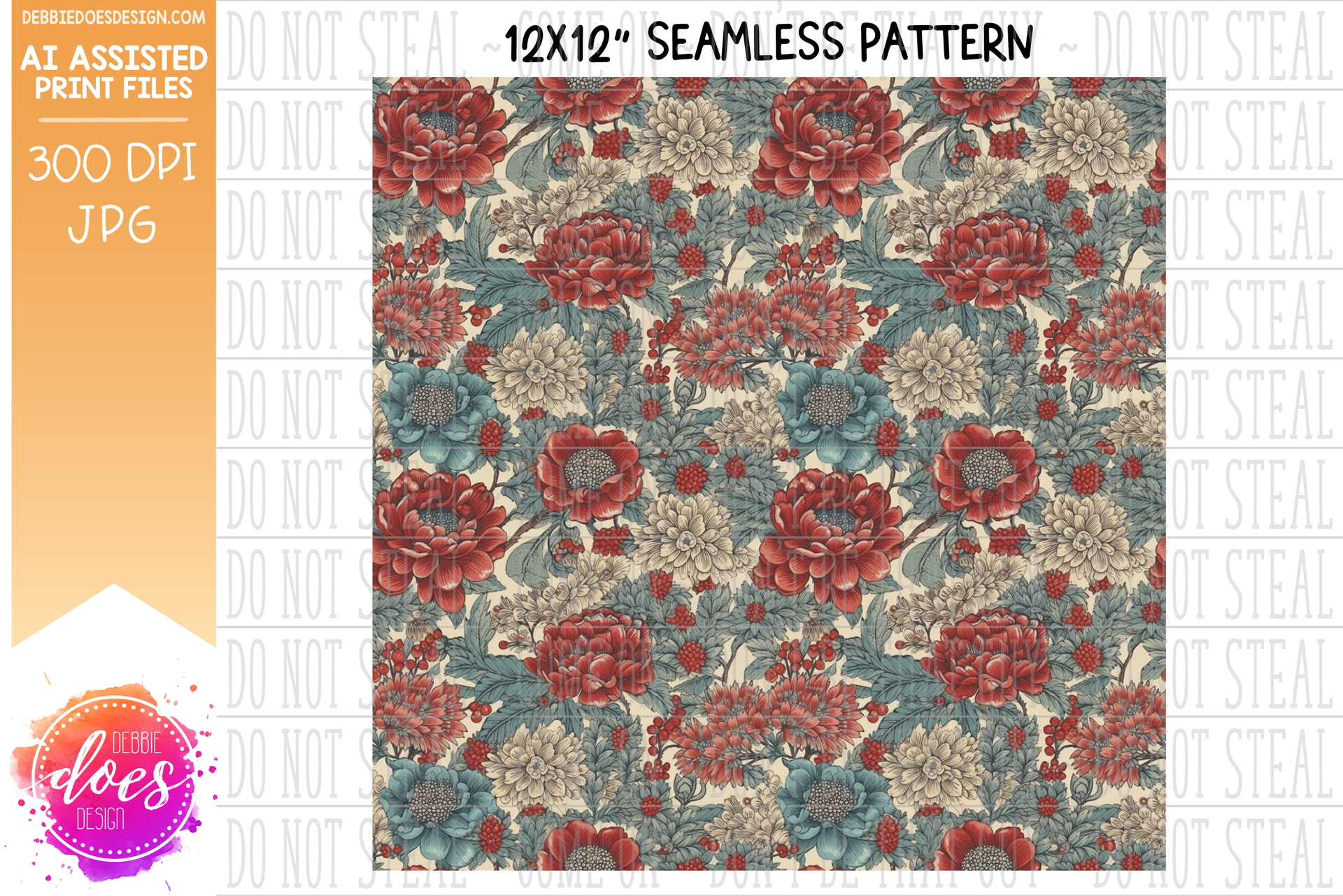 Vintage Flowers Seamless Pattern - Red and Blue - Design Elements