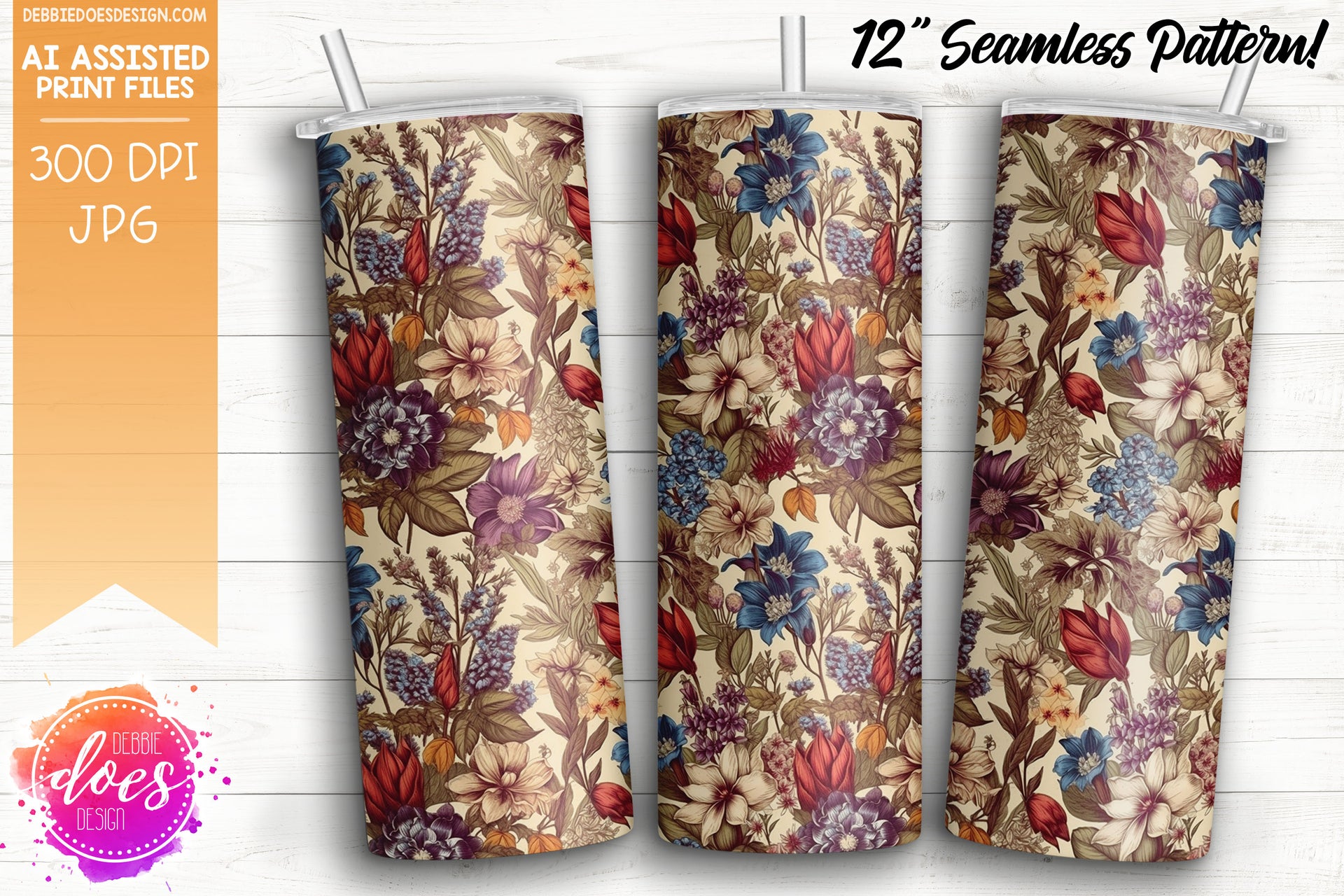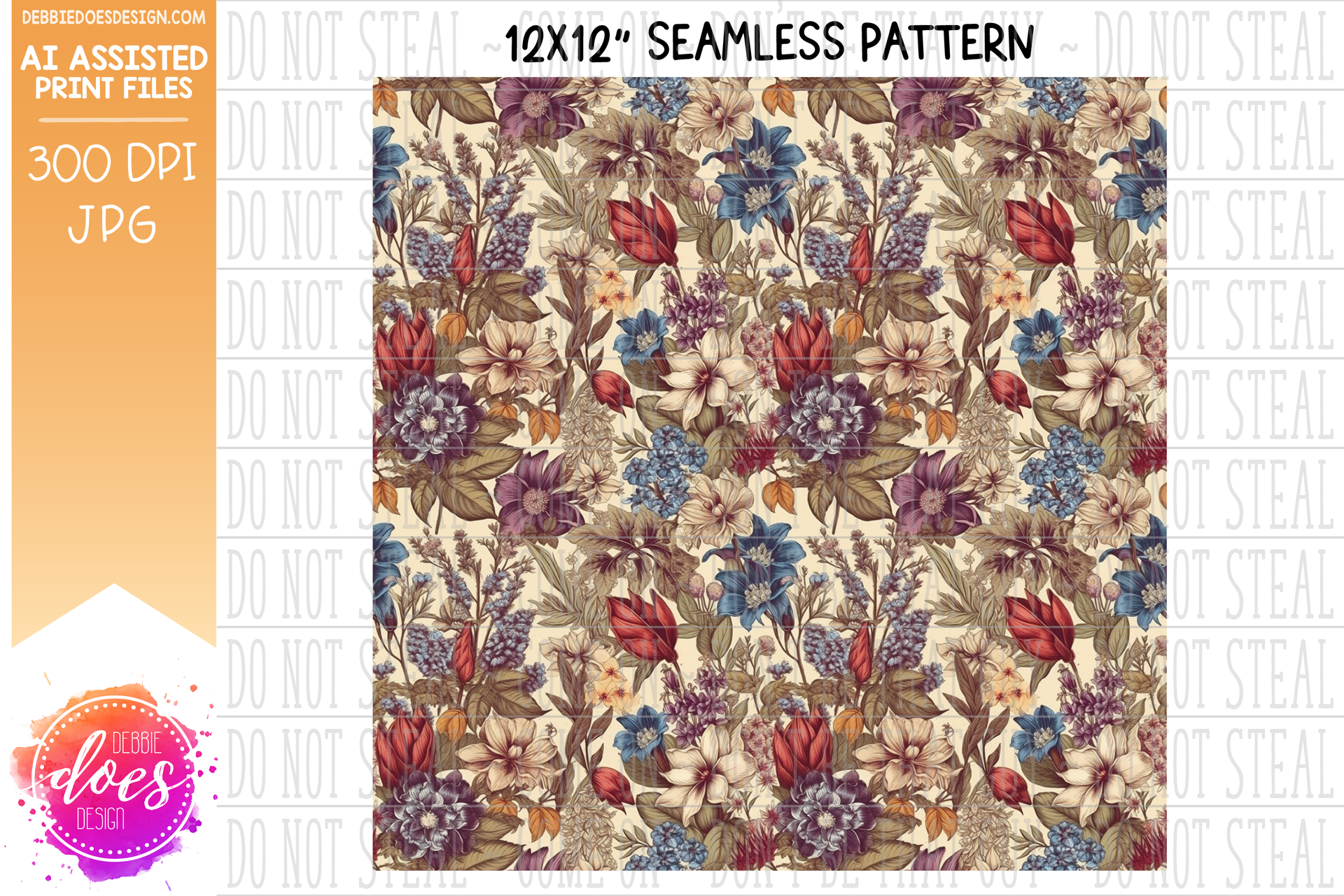 Vintage Flowers Seamless Pattern - Sepia Mixed Wildflowers - Design Elements
