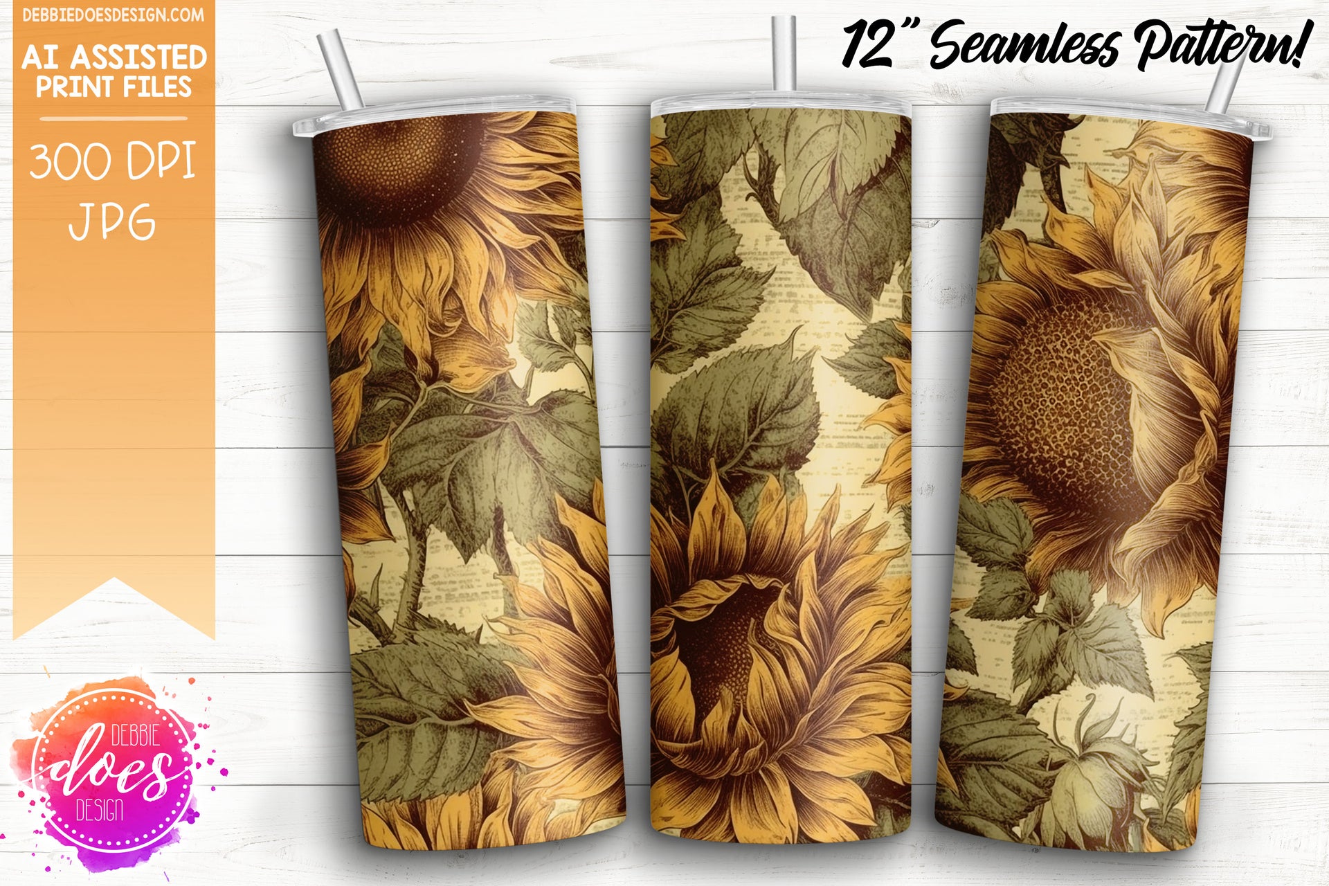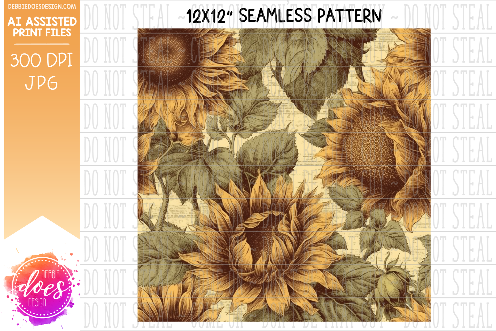 Vintage Flowers Seamless Pattern - Sepia Sunflowers - Design Elements
