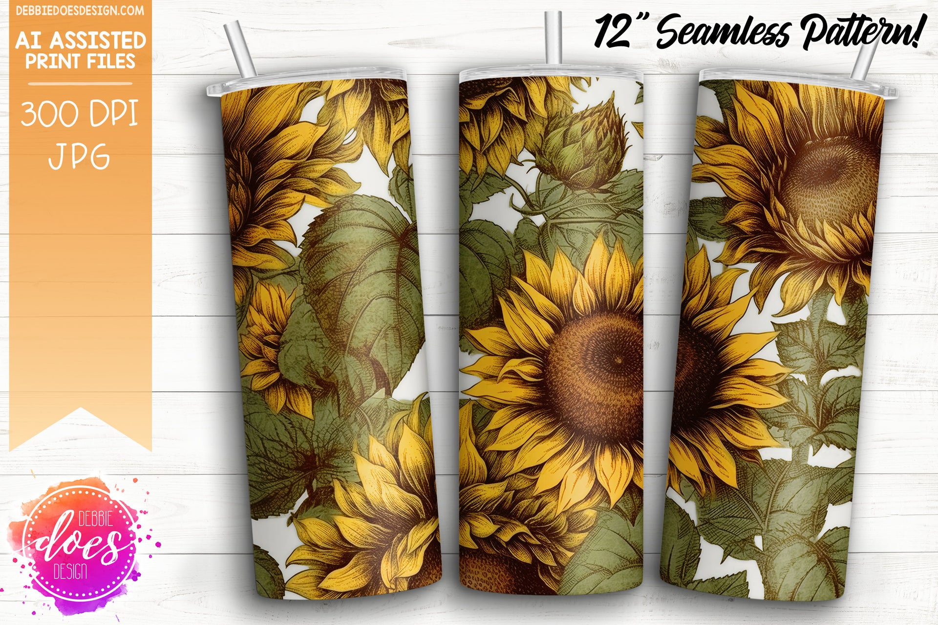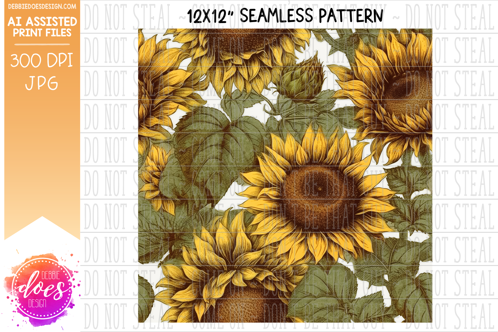 Vintage Flowers Seamless Pattern - Sunflowers - Design Elements
