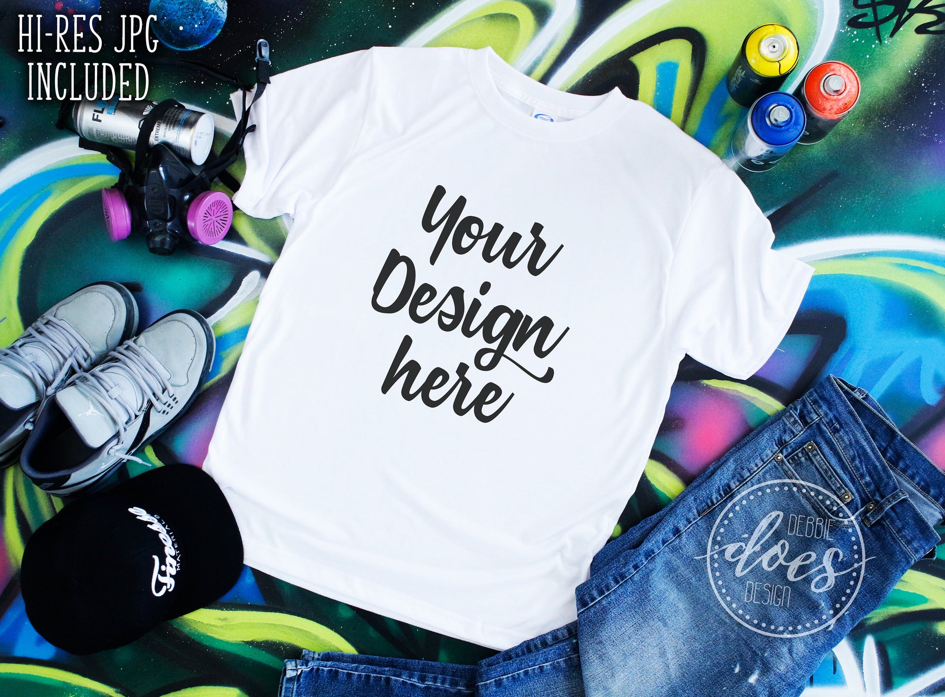 Graffiti Tee Shirt with Jeans Mockup | White Tee Mock-Up