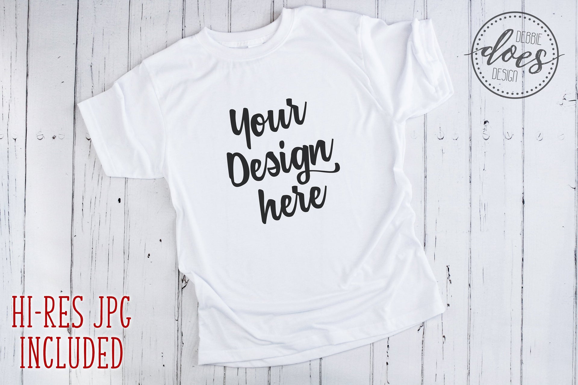 Men's Vapor Tee Shirt Mockup on Light Wood | White Tee Mock-Up