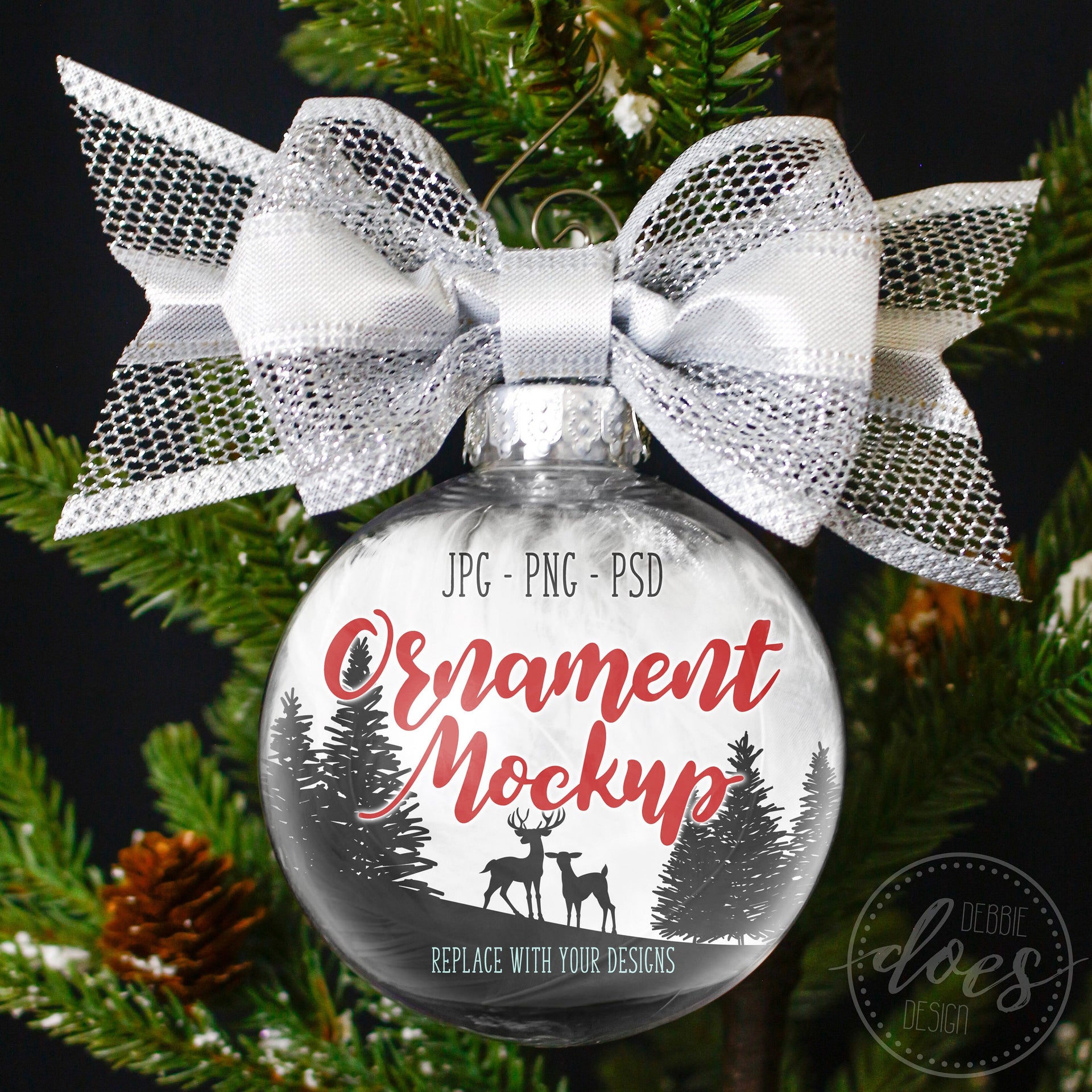 Transparent Ornament Mockup with Silver Bow