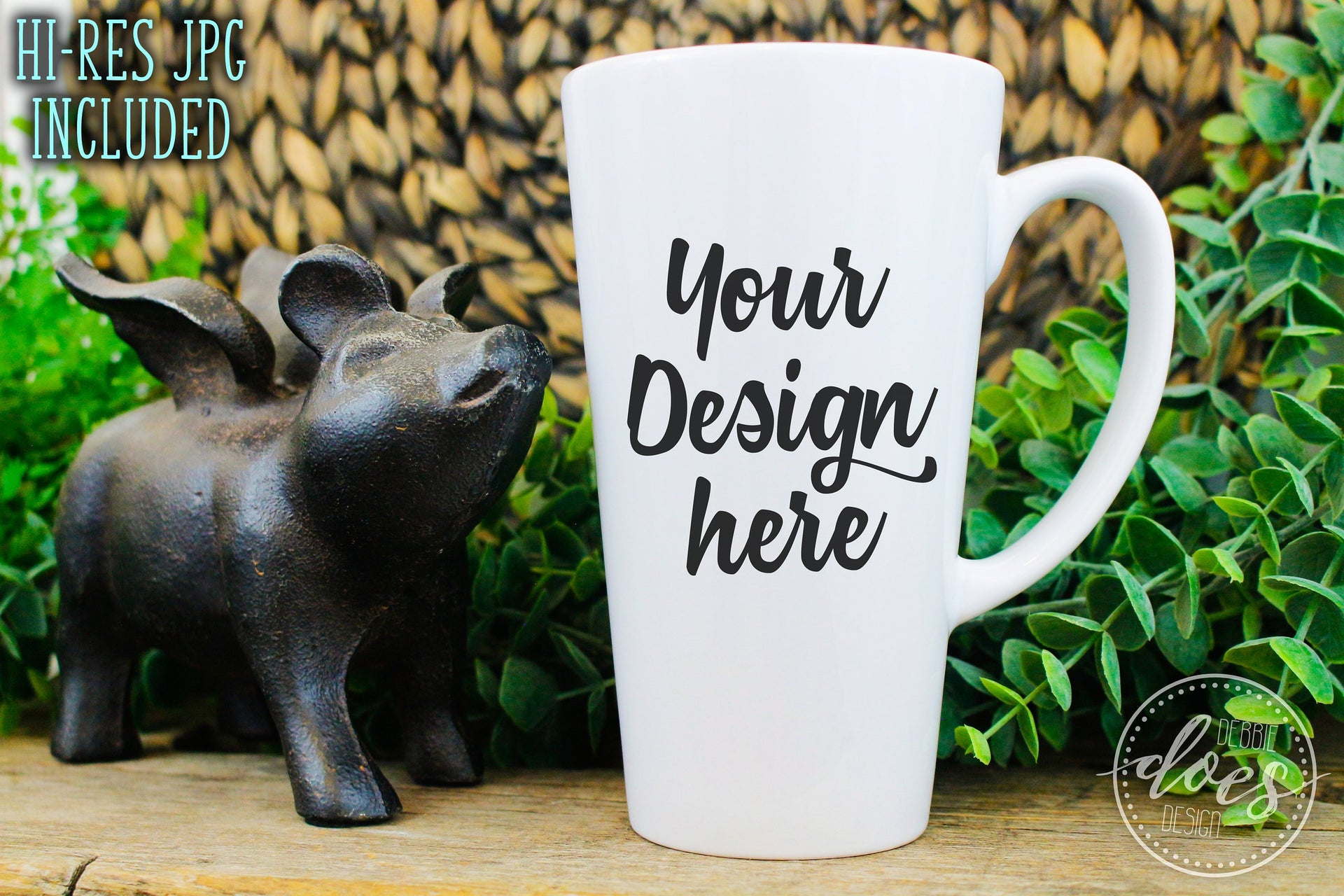 White Latte Mug Mockup with Pig