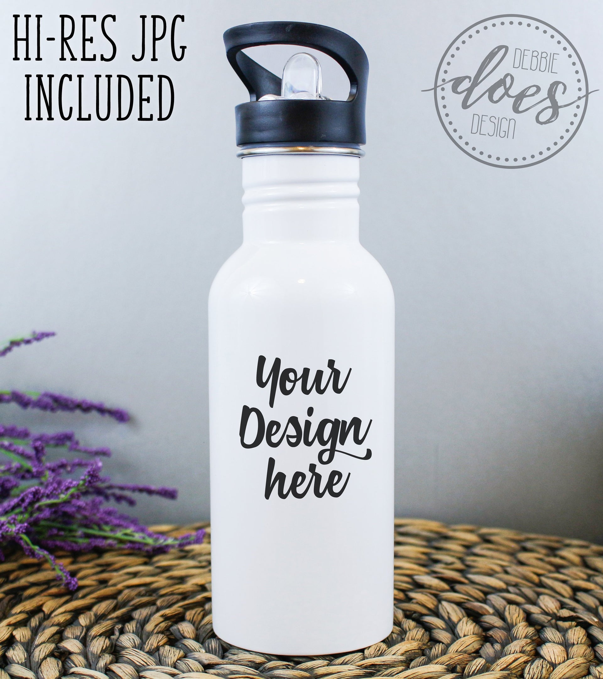 White Sublimation Water Bottle with Straw Mockup 5