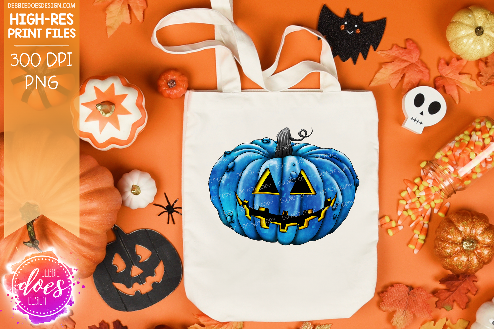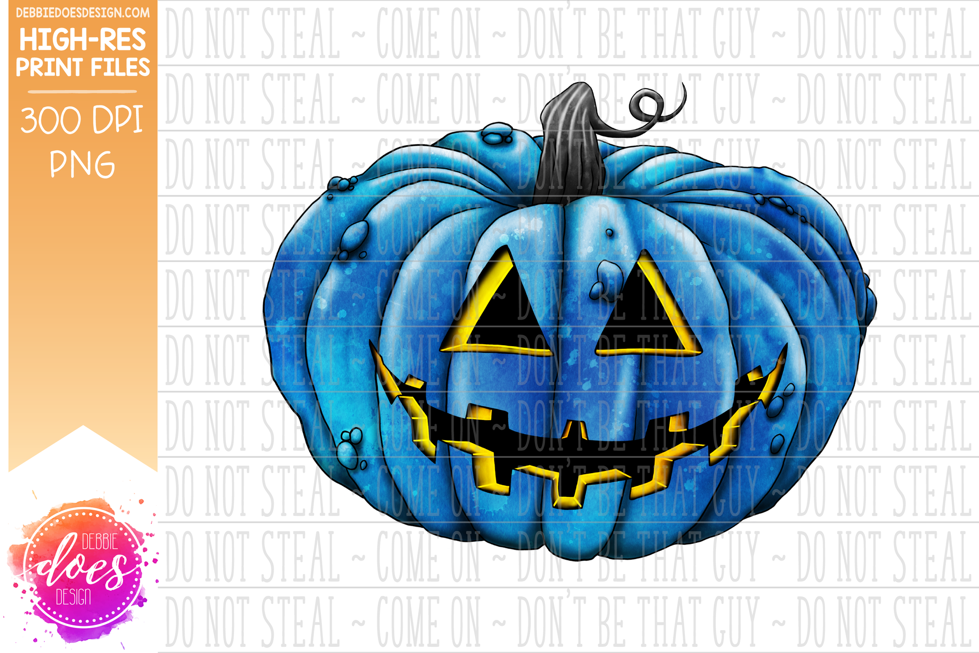 Blue and Yellow Jack-O-Lantern - Sublimation/Printable Design