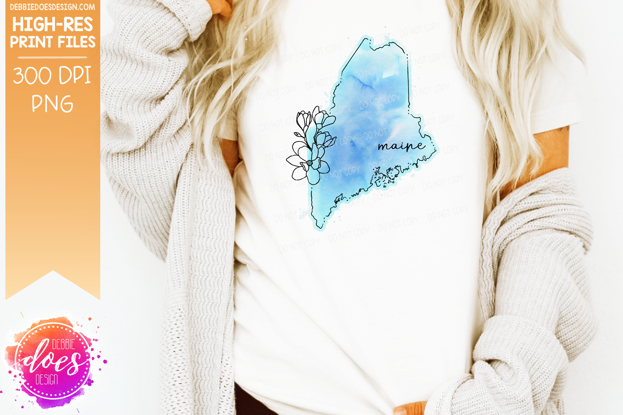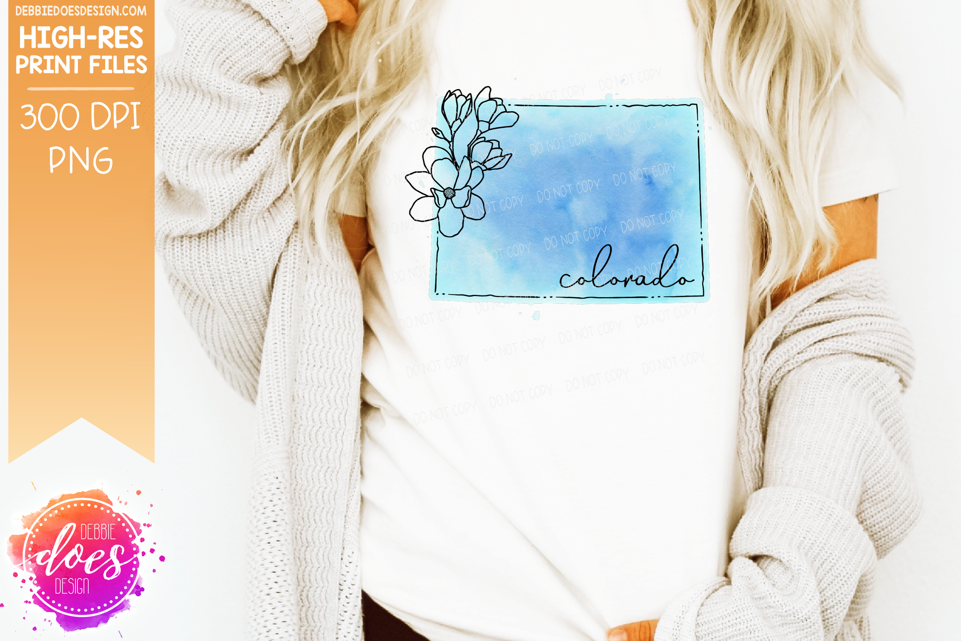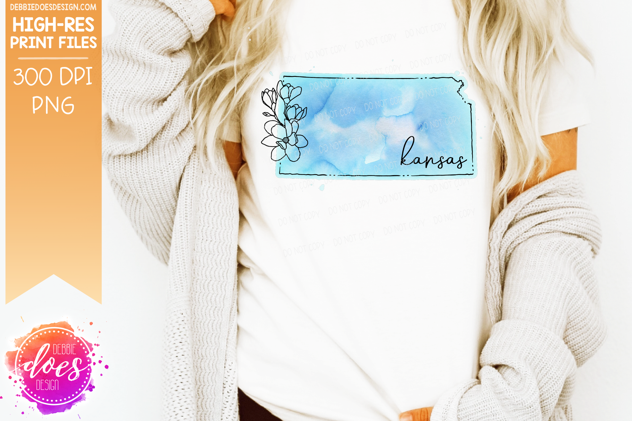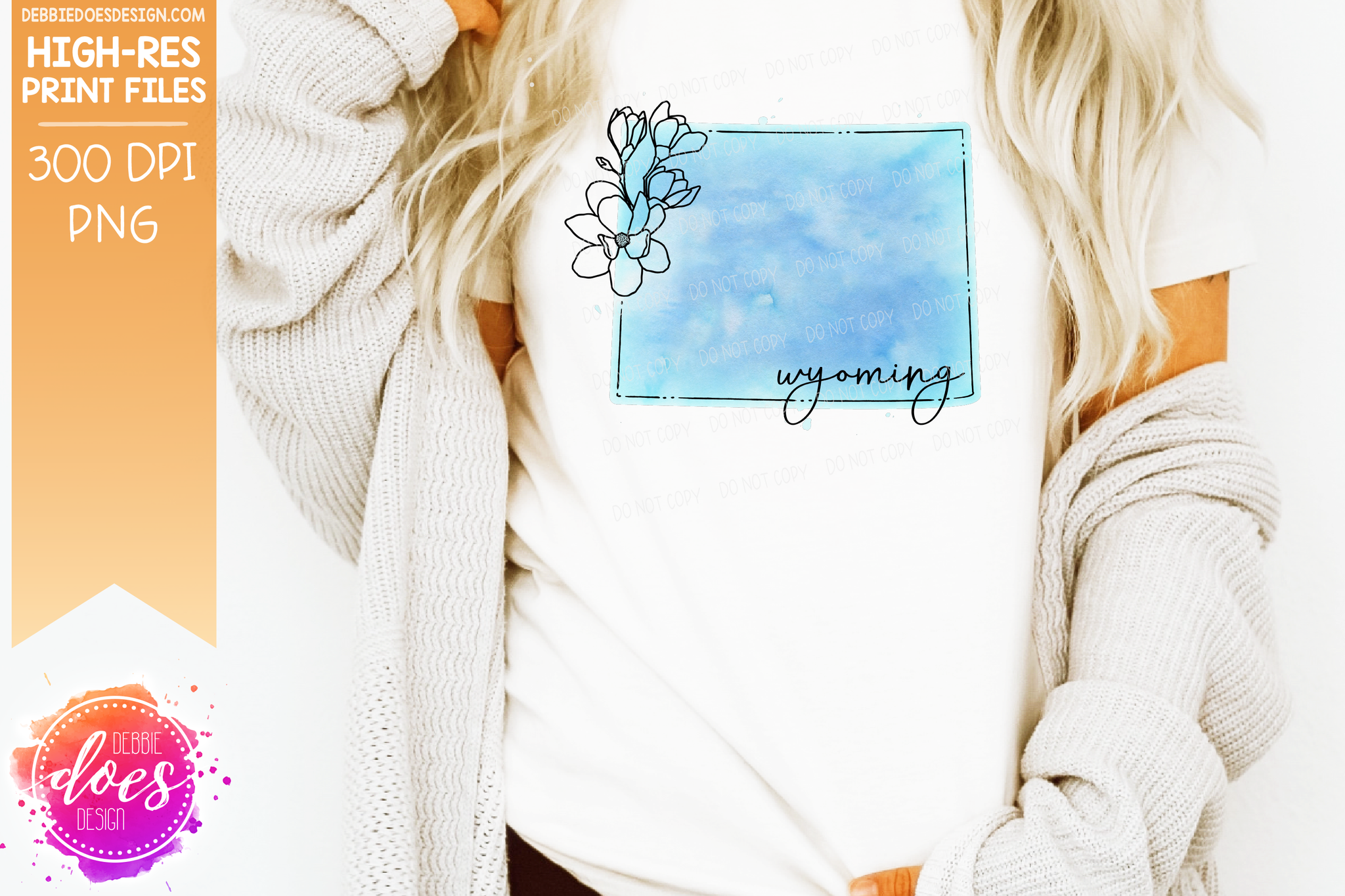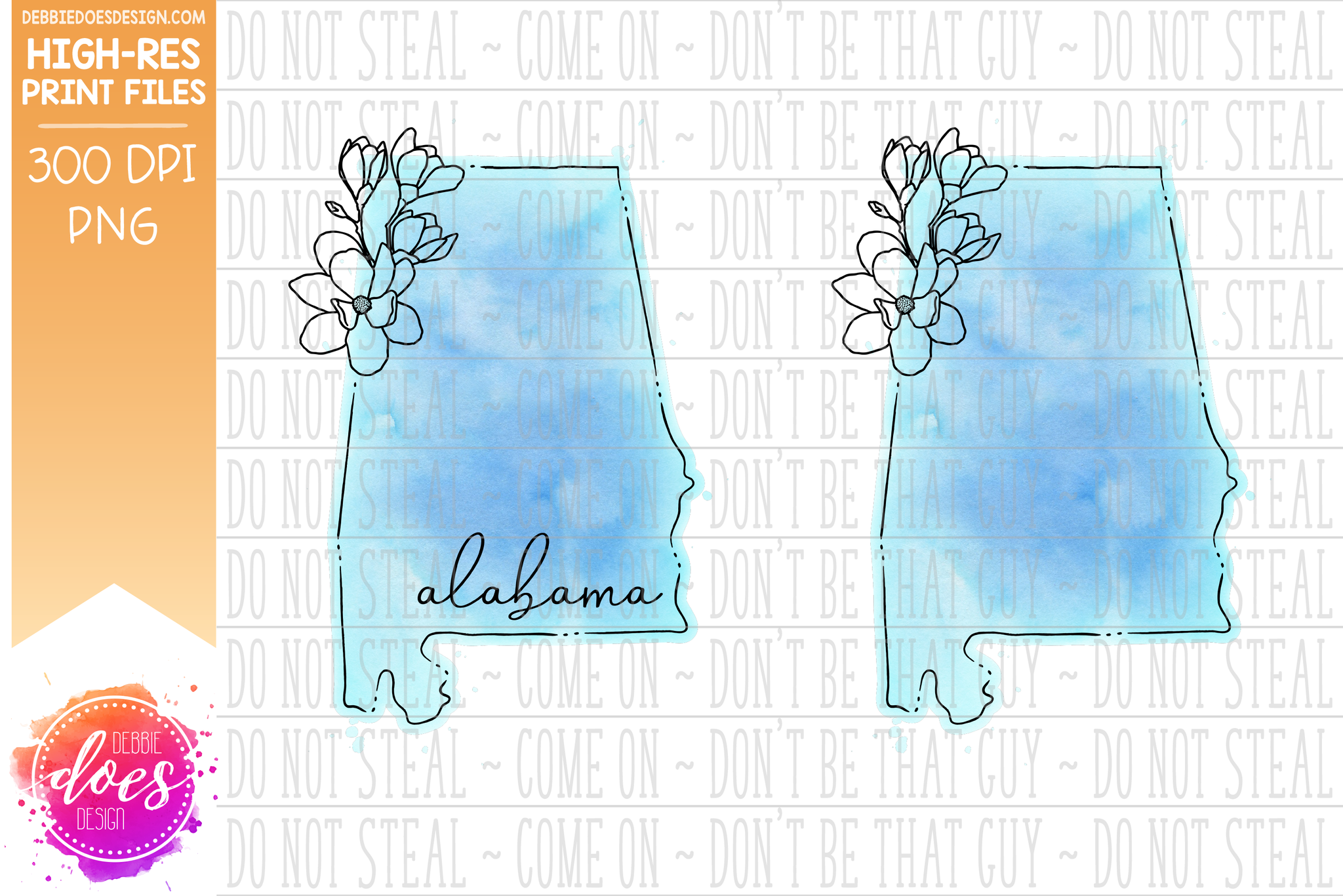 Blue Watercolor Floral Line State - (Individual States: Choose from all 50 US States, District of Columbia, PR, or Guam) - Sublimation/Printable Designs