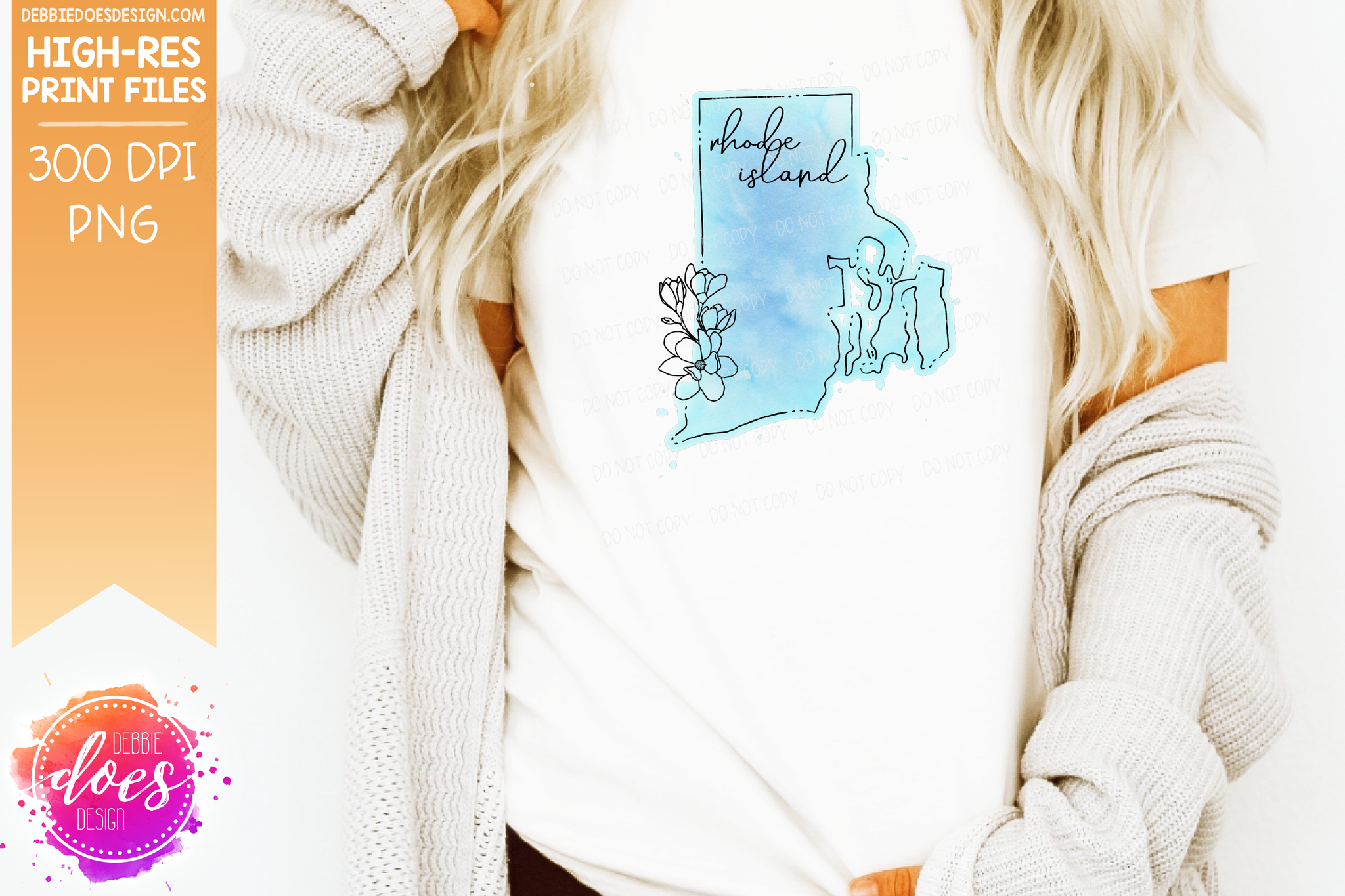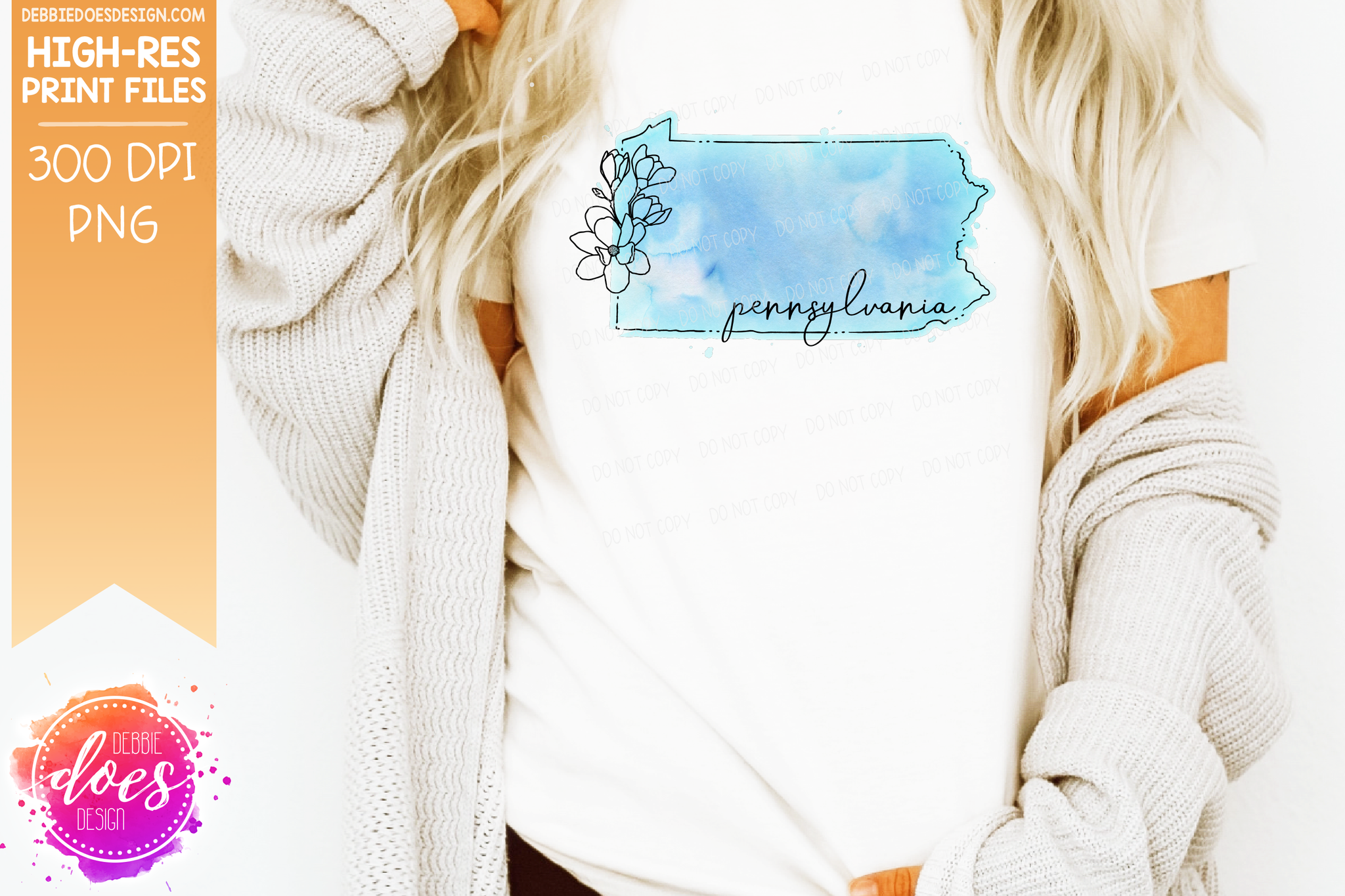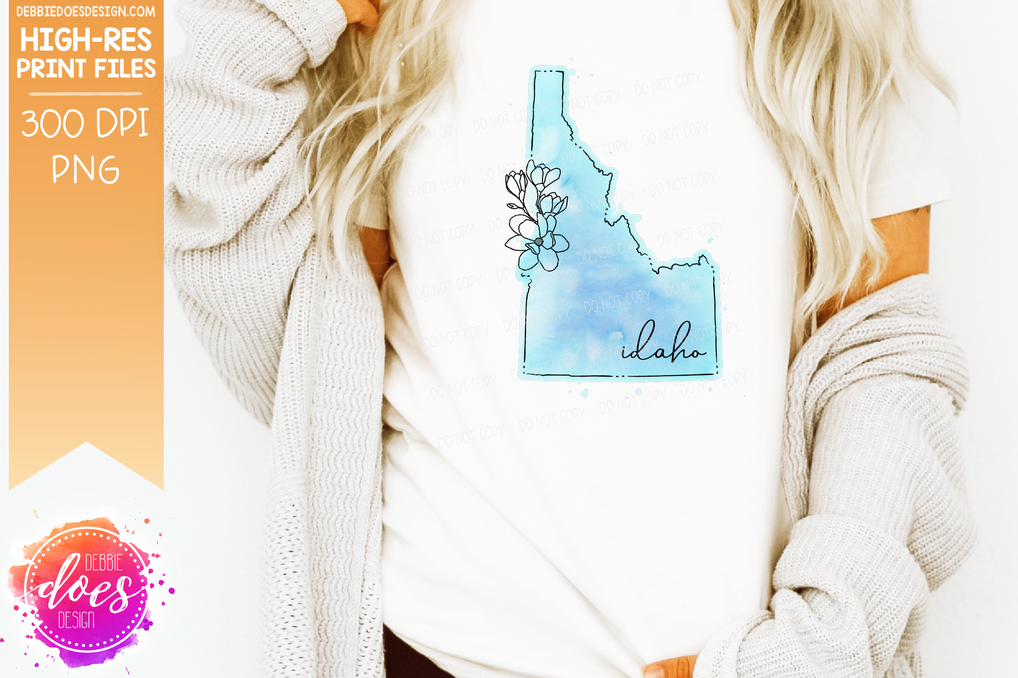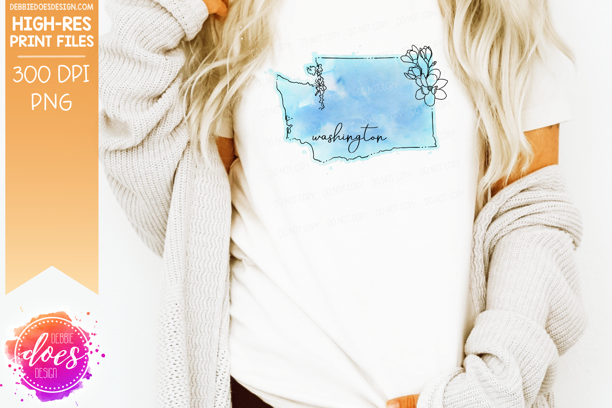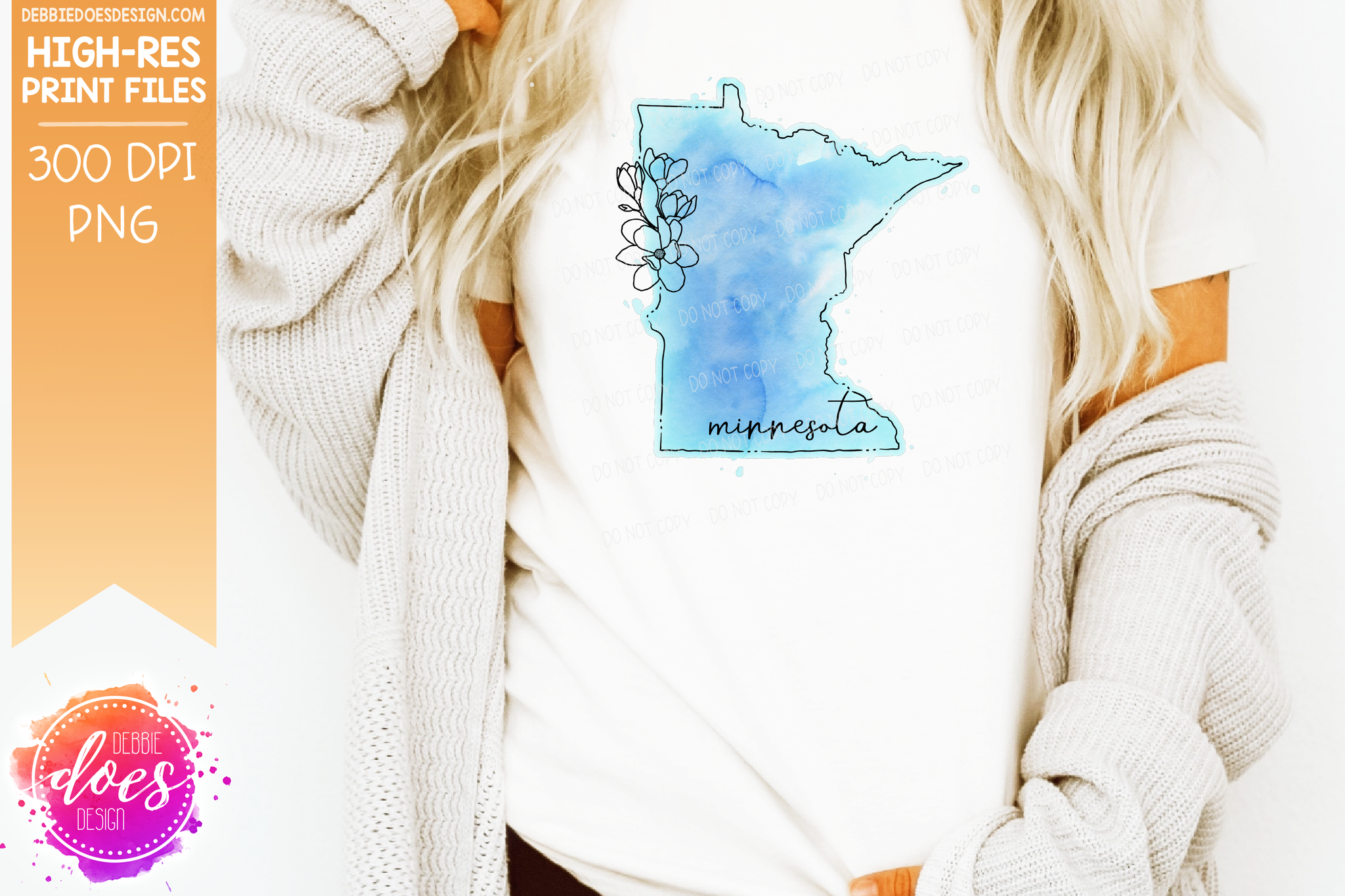Blue Watercolor Floral Line State - (Individual States: Choose from all 50 US States, District of Columbia, PR, or Guam) - Sublimation/Printable Designs