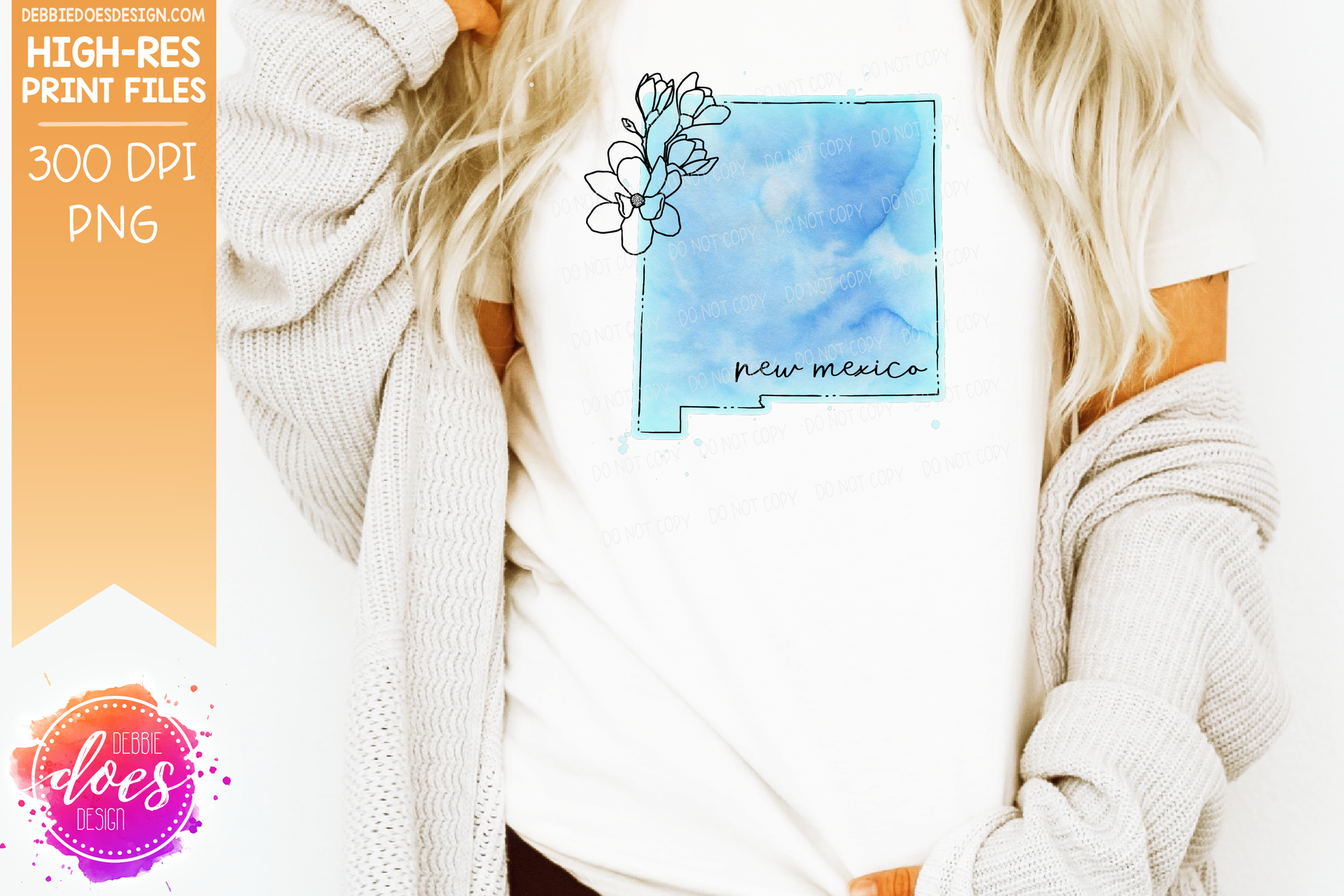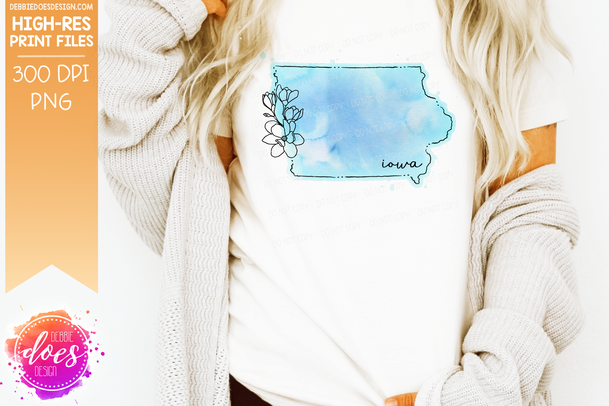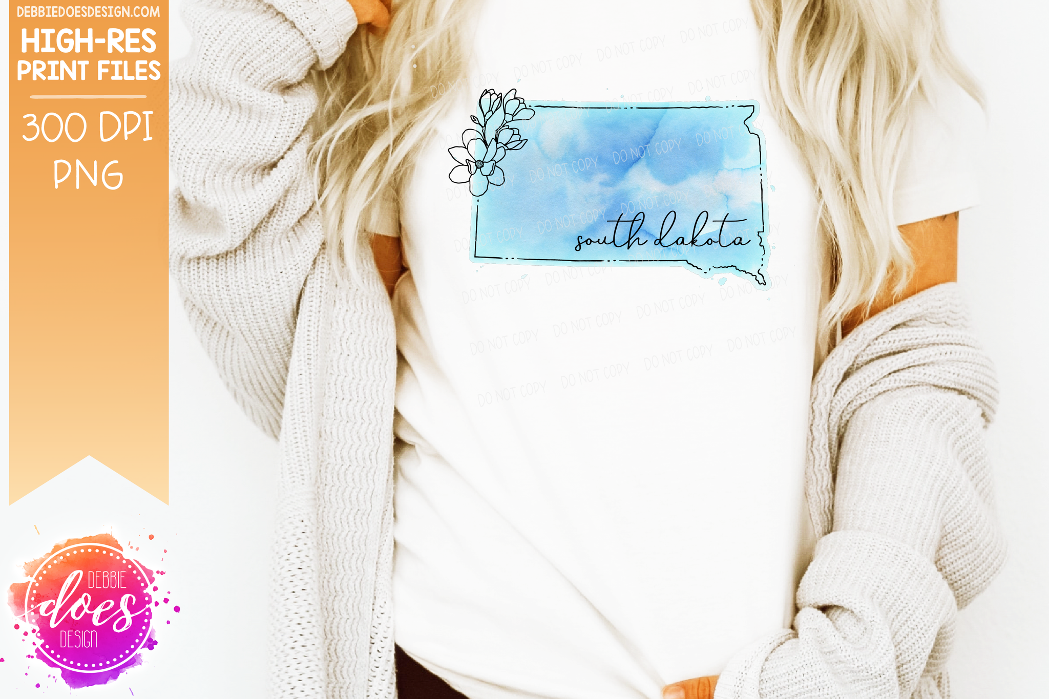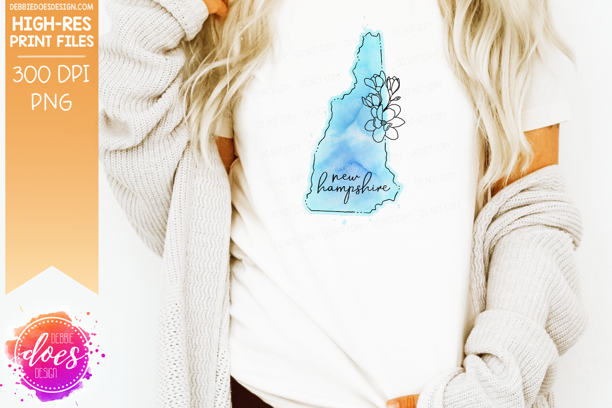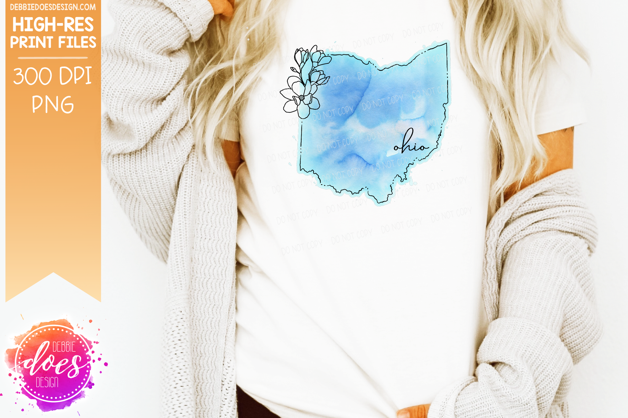 Blue Watercolor Floral Line State - (Individual States: Choose from all 50 US States, District of Columbia, PR, or Guam) - Sublimation/Printable Designs